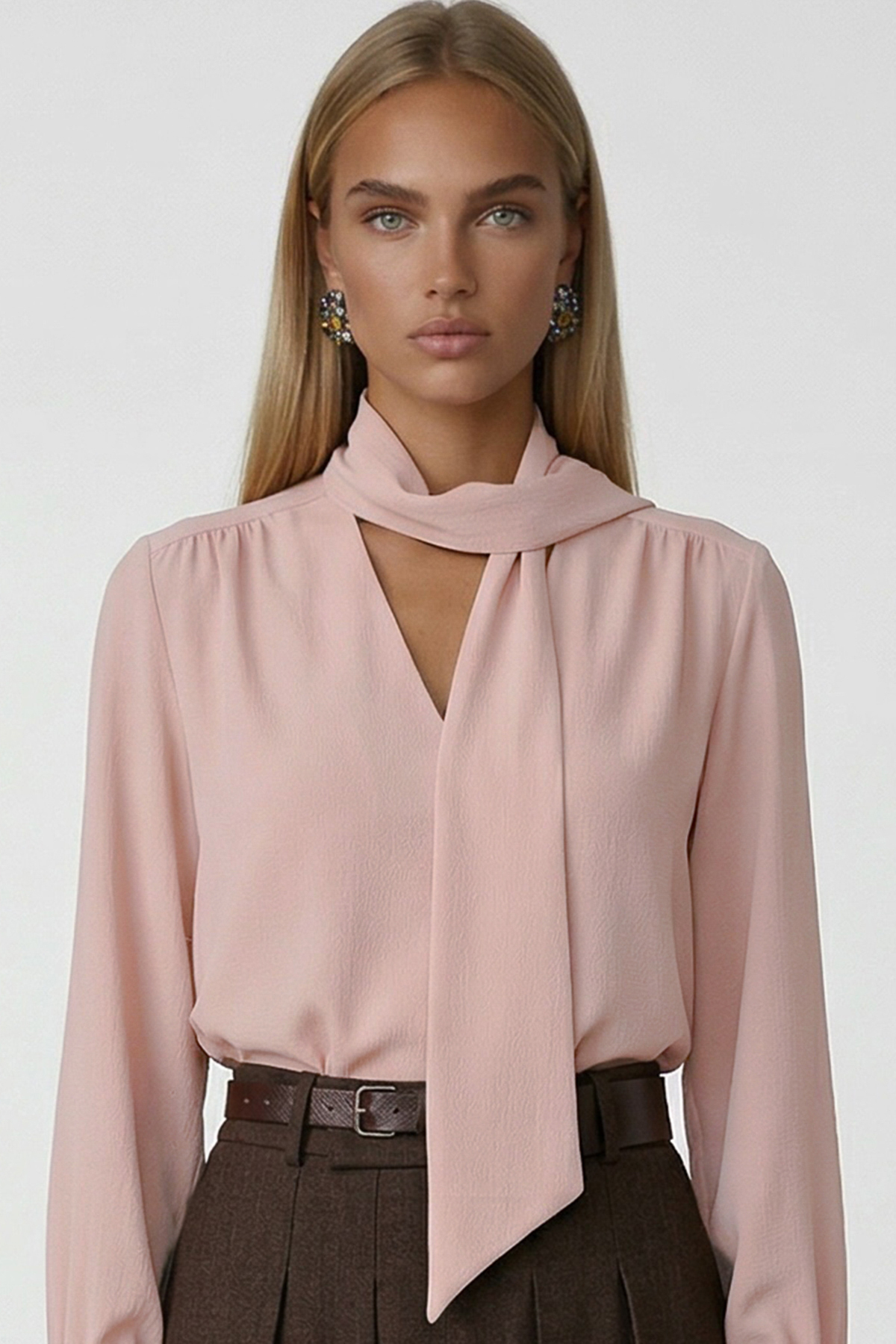 Standing Out With Its Elegant And Feminine Design, The V-Neck Blouse Gains A Romantic Appearance With Its Neck Tie Detail, While Its Gimped Form Offers Comfort By Adapting To The Body.