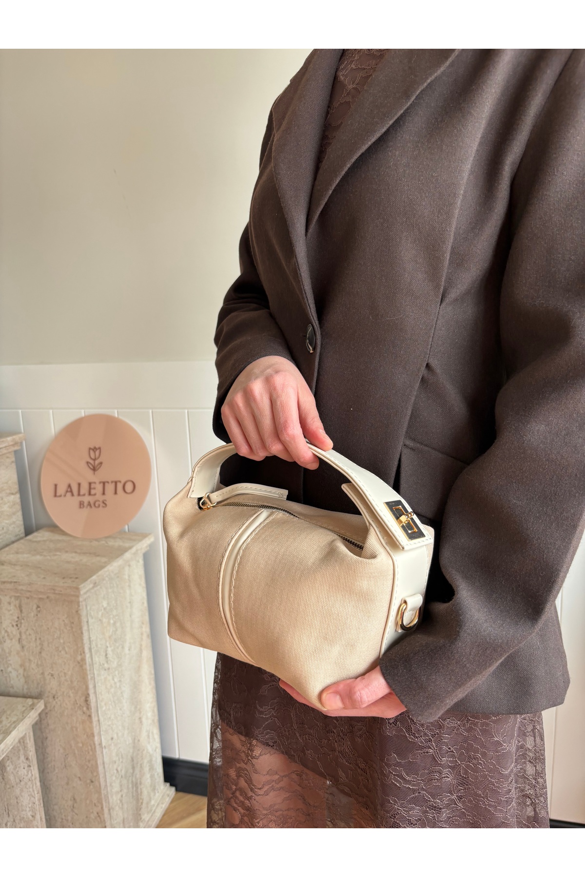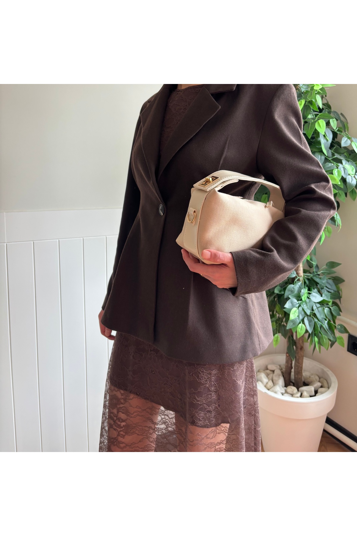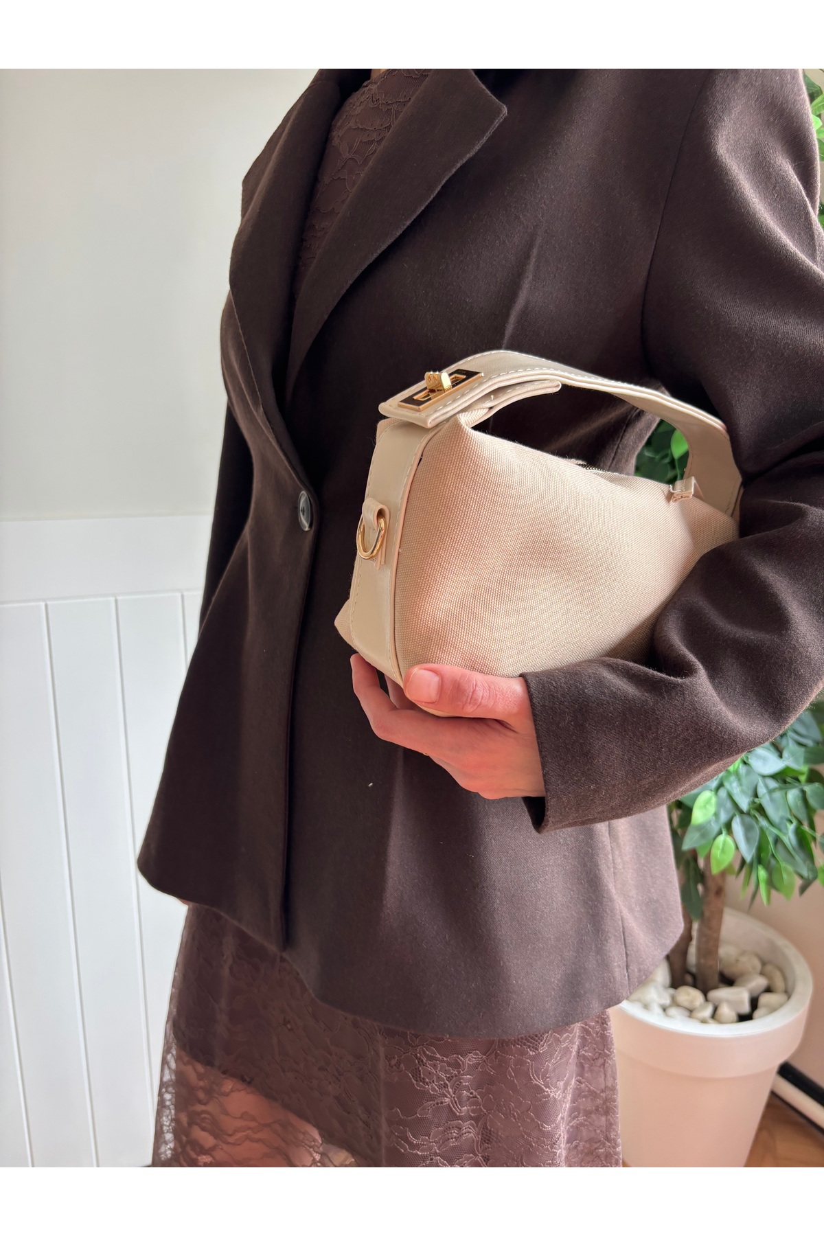 Women's Lilies Model Lock Detailed Linen Hand &