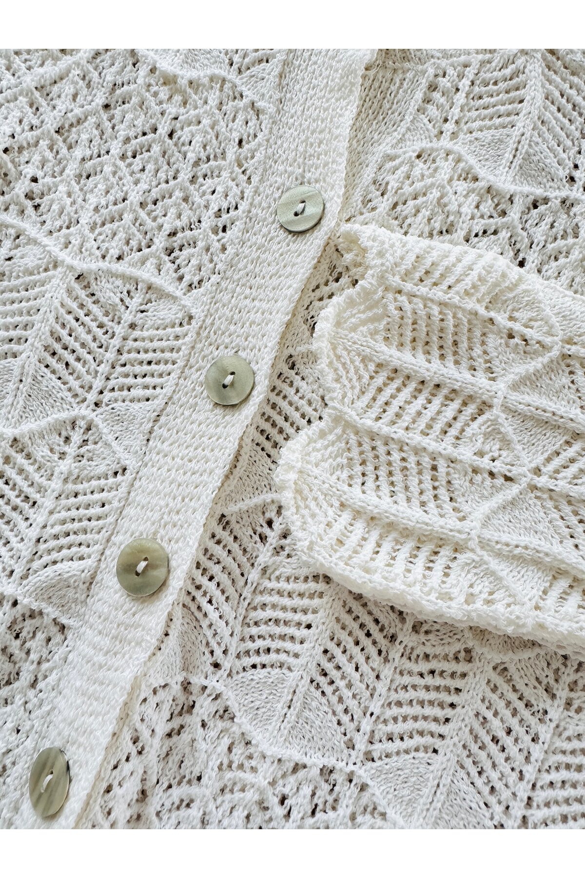 Retrobird Thin Textured Openwork Cardigan Women Ecru | ByTR