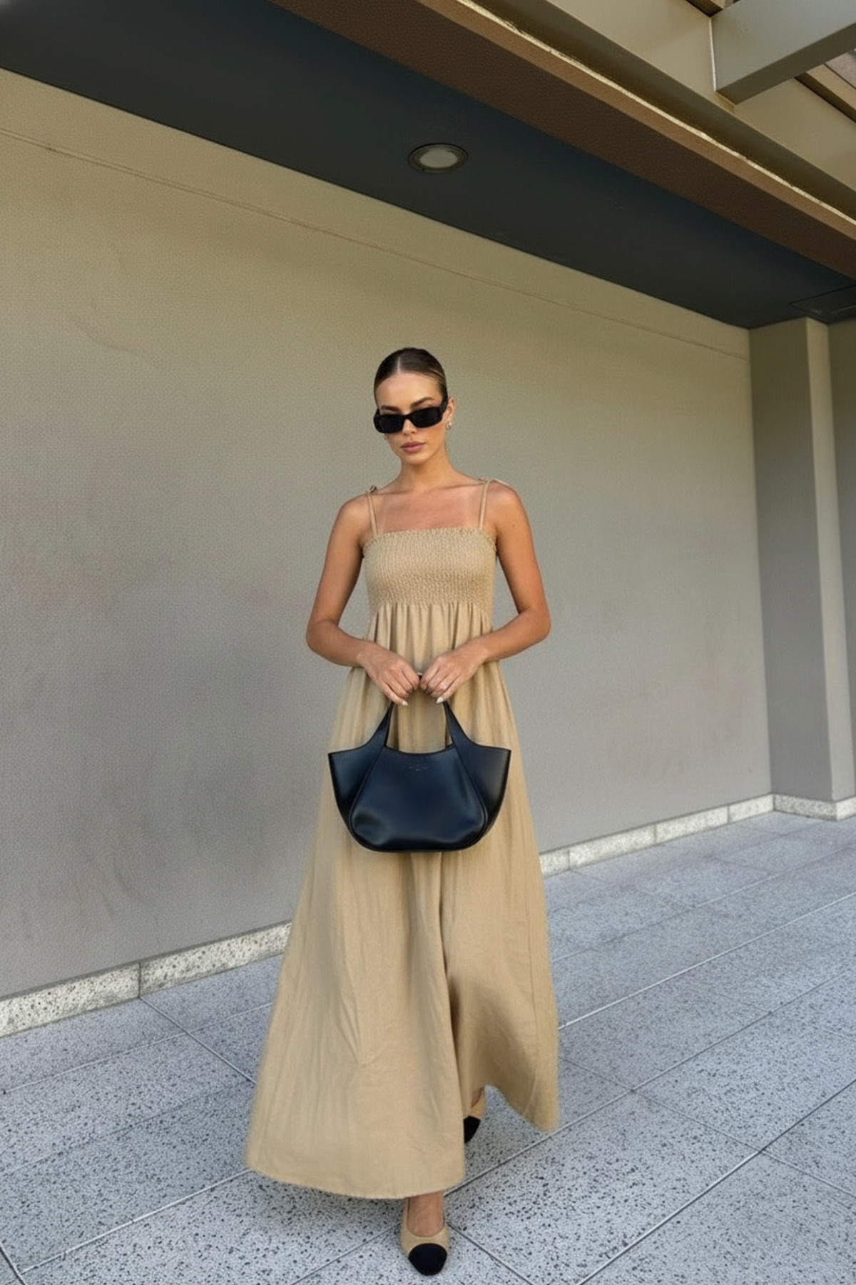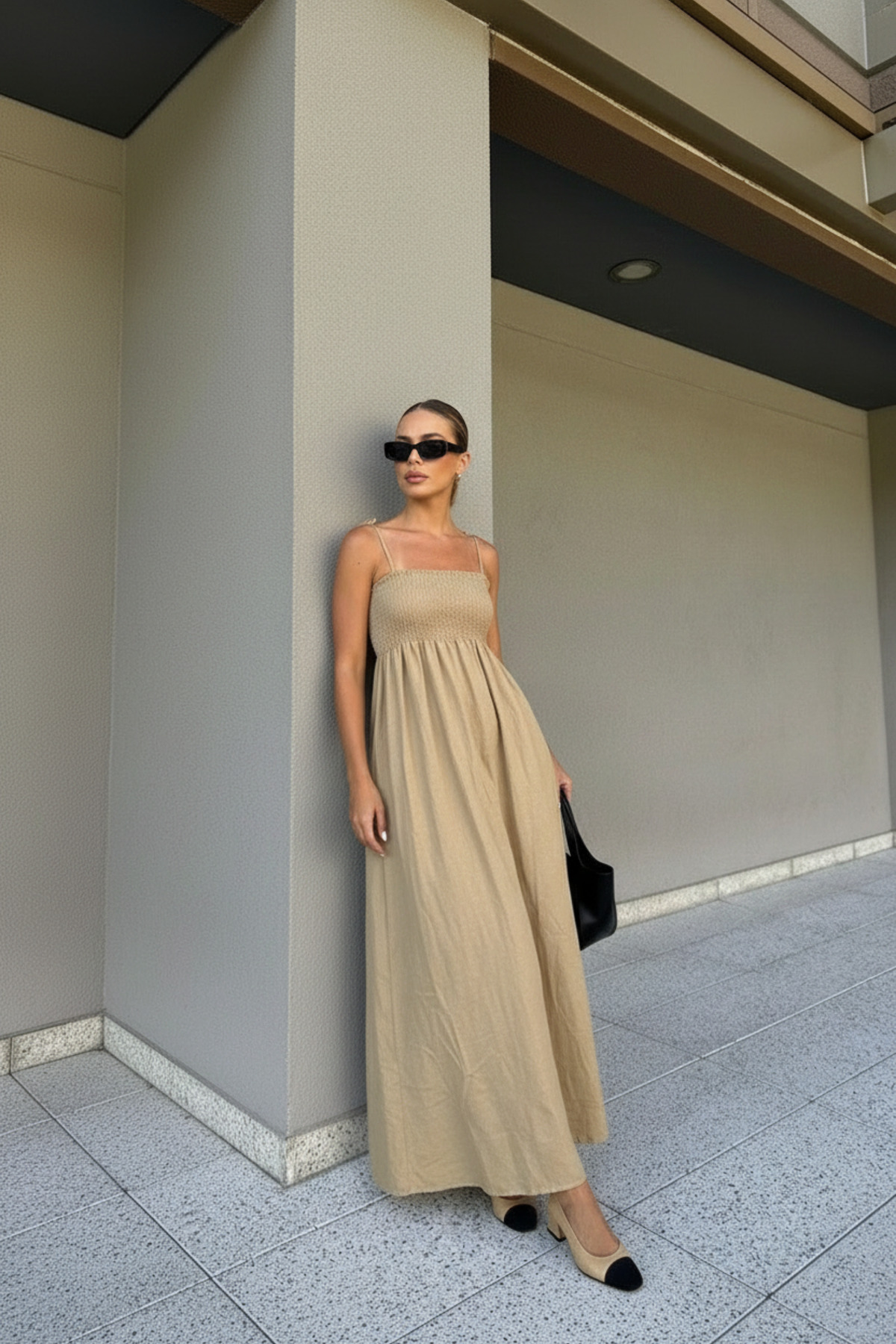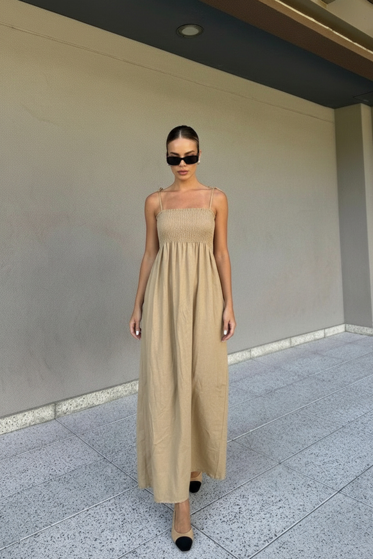 Thanks to its shirred details, it fits elegantly on the body and creates a feminine silhouette.
