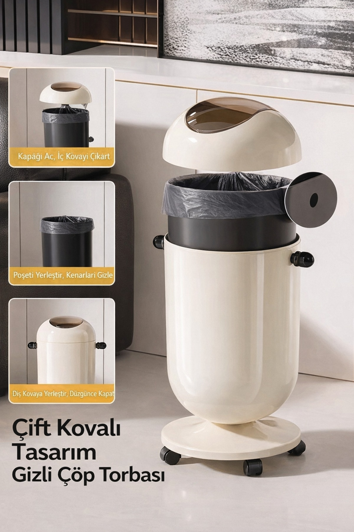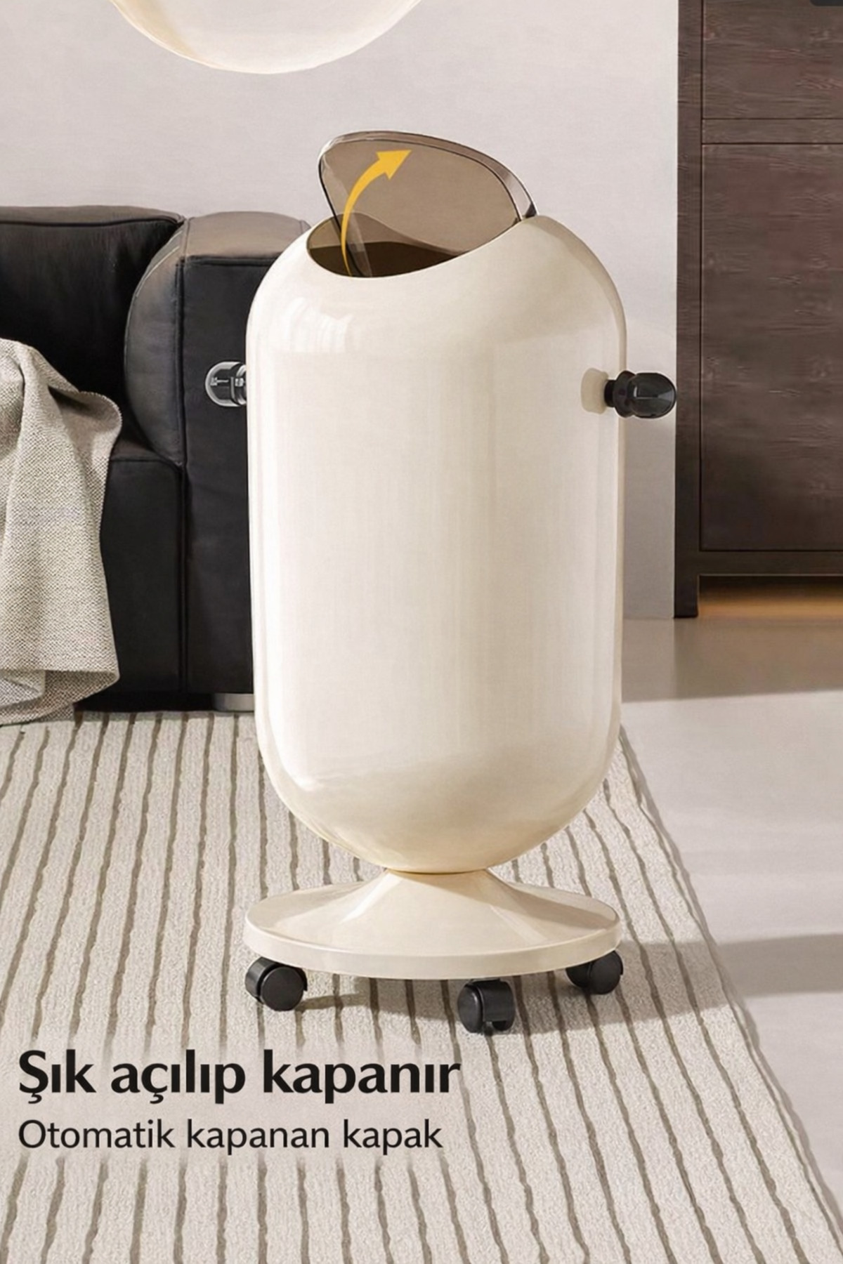 ADEFCO Modern Design With 20 LT Wheeled Trash Can Lid Removable Reservoir Cream | ByTR