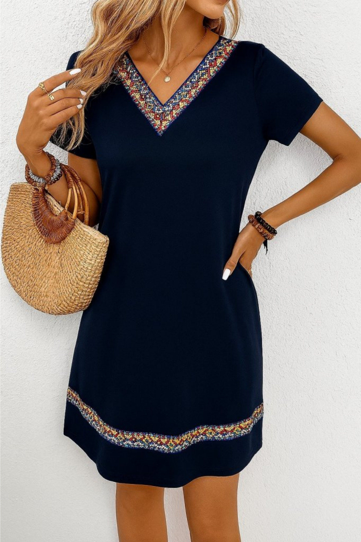 It offers an eye-catching appearance with its ethnic patterns.
