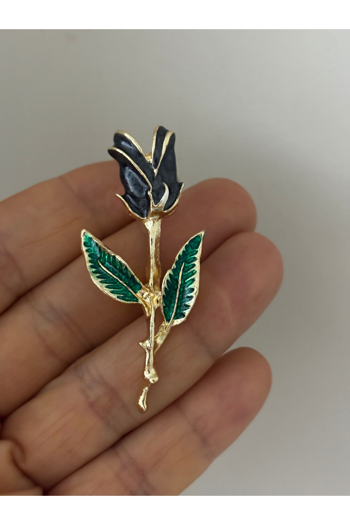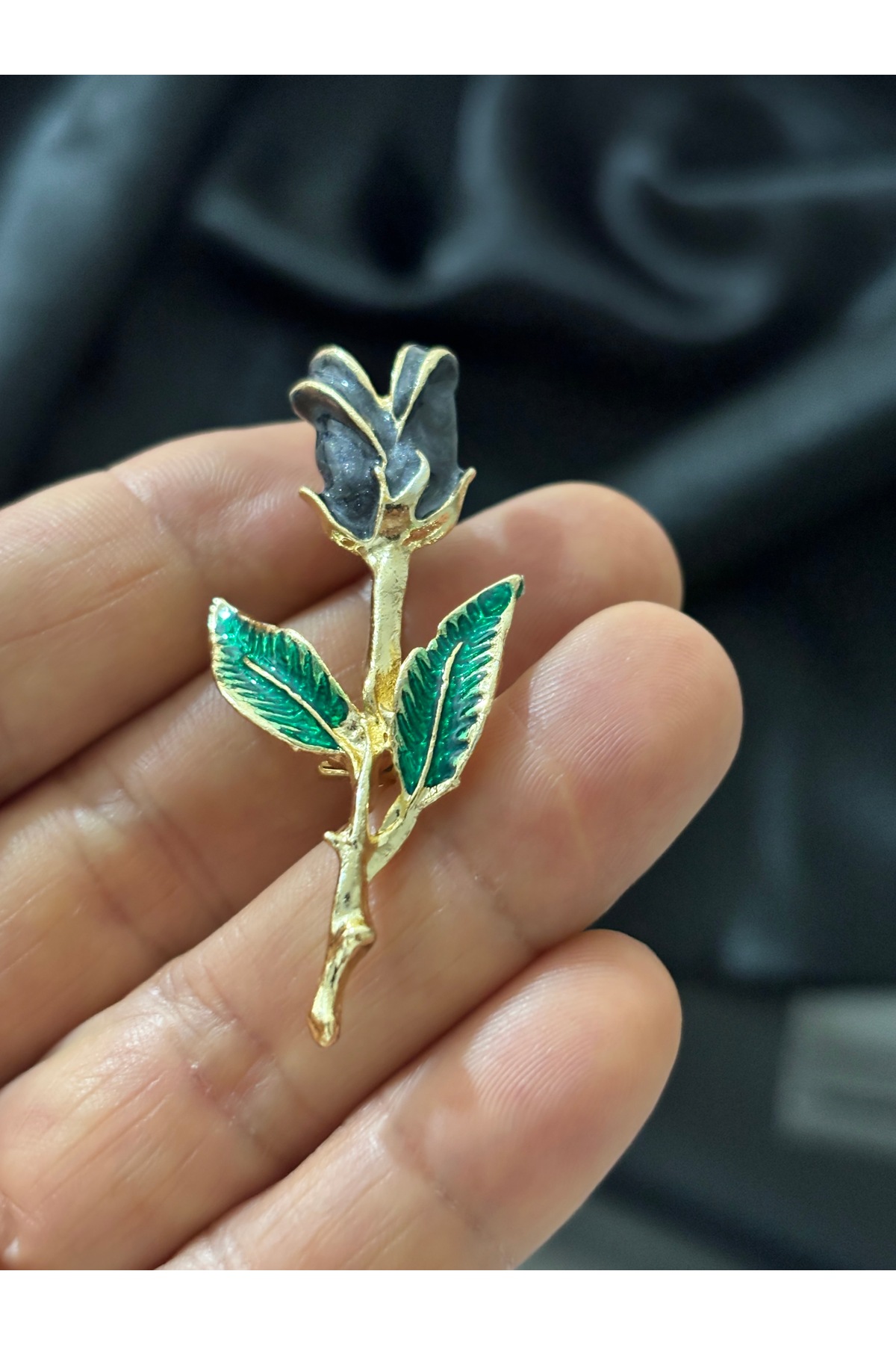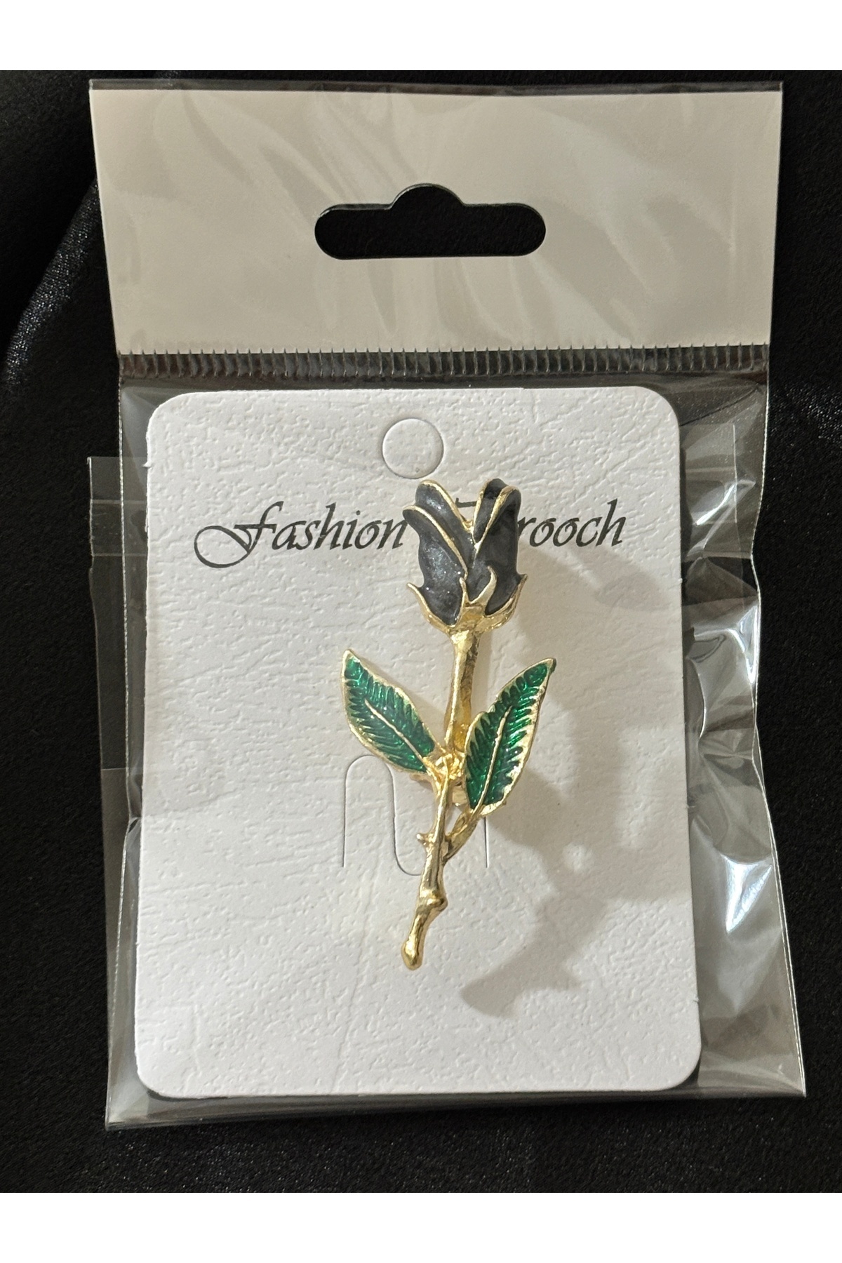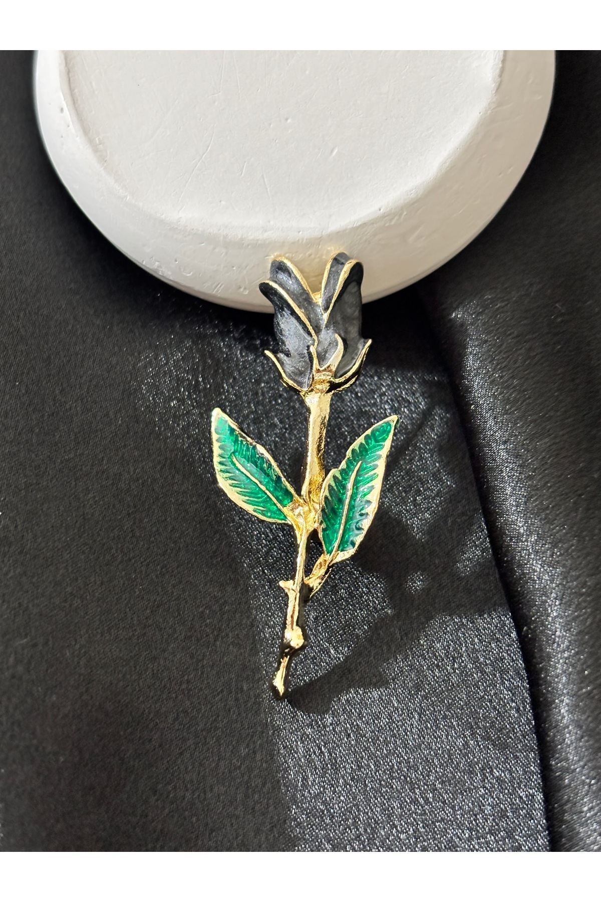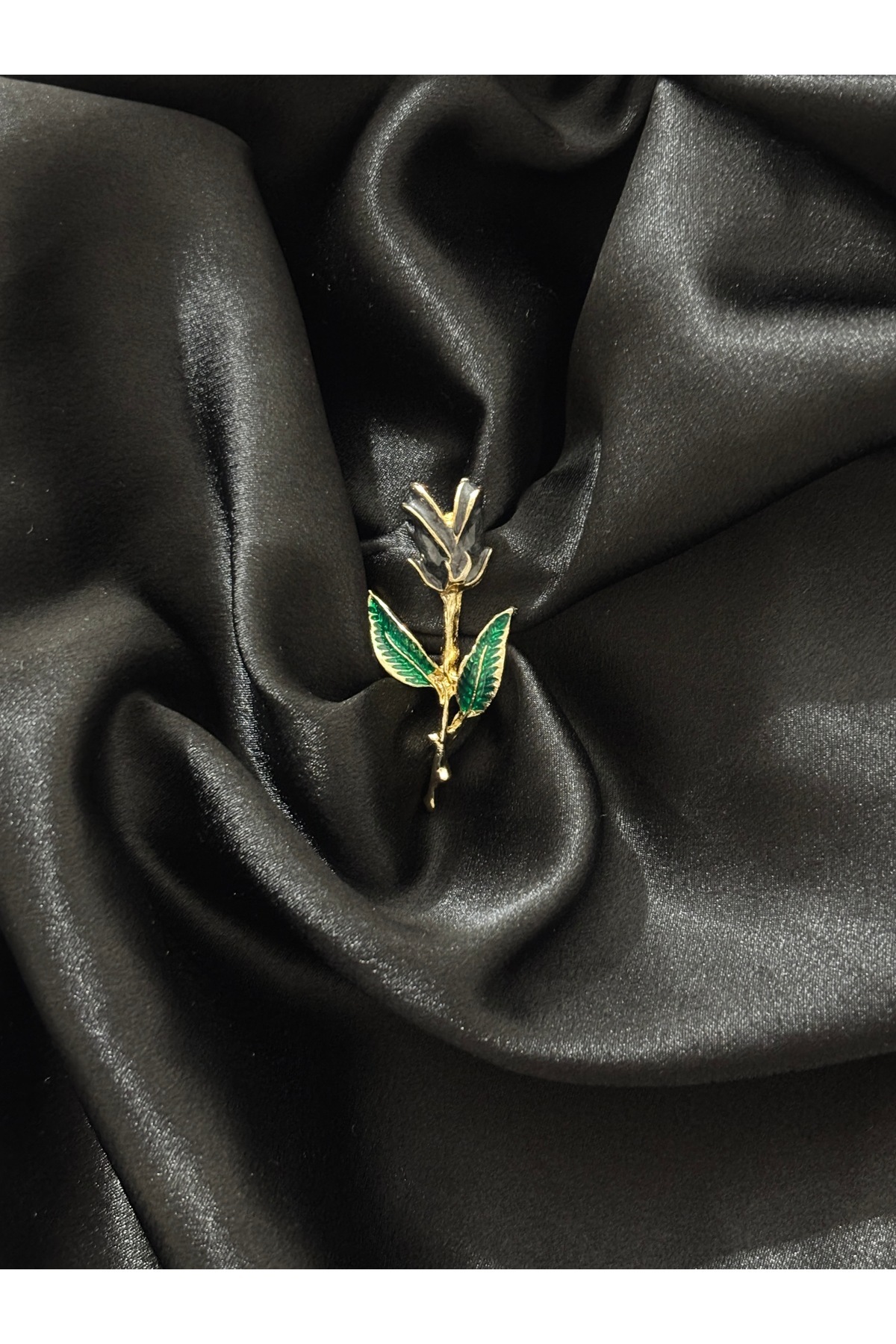 ✨Black Natural Luminous Design Rose Figure -Green Leaf Detailed Brooch-Lapel Pin.