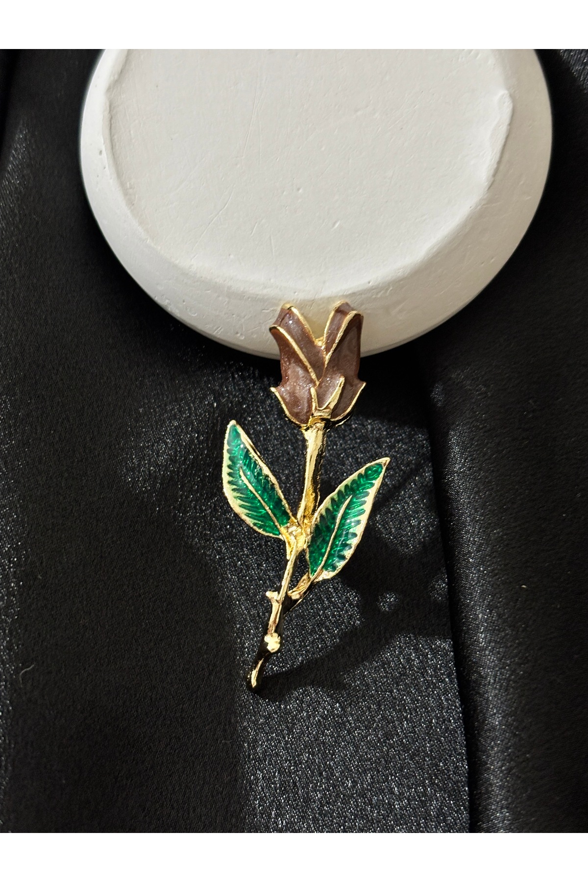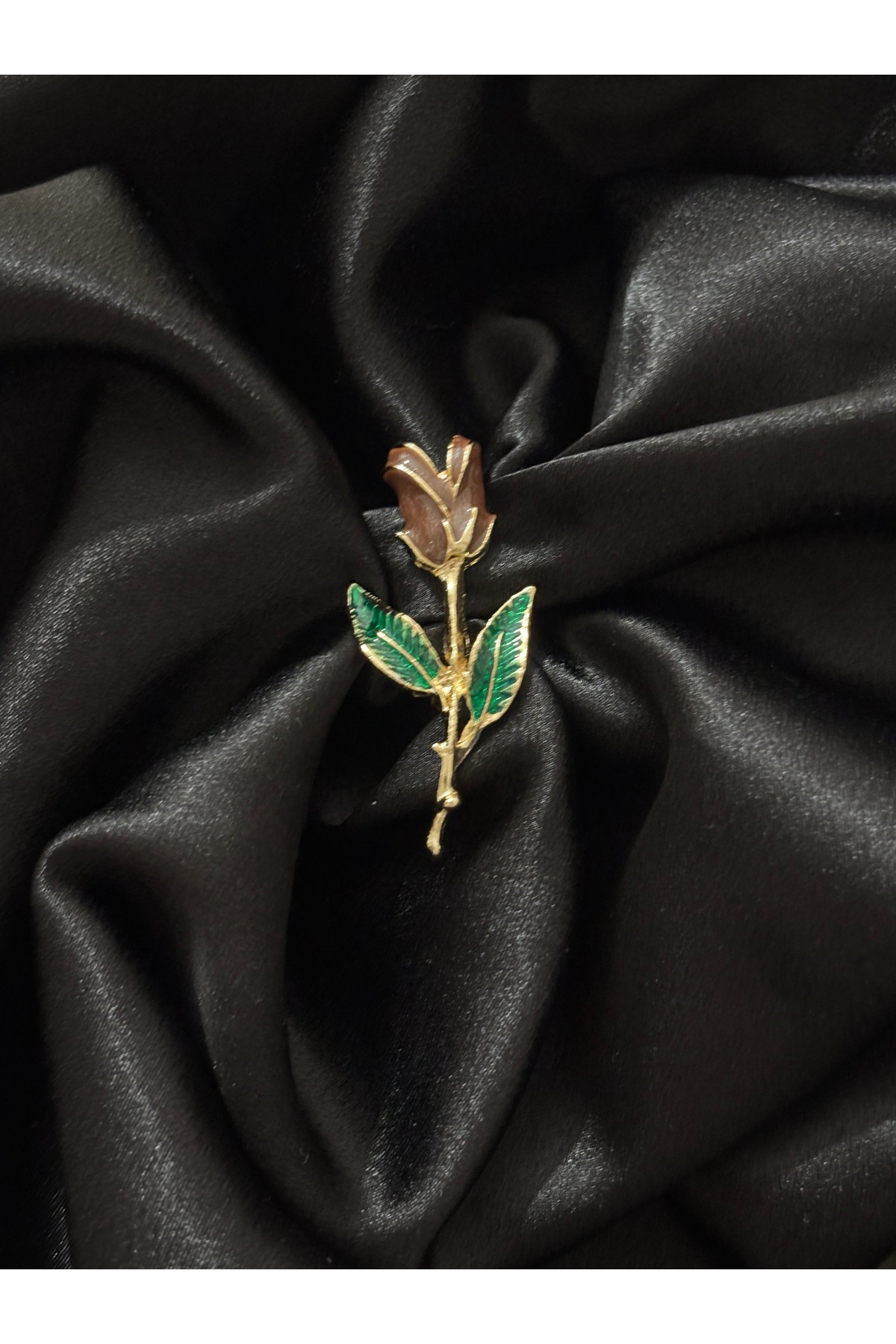 ✨Brown Natural Luminous Design Rose Figure -Green Leaf Detailed Brooch-Lapel Pin.