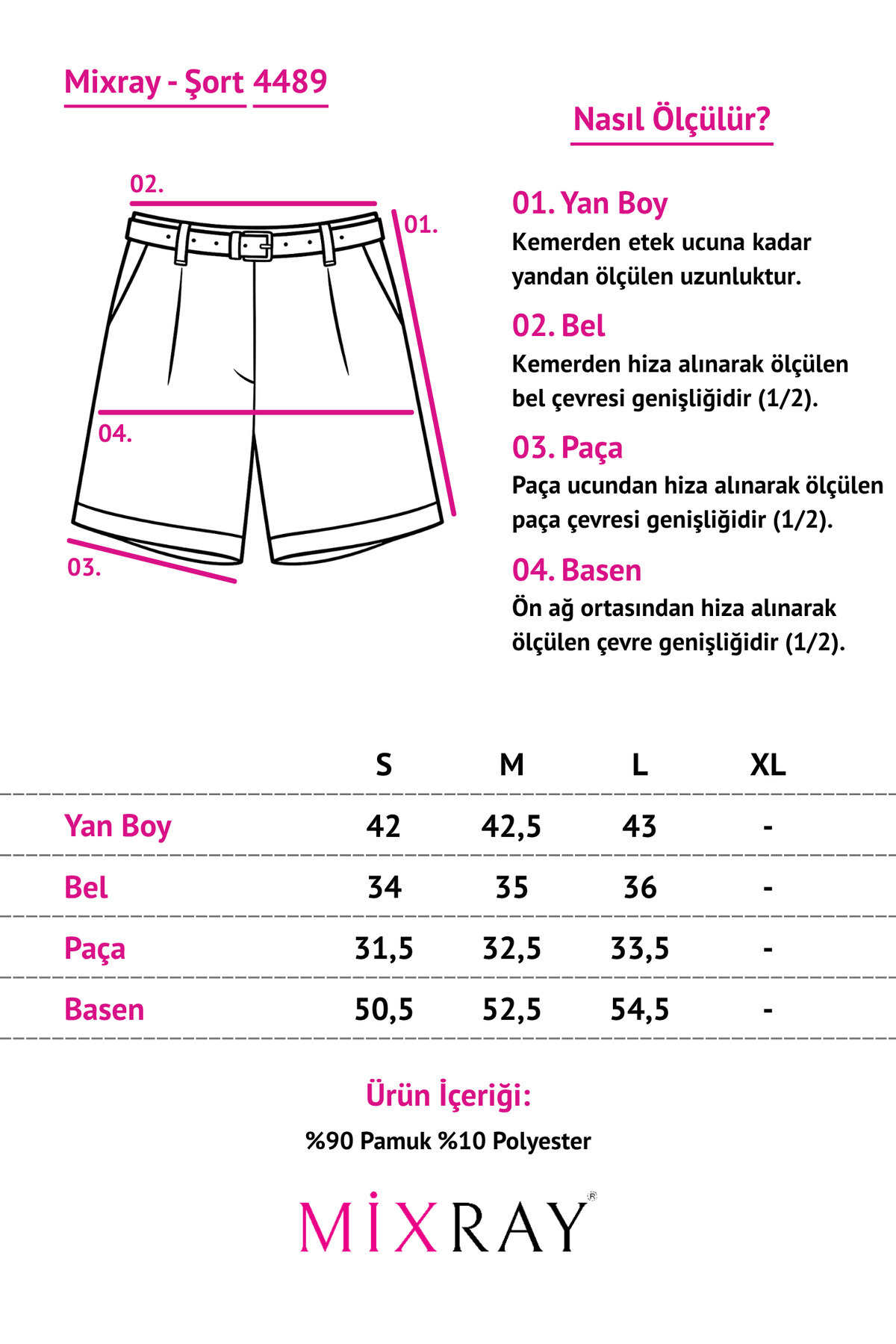 Mixray 40222 Women's High Waist Leather Belted Pleated Shorts Natural | ByTR