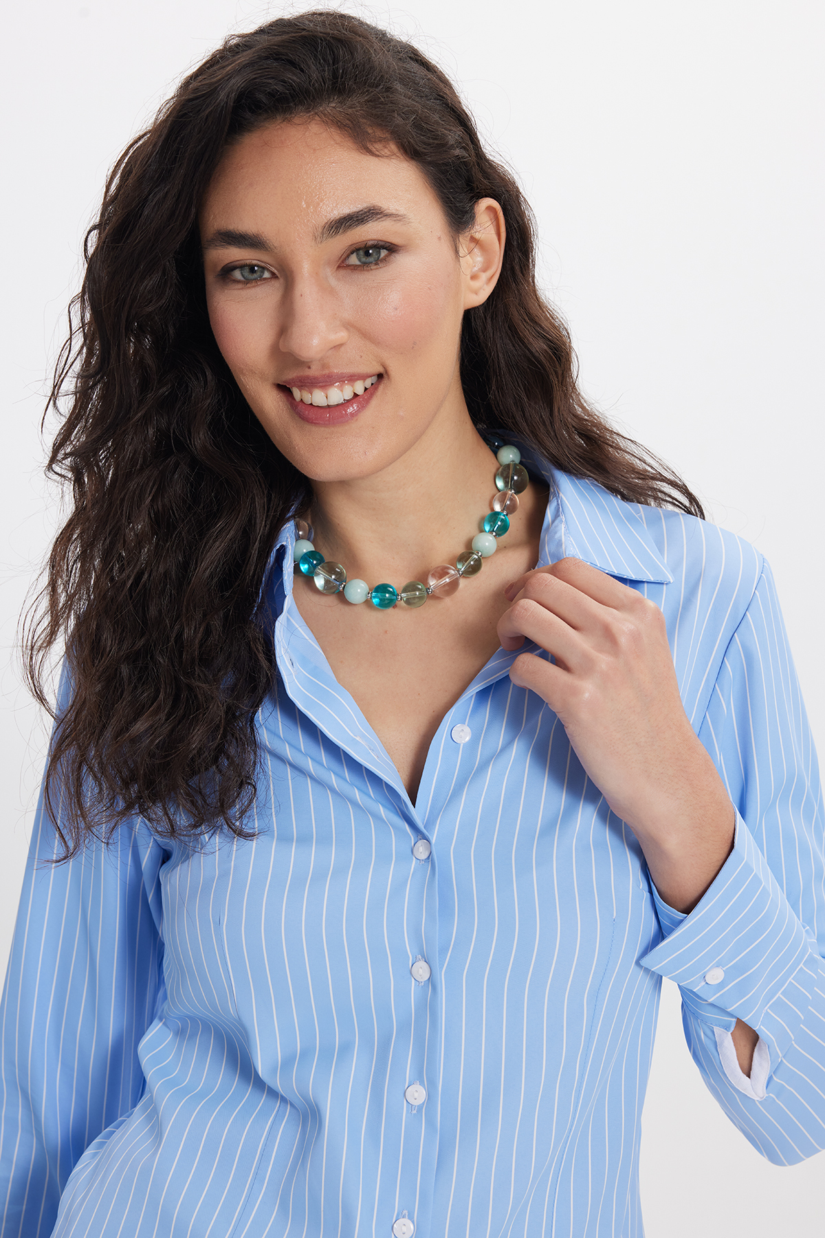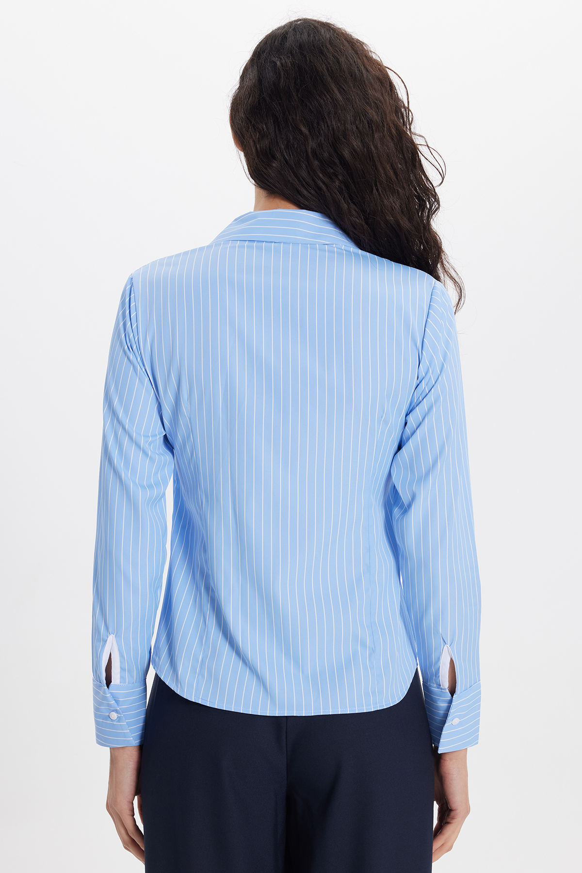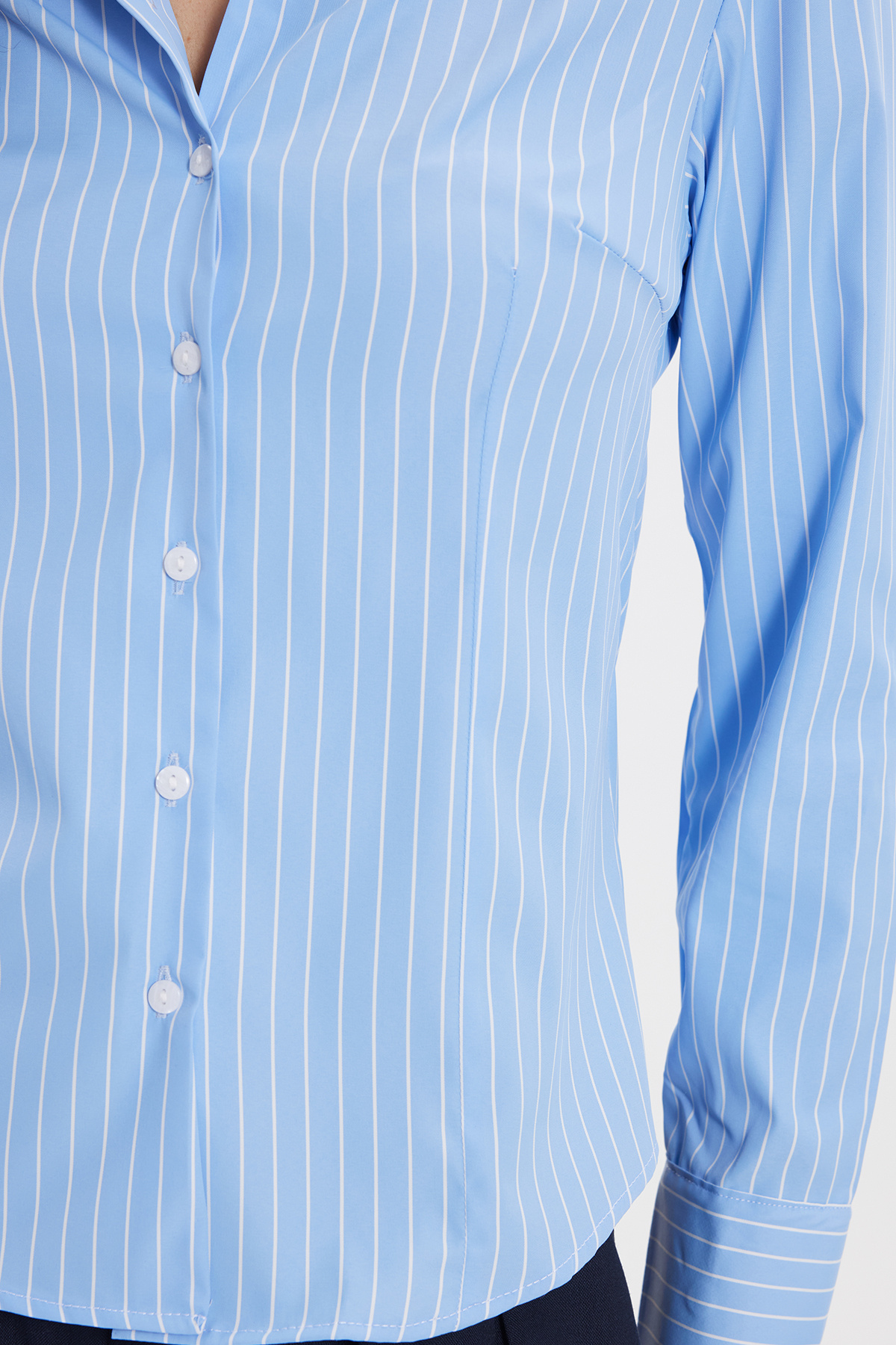 Women's Slim Fit Slim Fit Long Sleeve Striped Blue Shirt