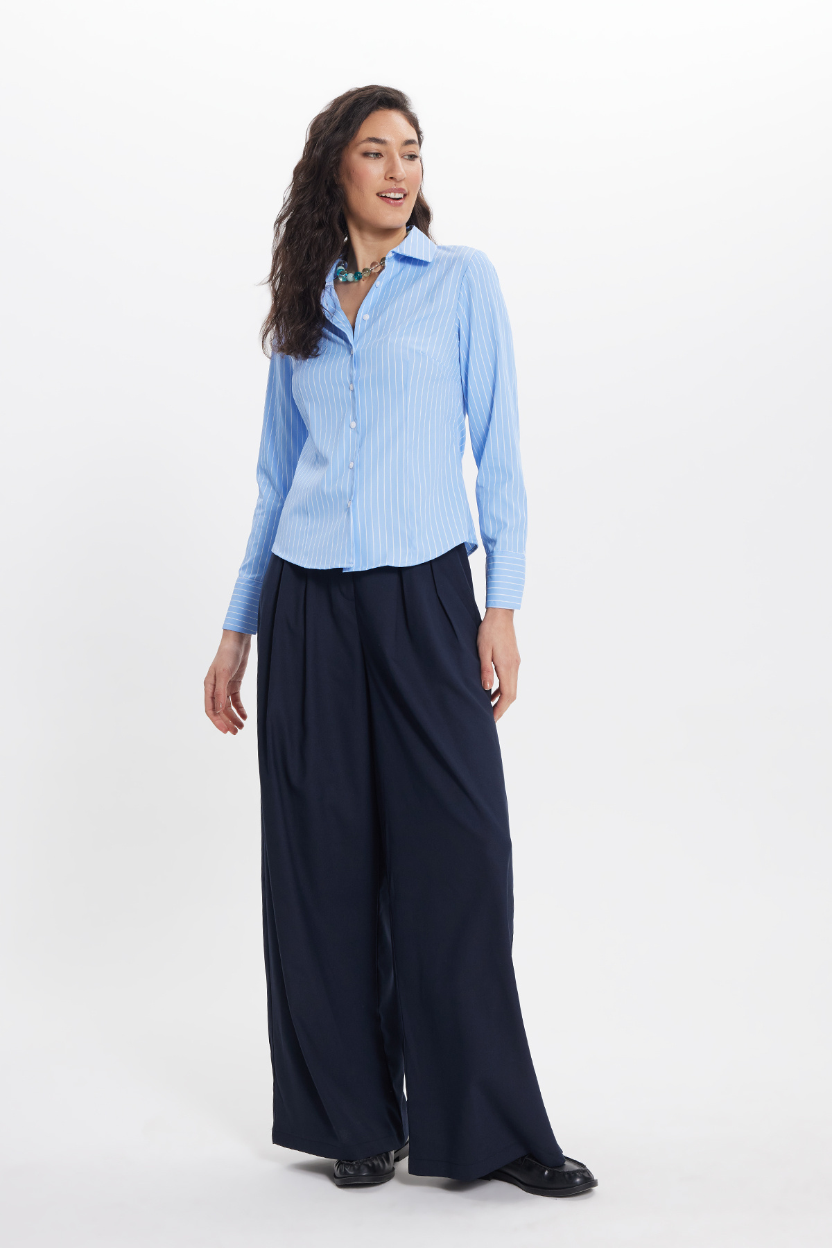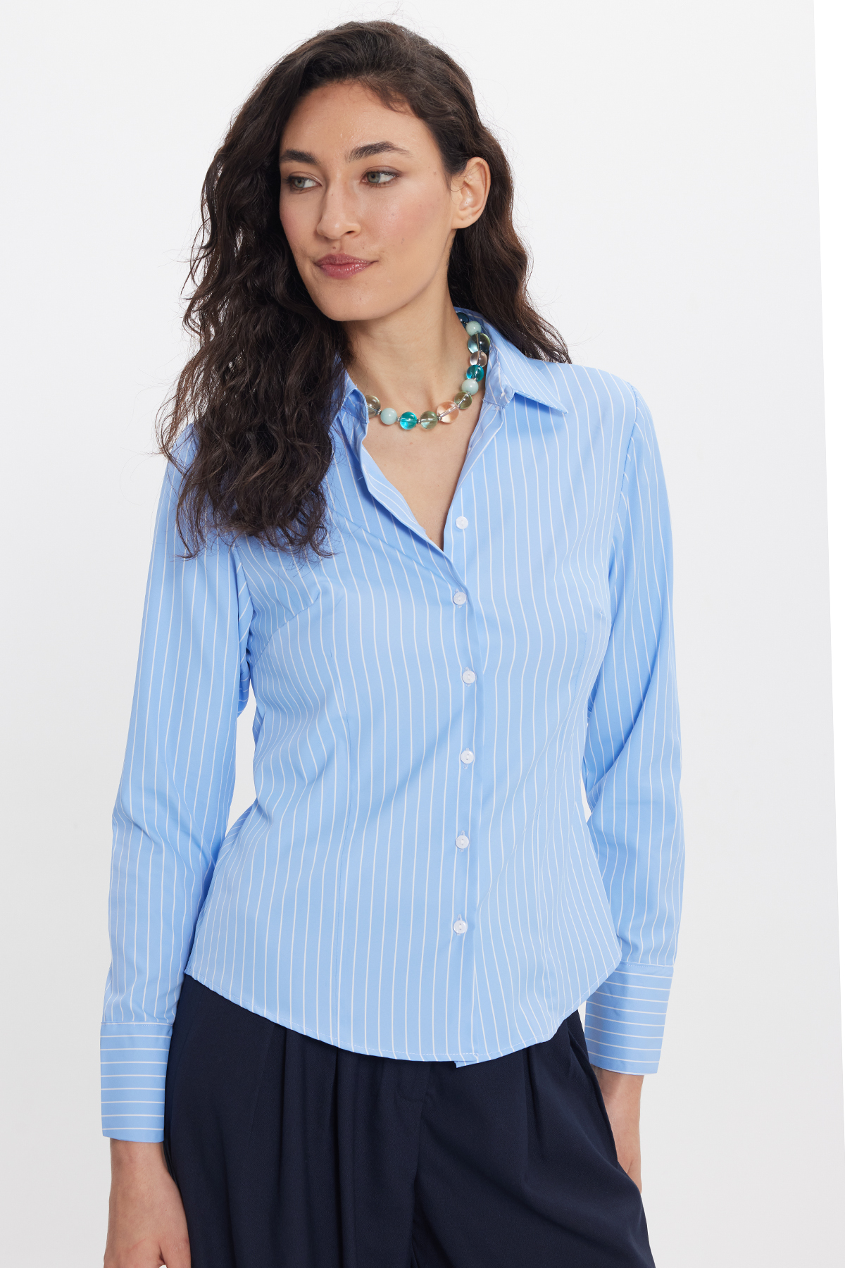 Tudors Women's Slim Fit Slim Fit Long Sleeve Striped Blue Shirt | ByTR