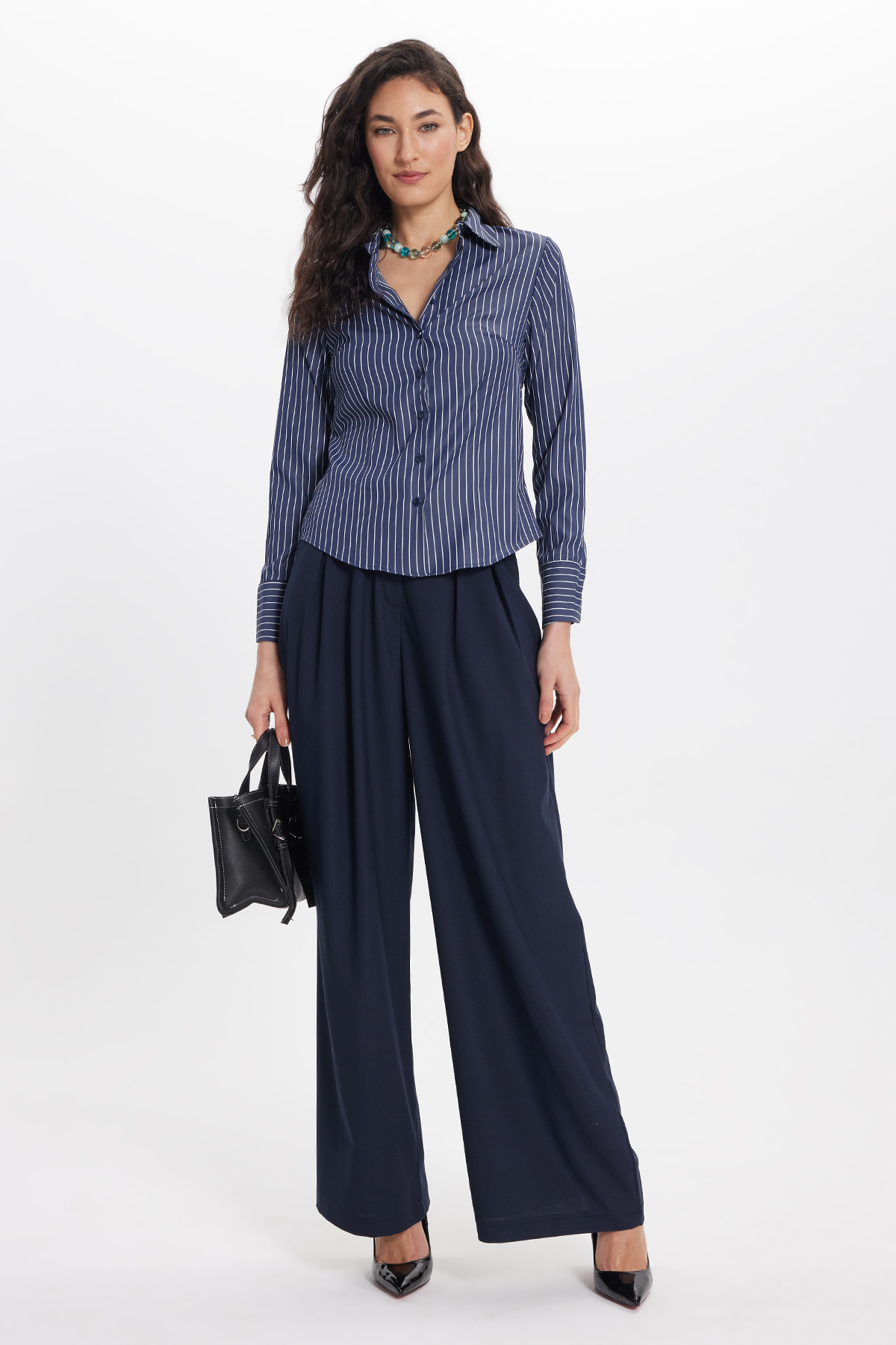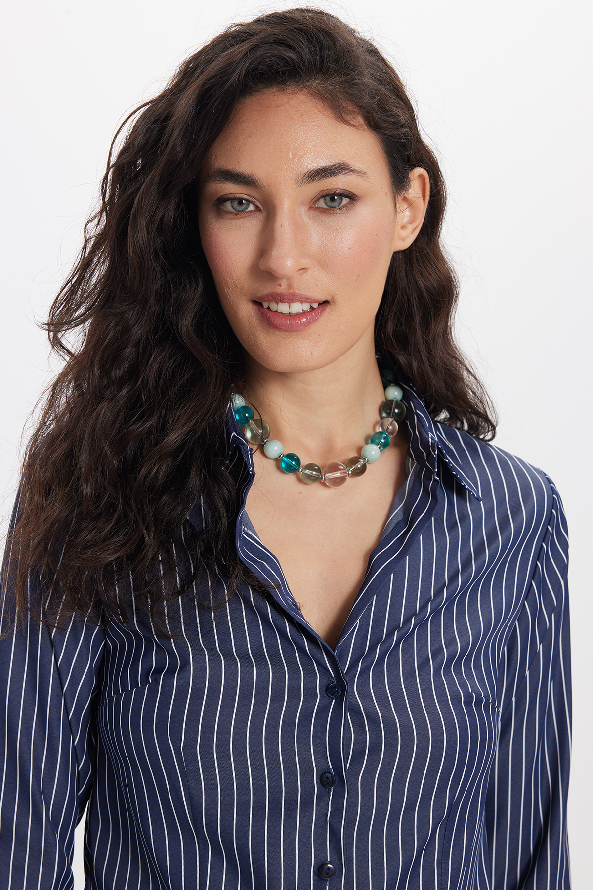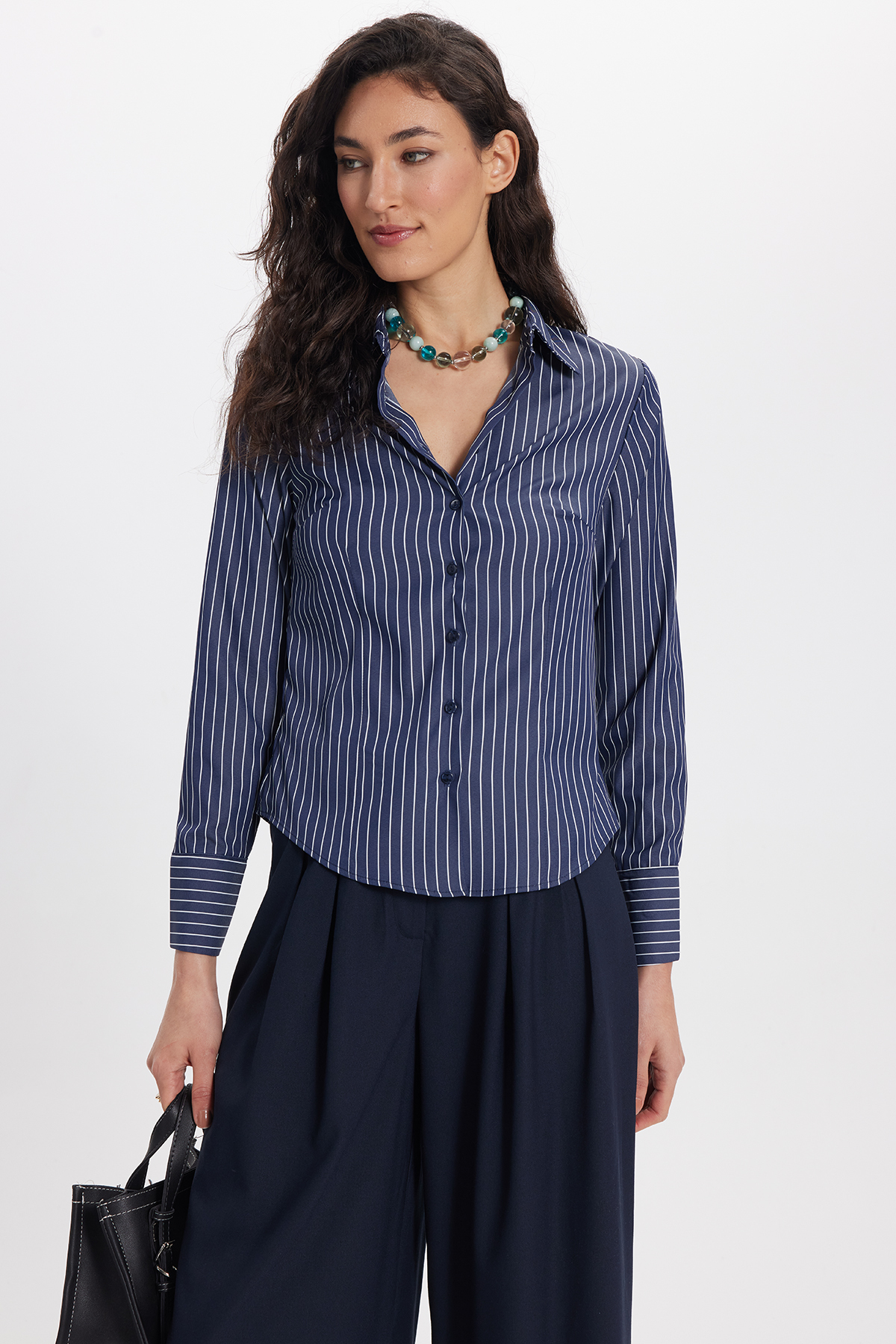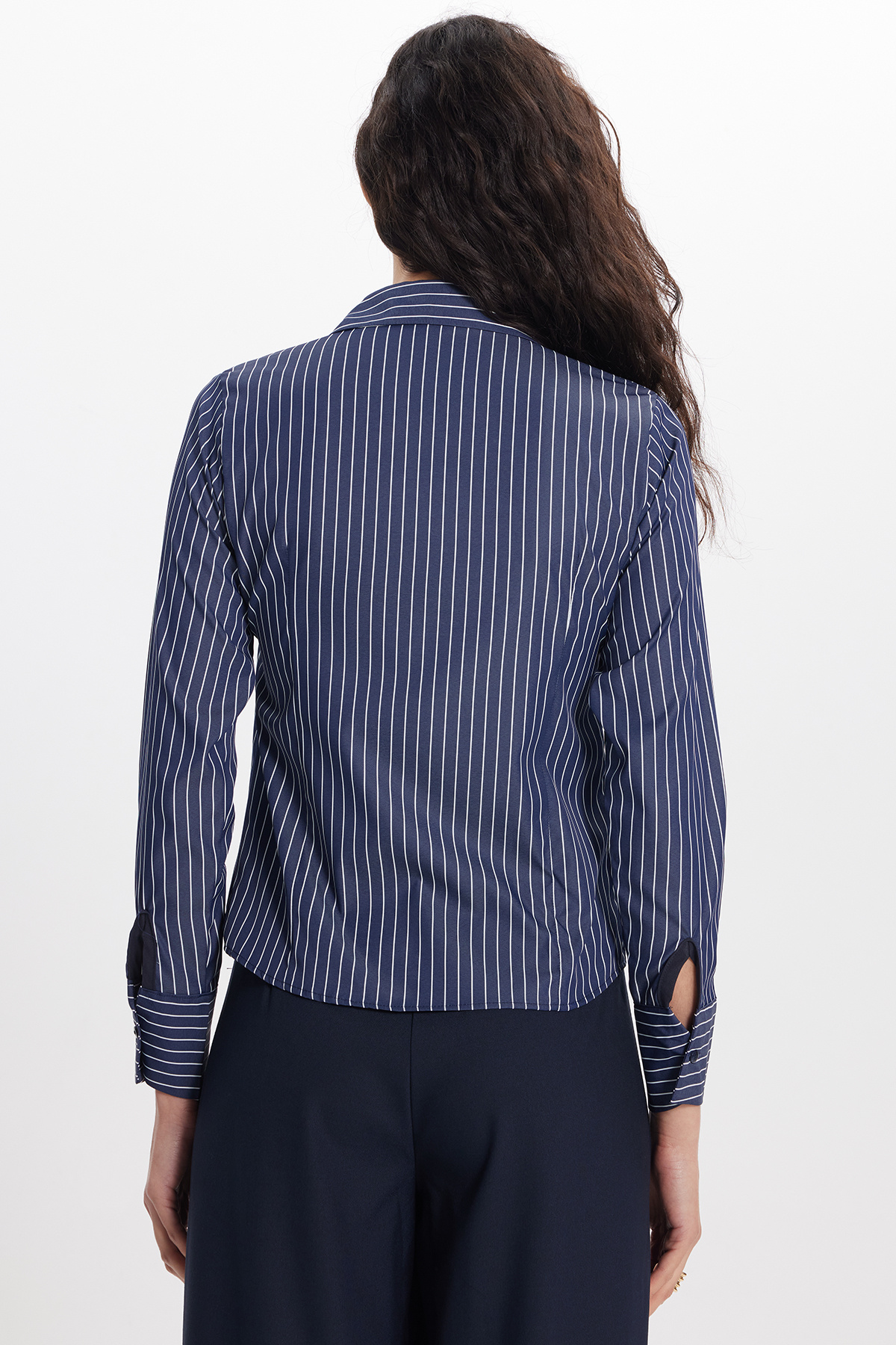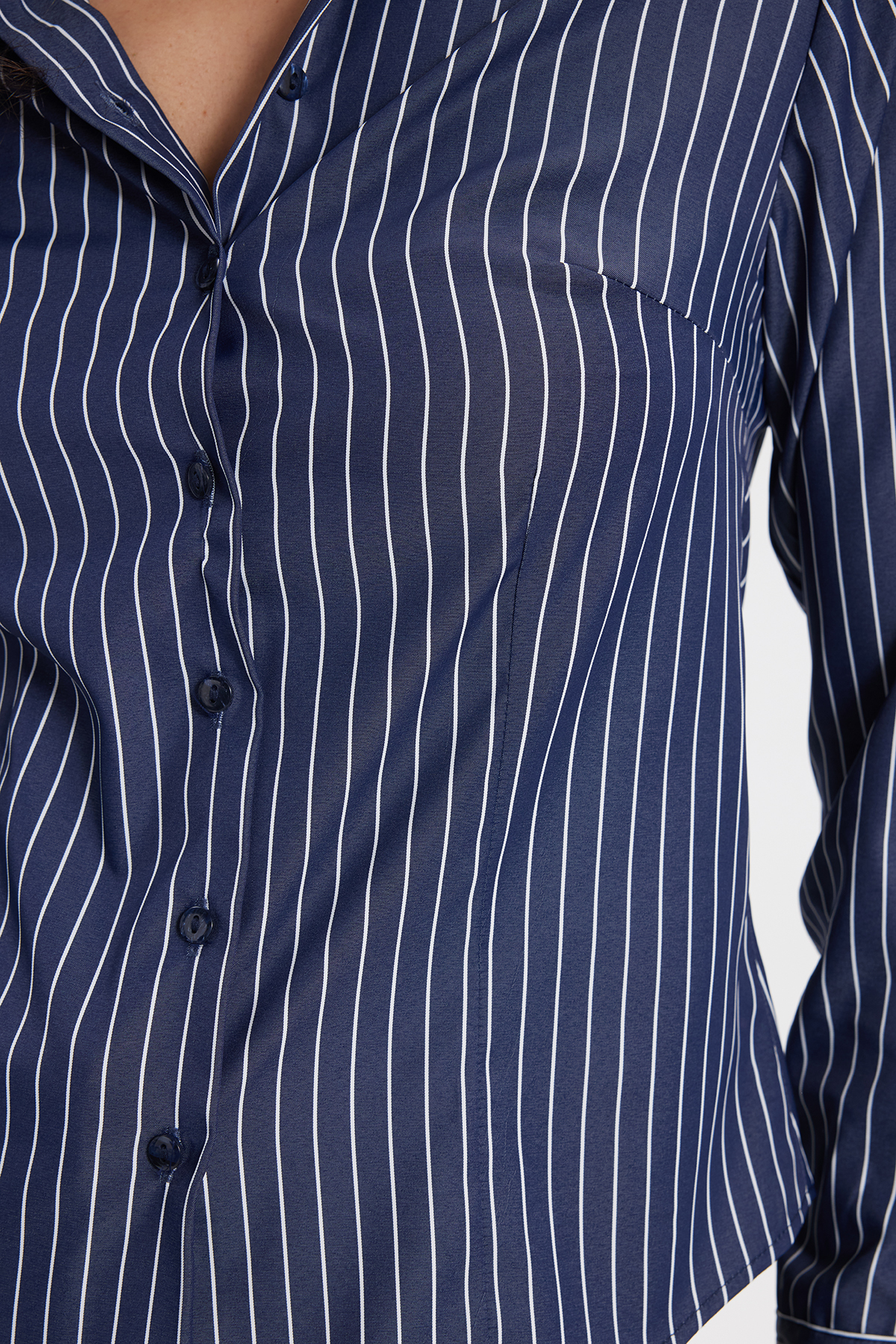Women's Slim Fit Slim Fit Long Sleeve Striped Navy Blue Shirt