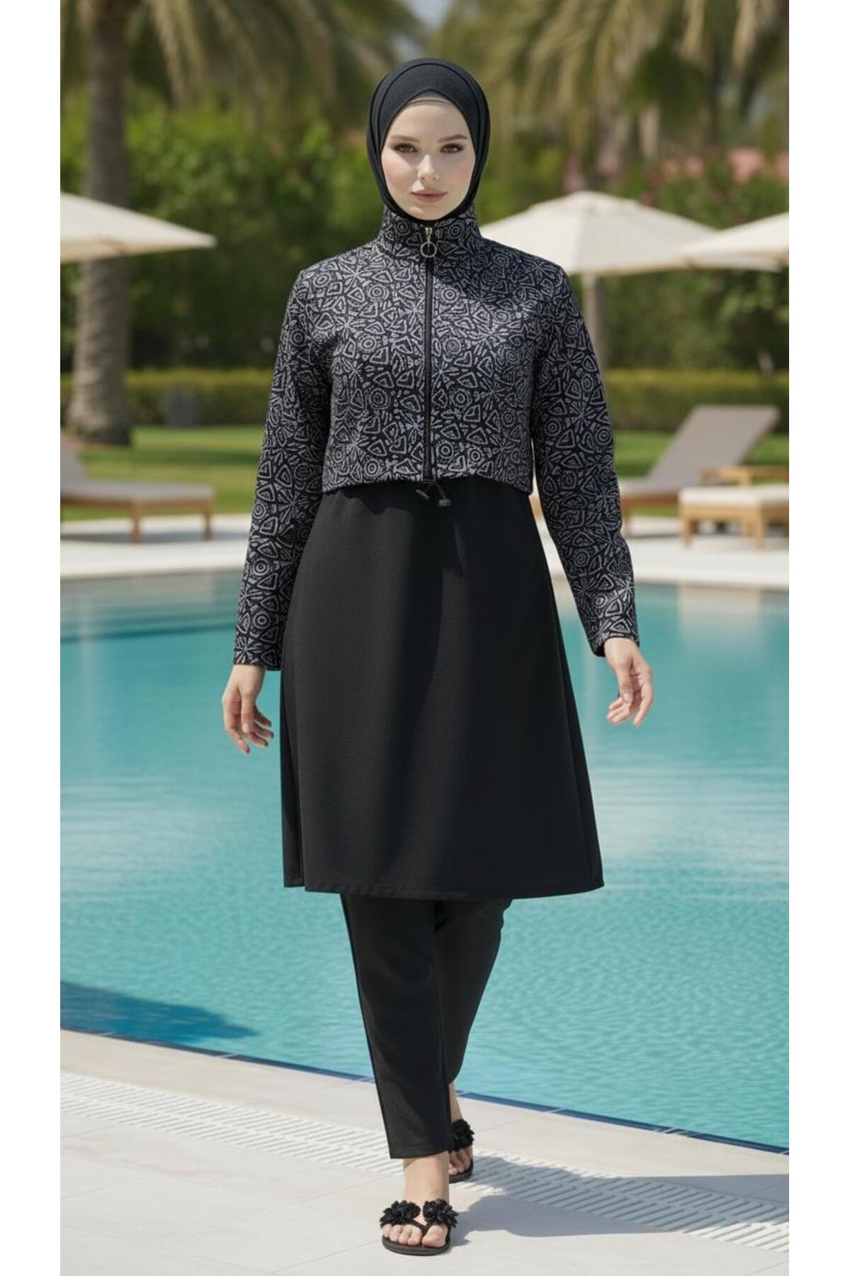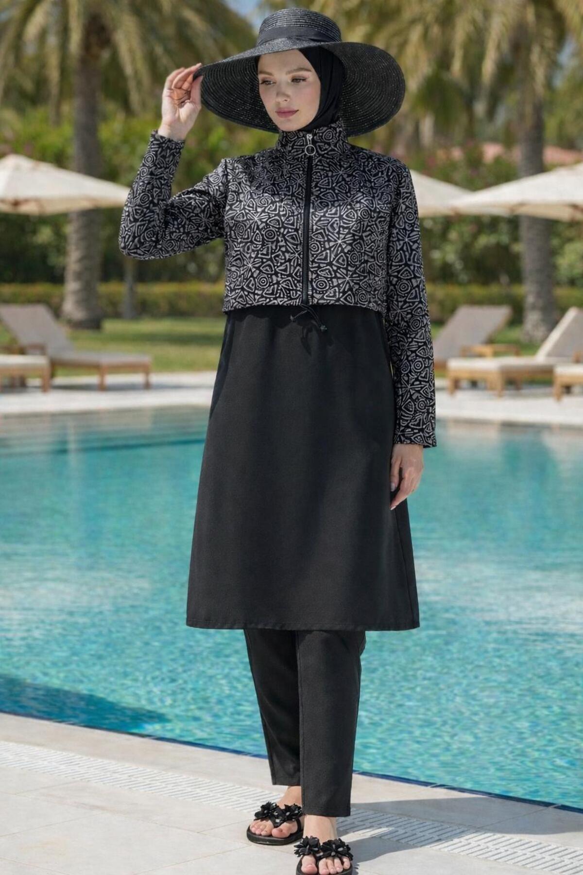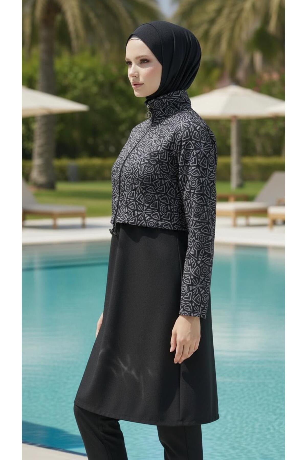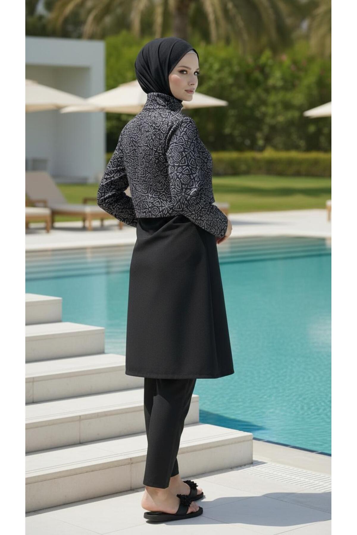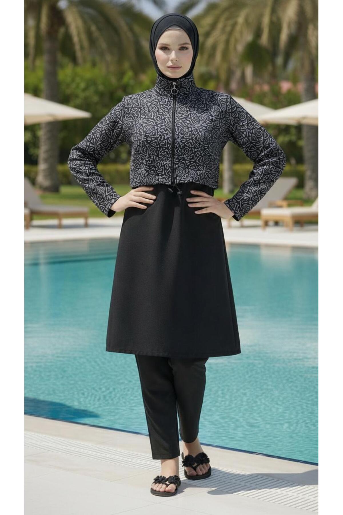 new ats Rimal Full Closed Modest Swimwear Ethnic Pattern 4-Piece Set with Boned | ByTR