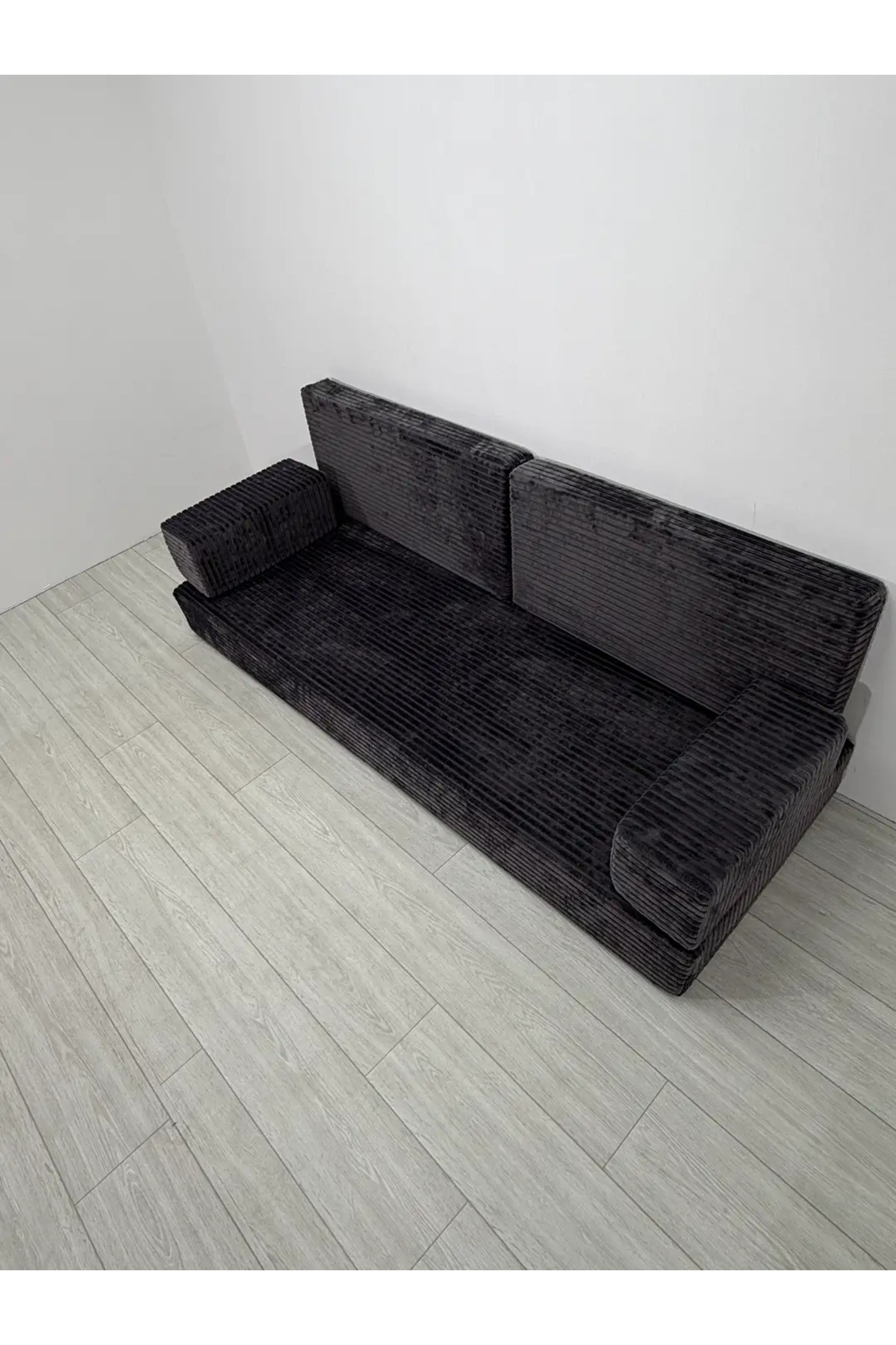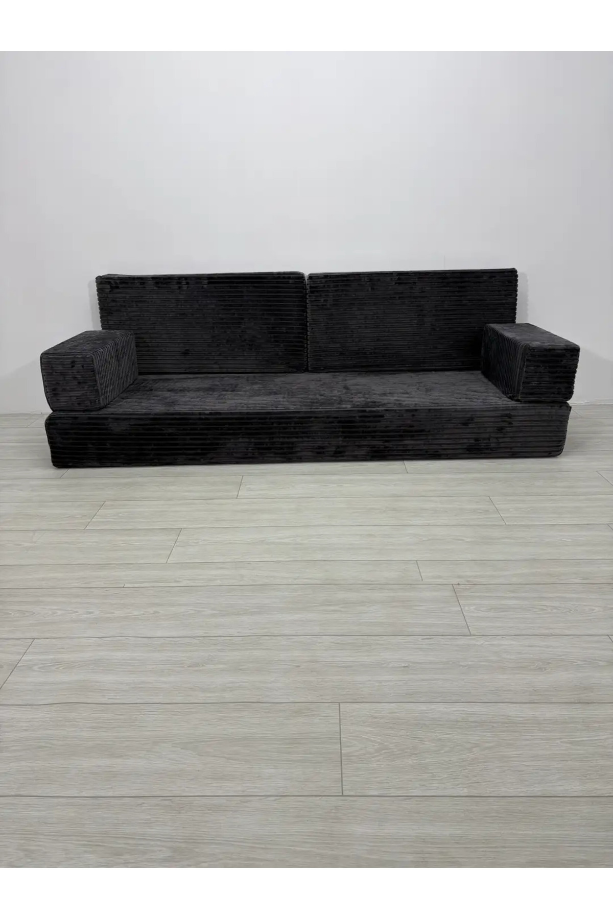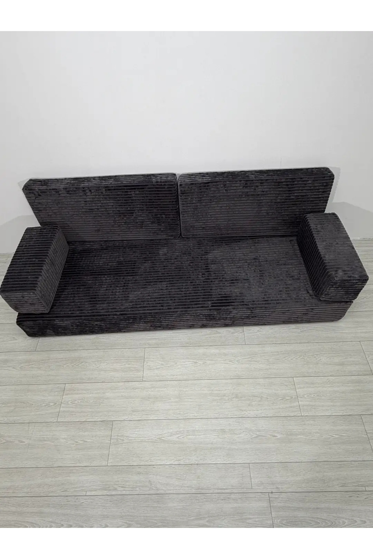 BAKIRÖZÜ HOME Premium Corduroy Fabric, Modular Leisure Chair , Floor Mattress and Sofa Set - Anthracite | ByTR