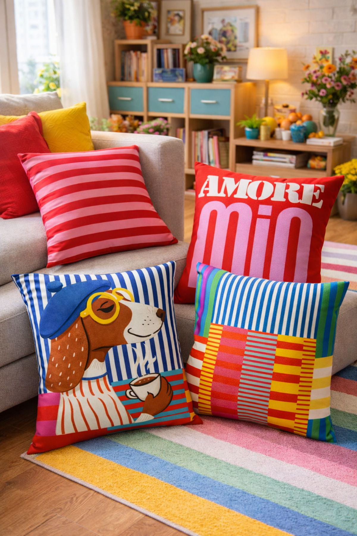 SasoHome Colorful Modern Patterned Pillow Case | Energetic & Stylish Living Room Decor 4-piece Pillow Case | ByTR