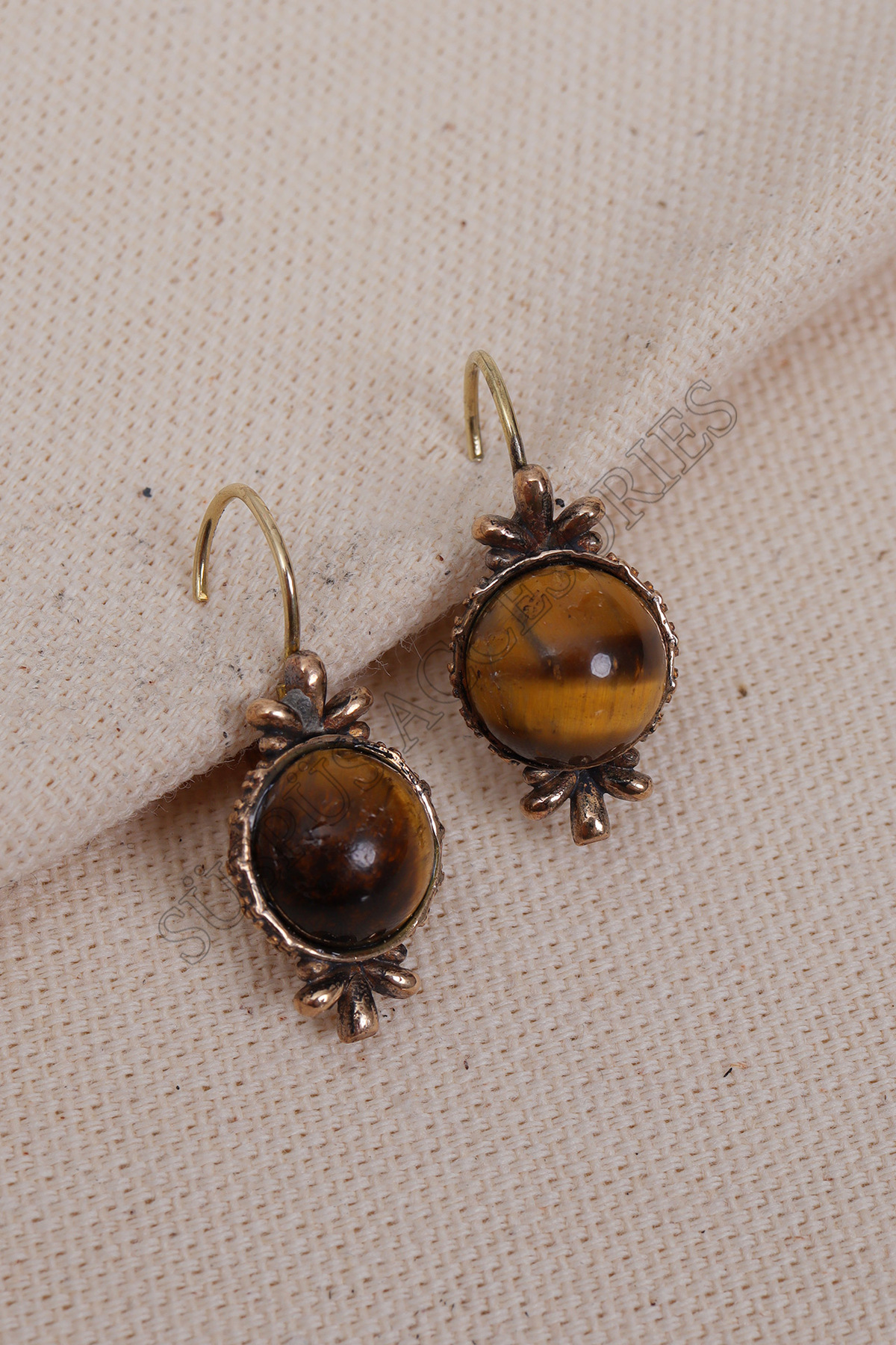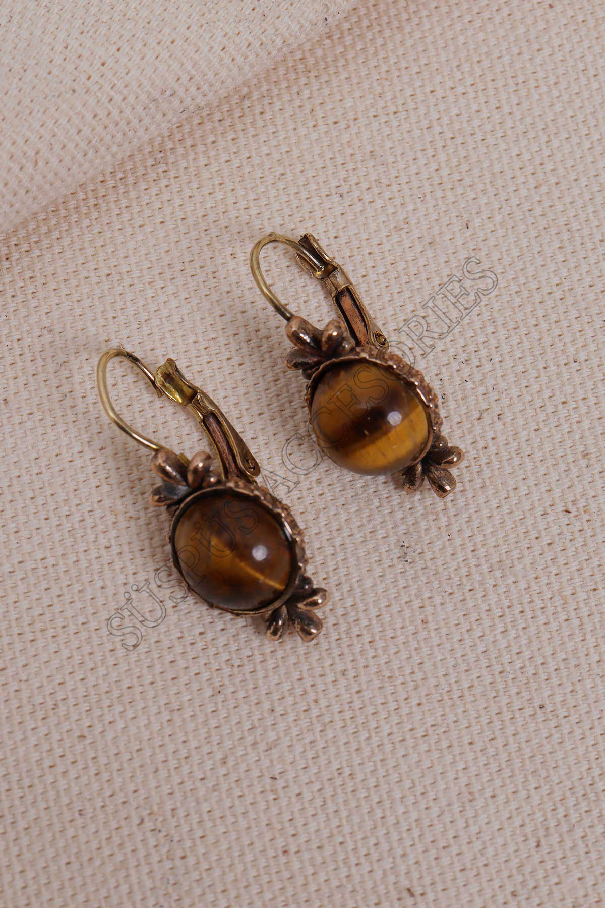 Süspüs Accessories Tiger Eye Authentic Earrings with Round Gemstone | ByTR