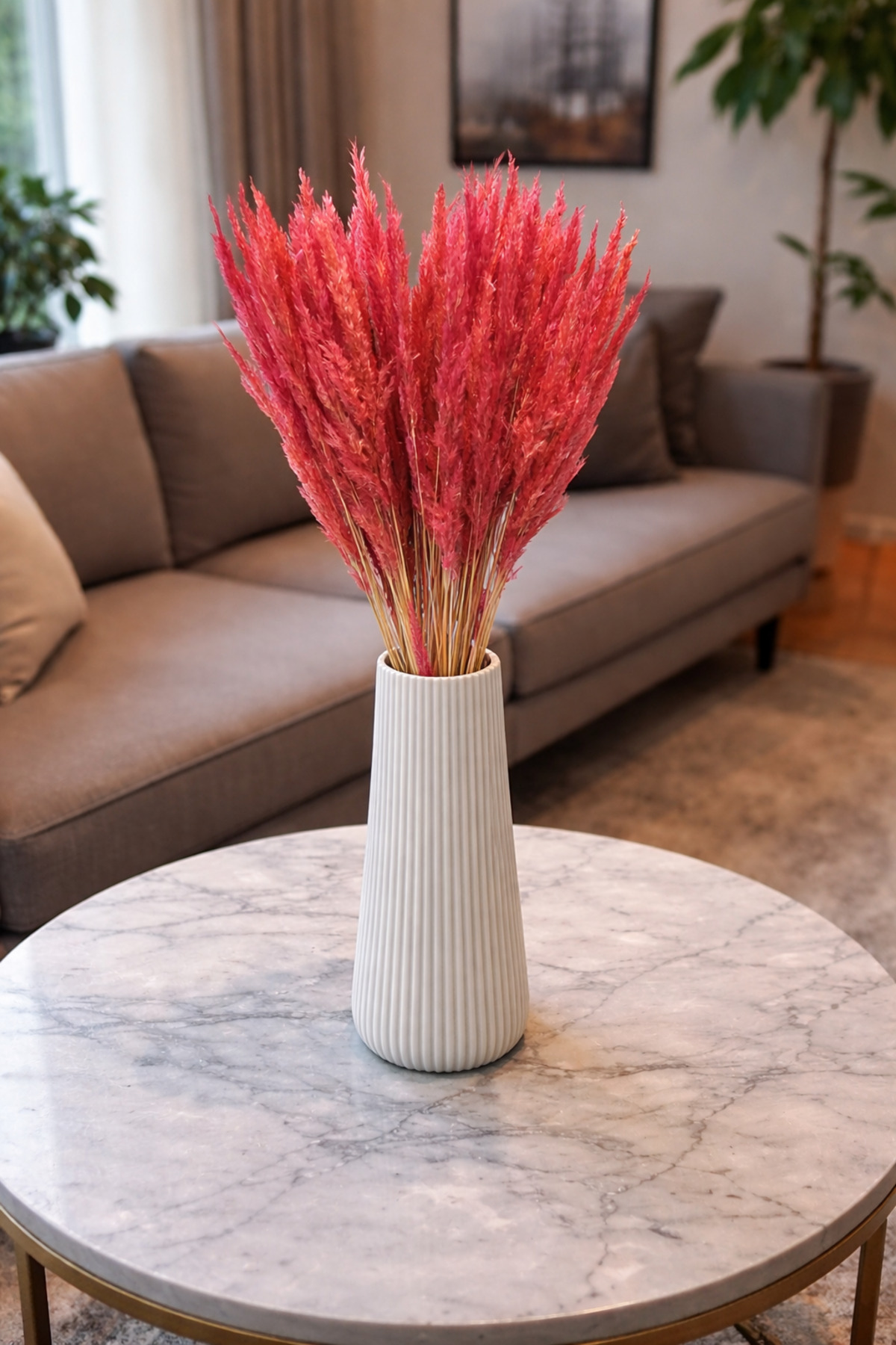 With its natural-looking and long-lasting structure, pampas grass is among the frequently preferred decorative dried flowers for hall decoration, table ornament, office decoration and cafe decoration.
