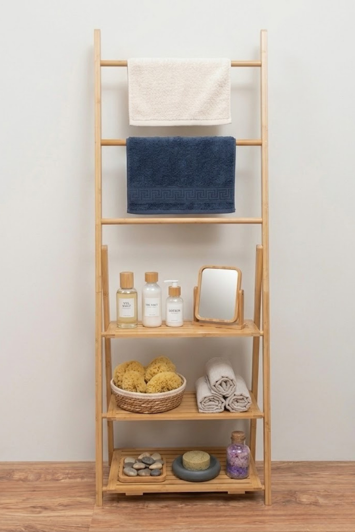 Bamboo Ladder Bathroom Shelf Multi Purpose Towel Rack Organizer Shelf Wooden Towel Hanger Bathroom Organizer