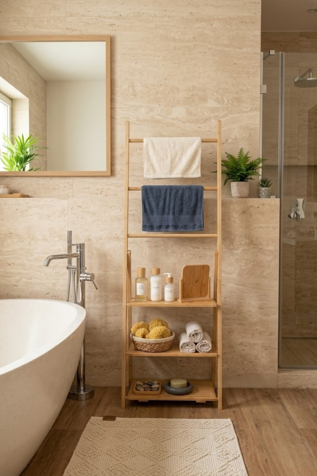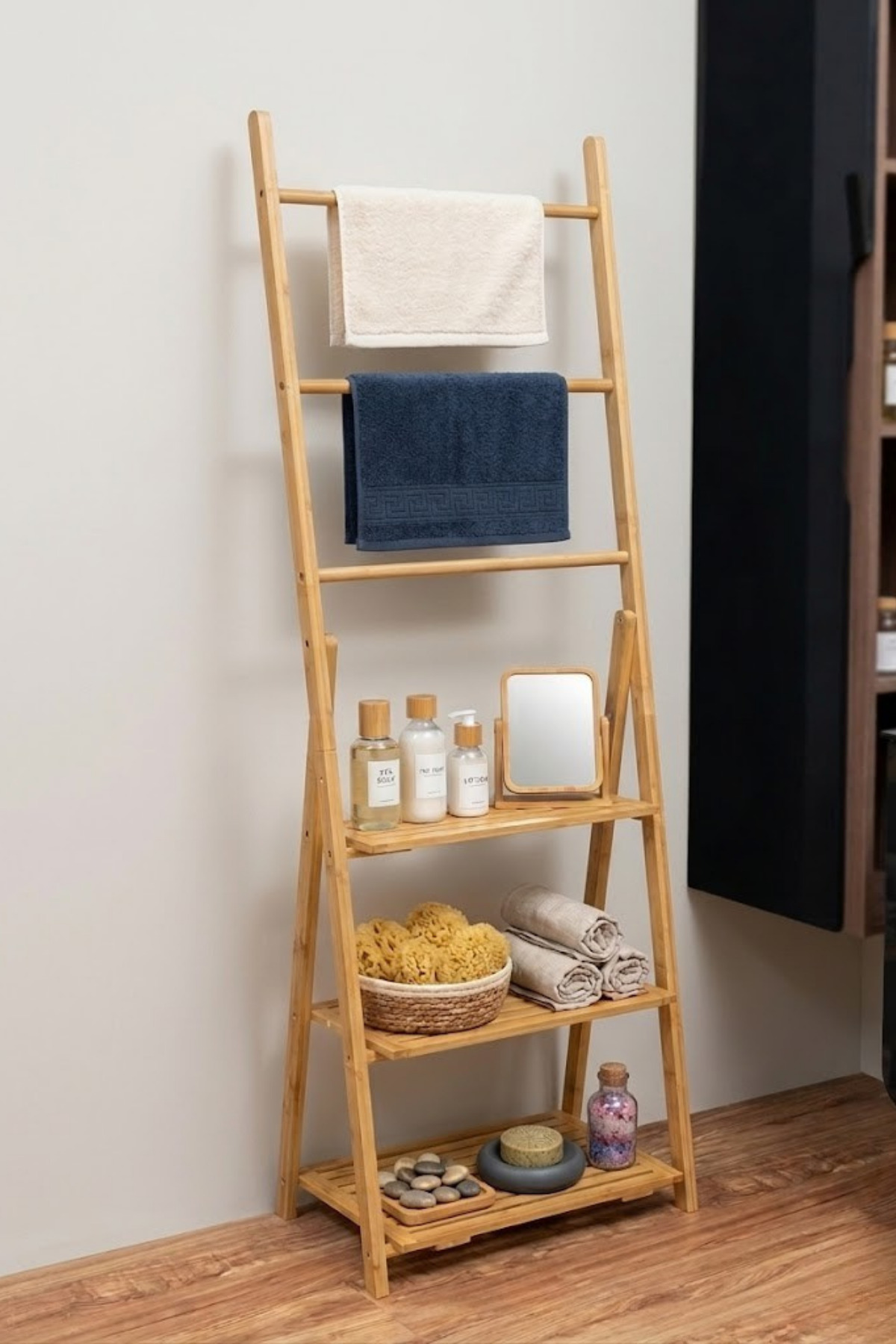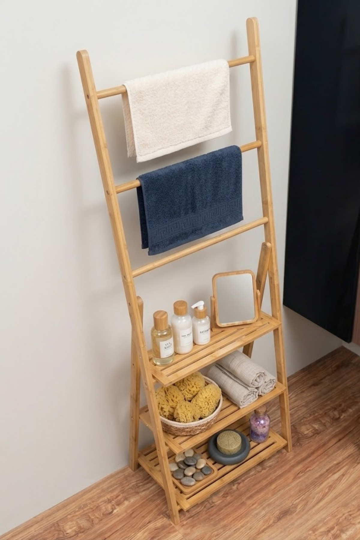 Milonsa Bamboo Ladder Bathroom Shelf Multi Purpose Towel Rack Organizer Shelf Wooden Towel Hanger Bathroom Organizer | ByTR