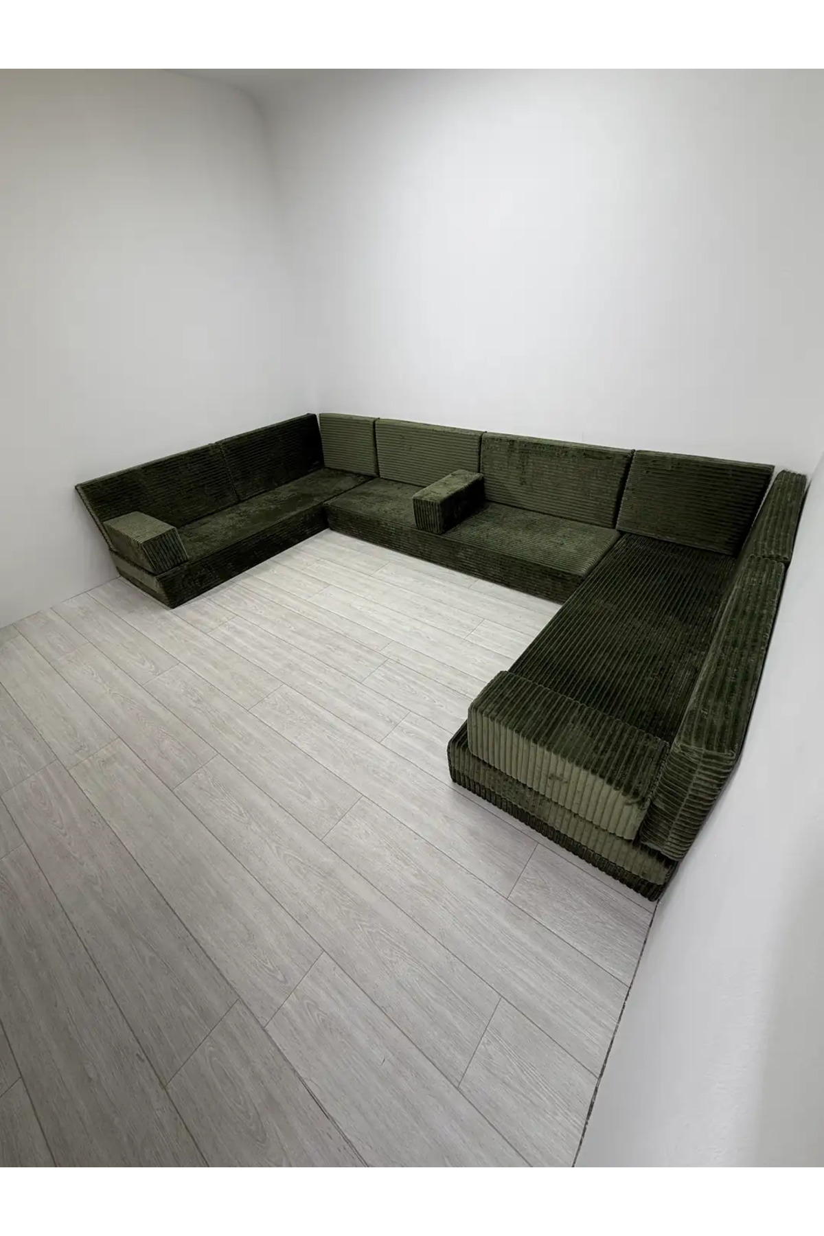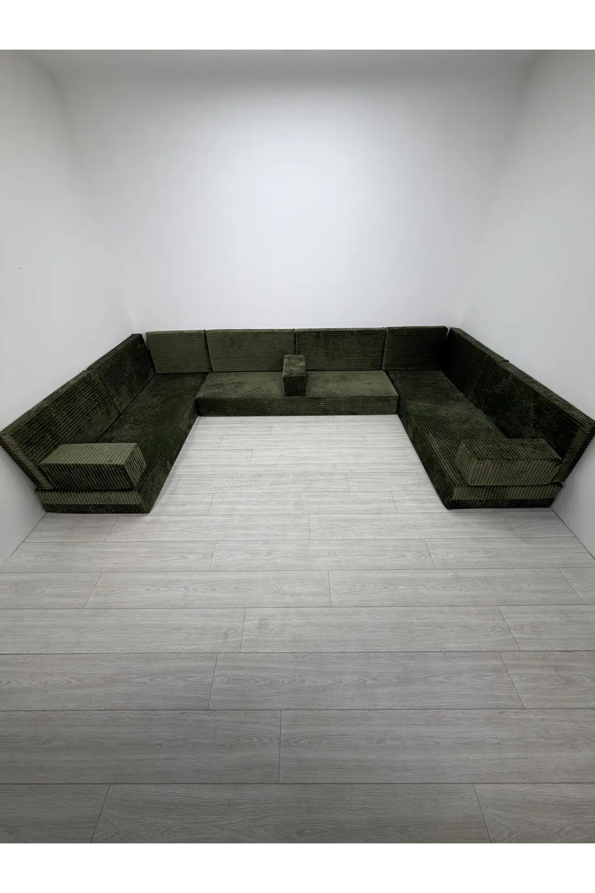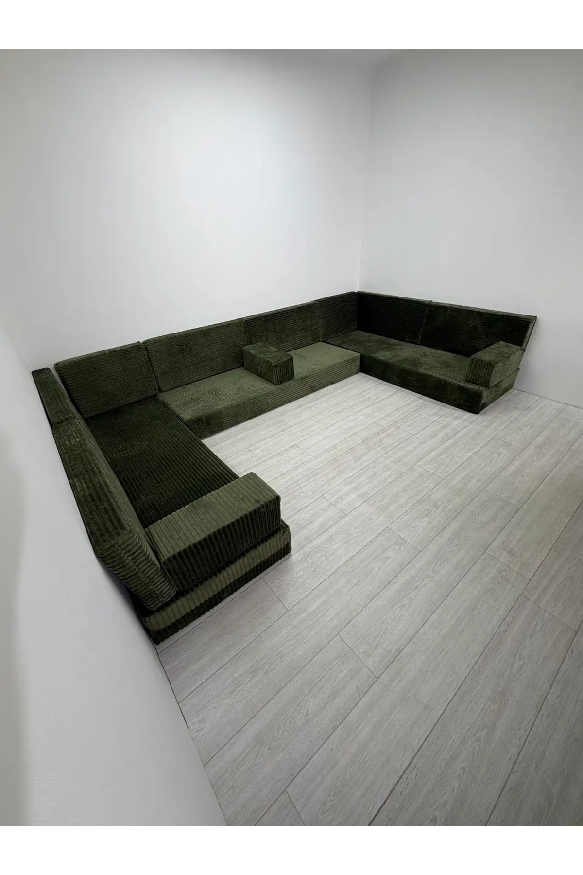 BAKIRÖZÜ HOME Premium Velvet Fabric, Comfort Floor Sofa ,Modular Oriental Corner Set - Green- U SET | ByTR