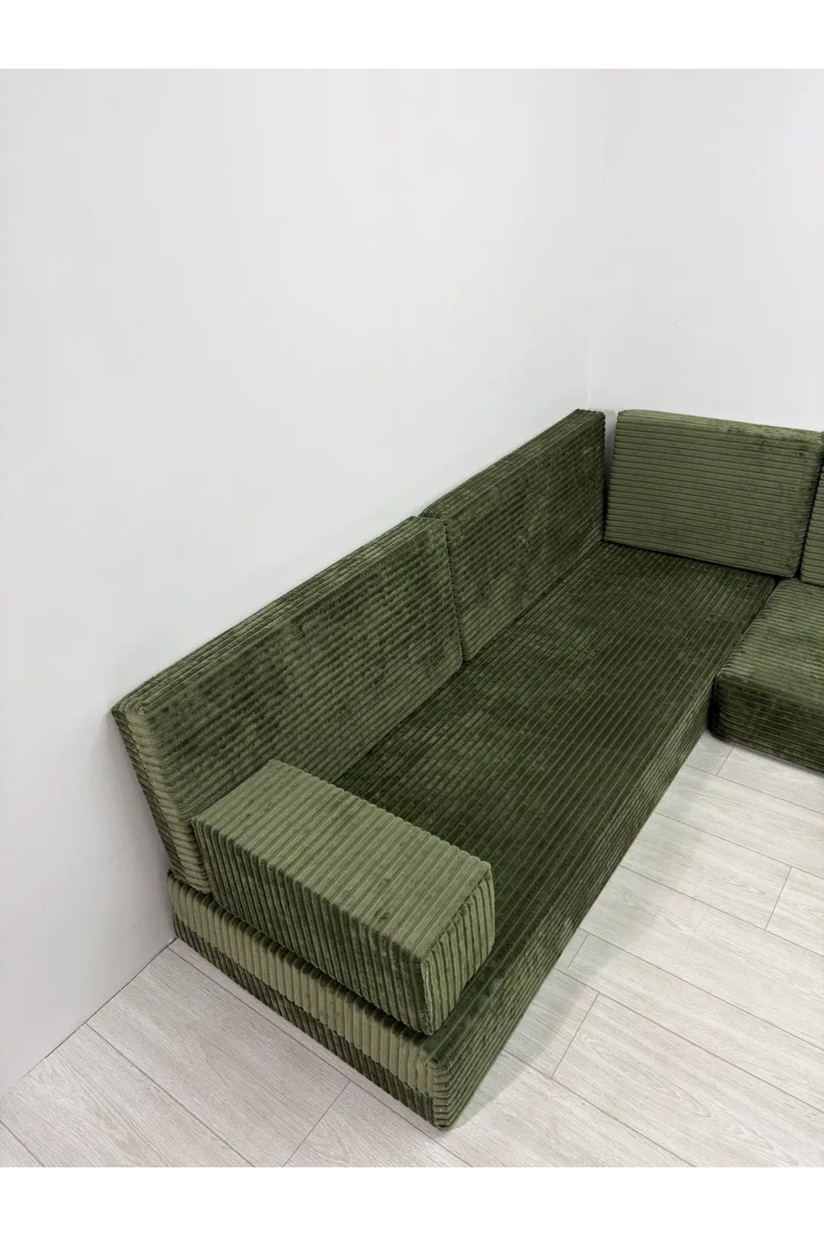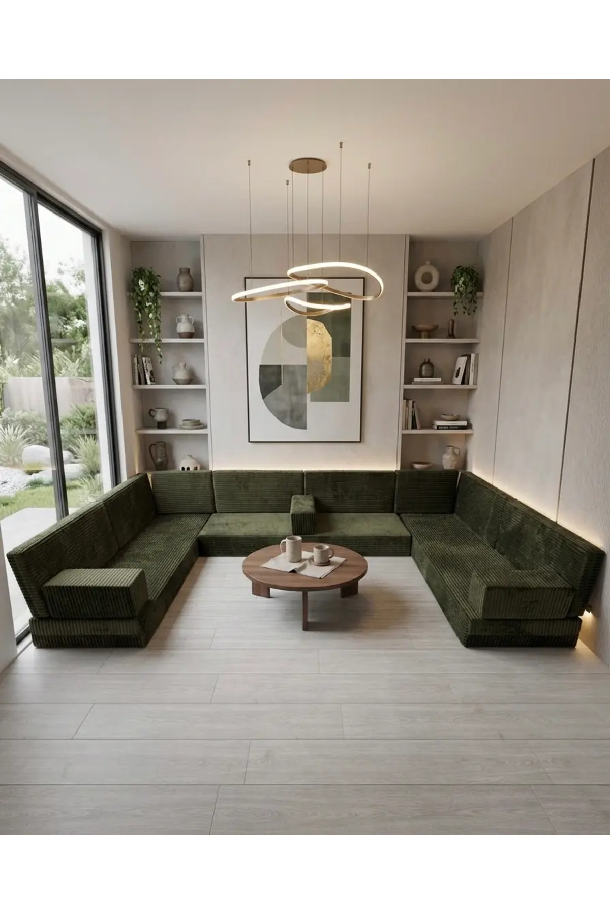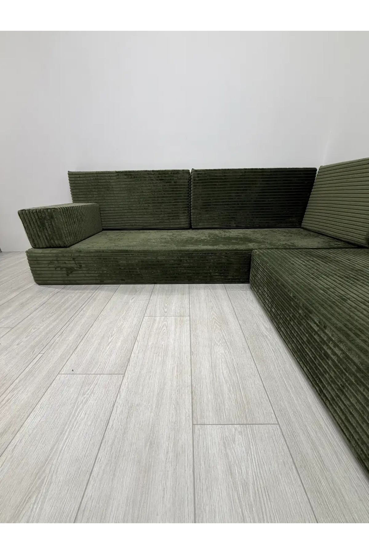 BAKIRÖZÜ HOME Premium Velvet Fabric, Comfort Floor Sofa ,Modular Oriental Corner Set - Green- U SET | ByTR