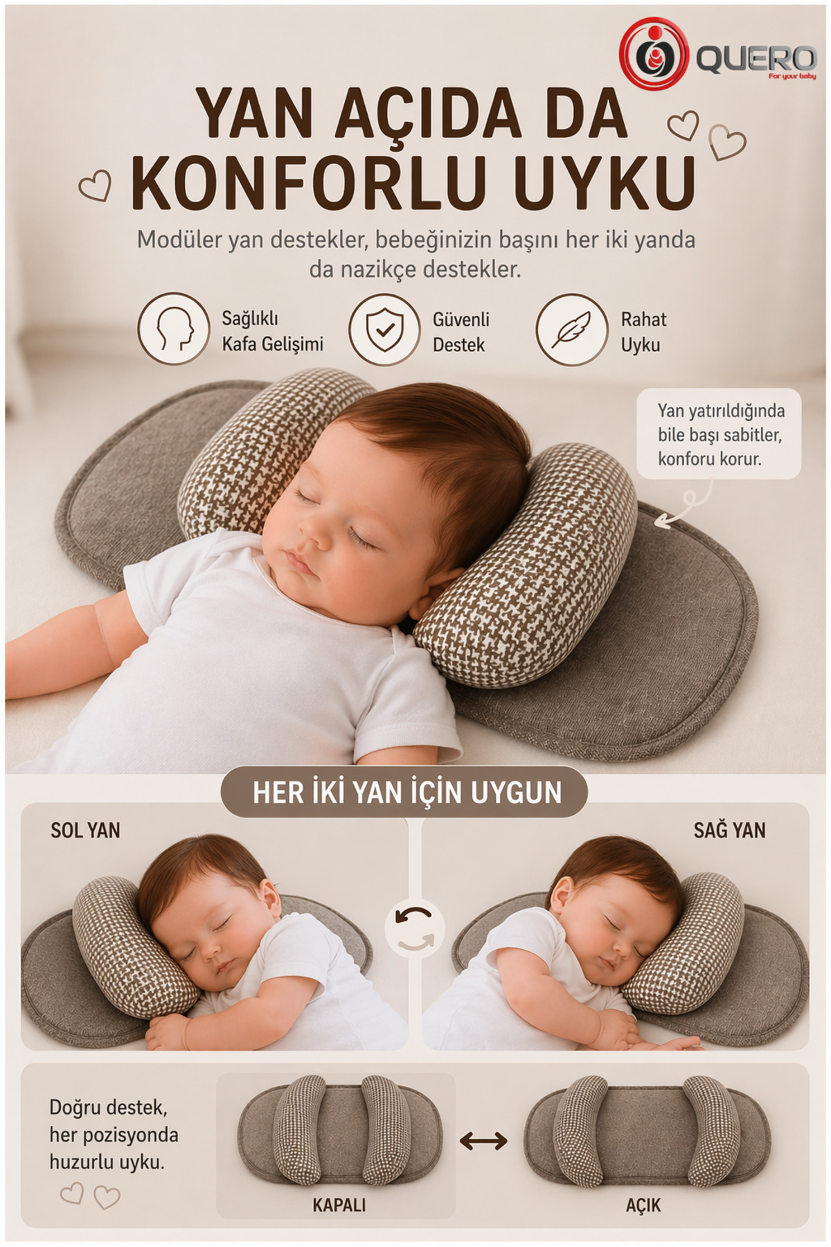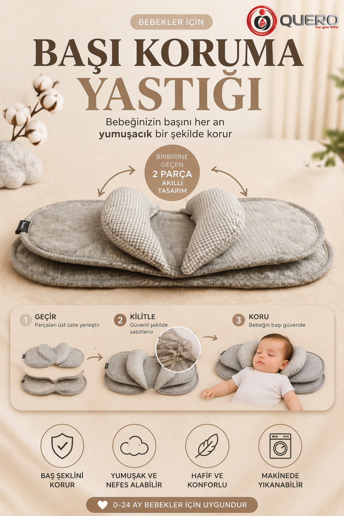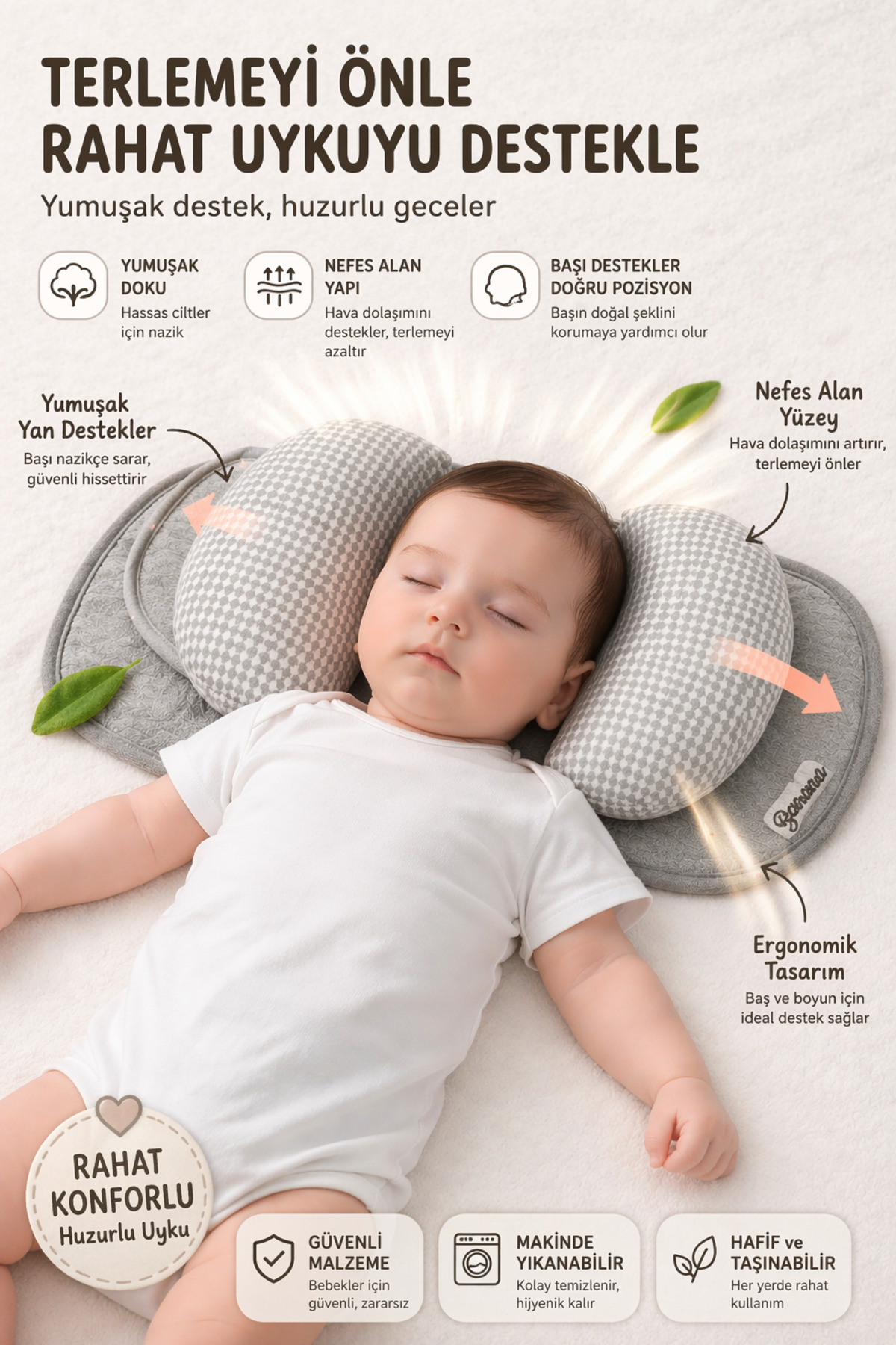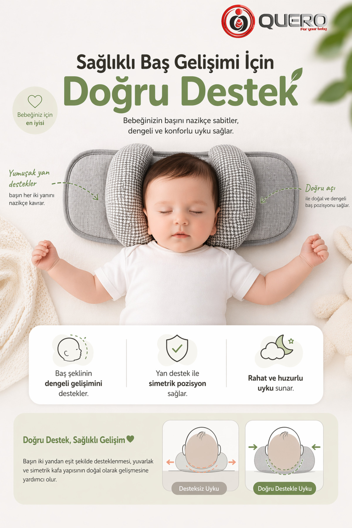 It supports the head of newborn babies and helps them to form a smooth head shape.