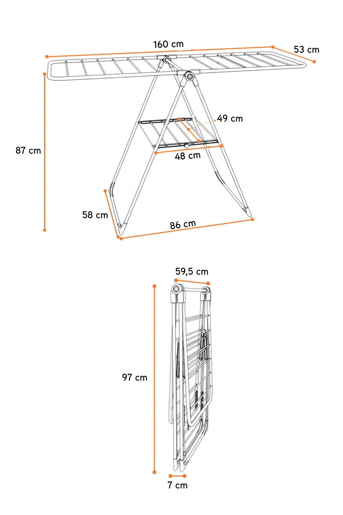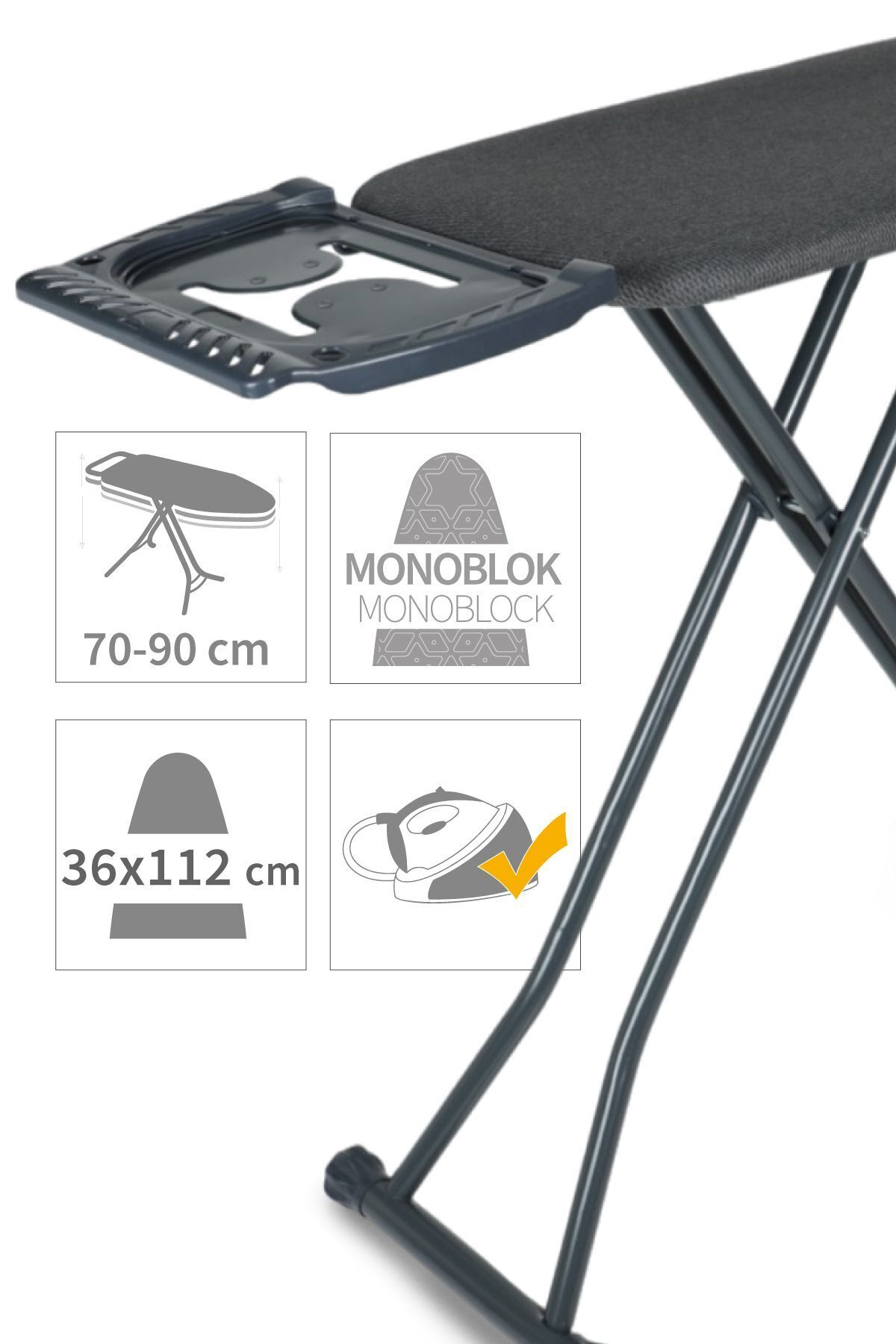 Silvia Ironing Board Ironika Drying Set with Thick Pipe - Black