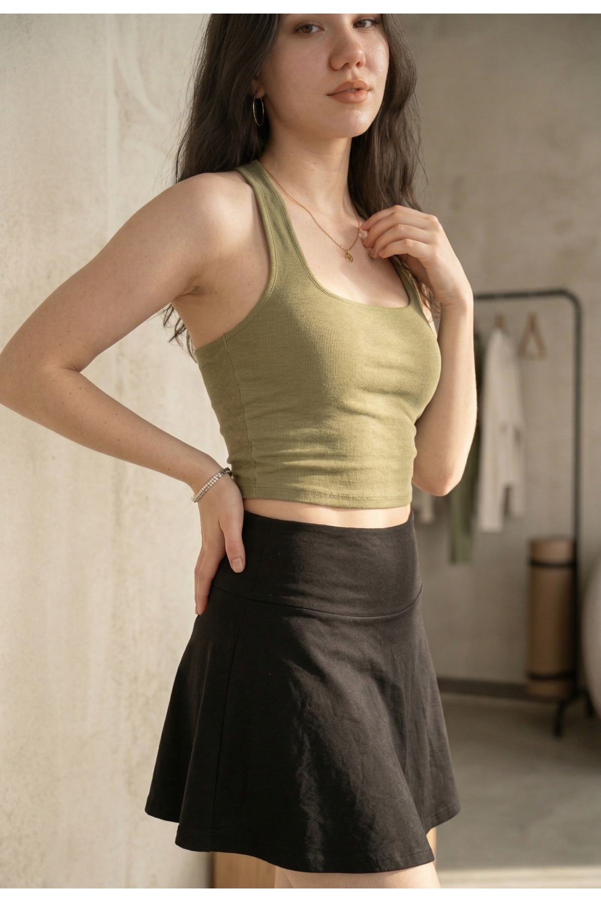 Attracting attention with its modern and stylish design, the back neckline halter neck crop blouse will be indispensable in the summer months.