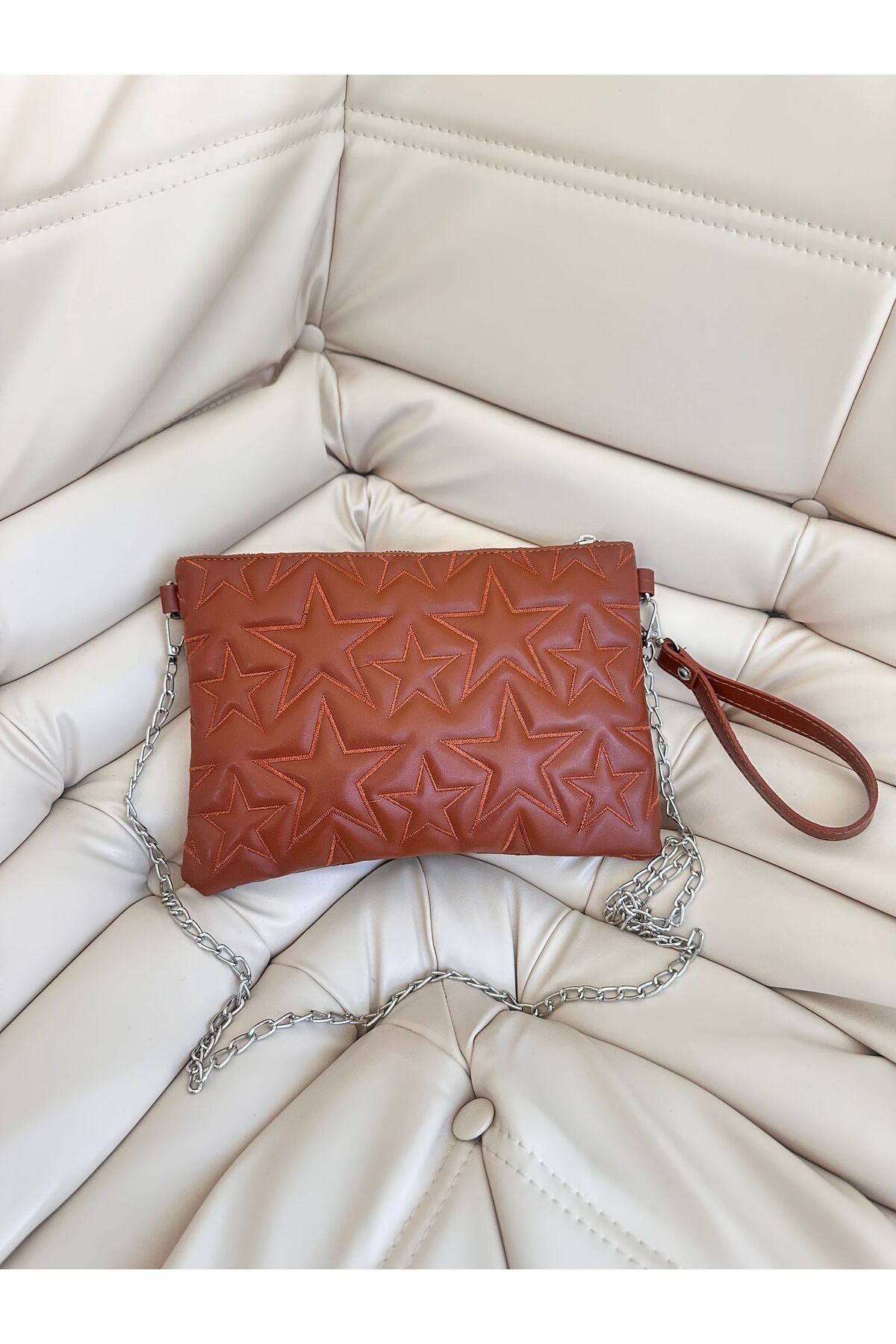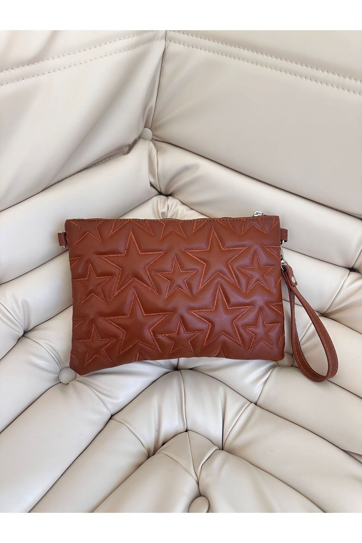 Stitched Clutch Faux Leather Star Women Star Bag Tan