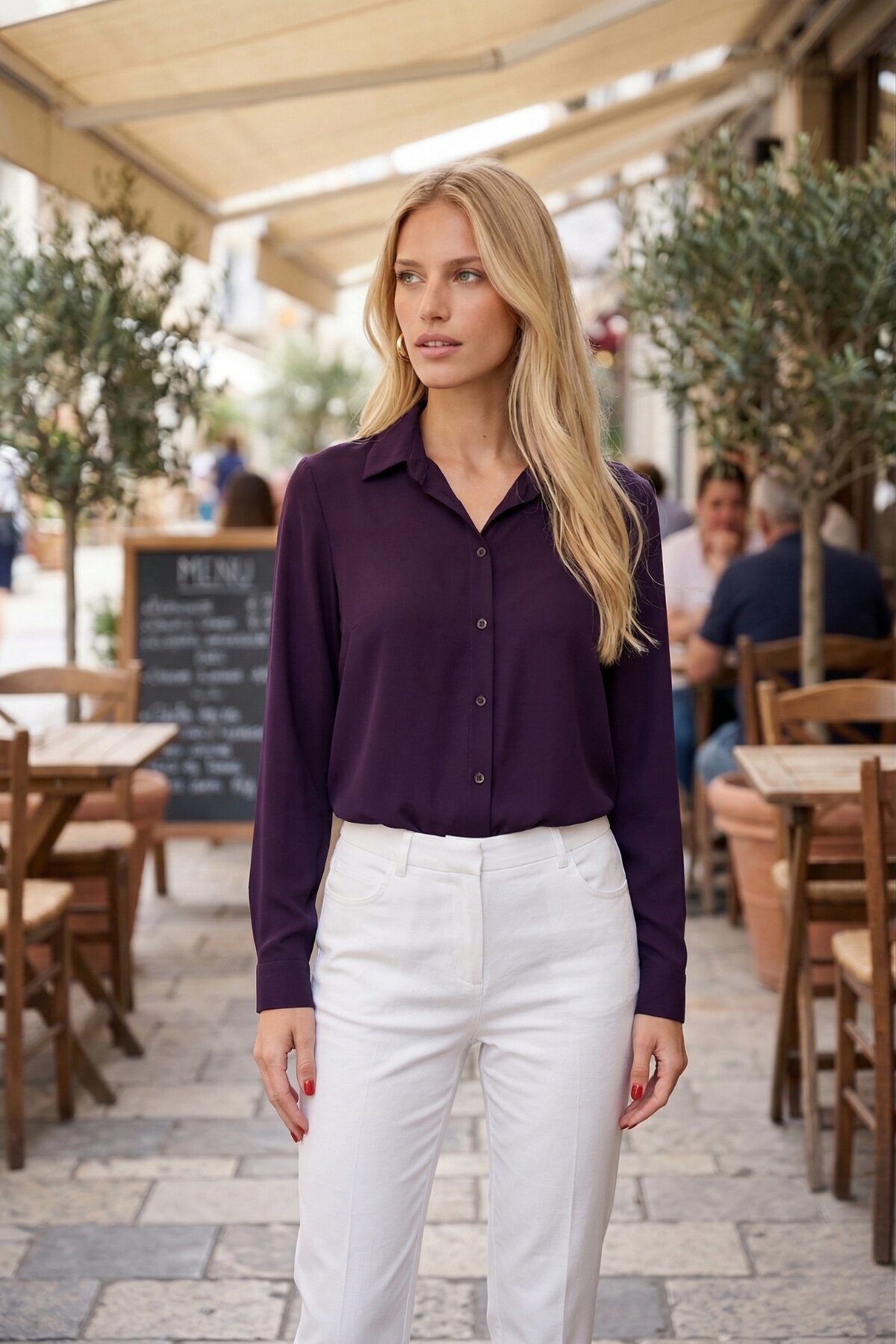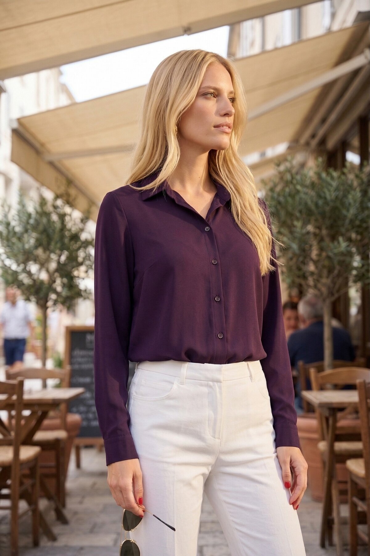 armonika Women's Dark Purple Long Sleeve Plain Shirt arm-18Y001176 | ByTR