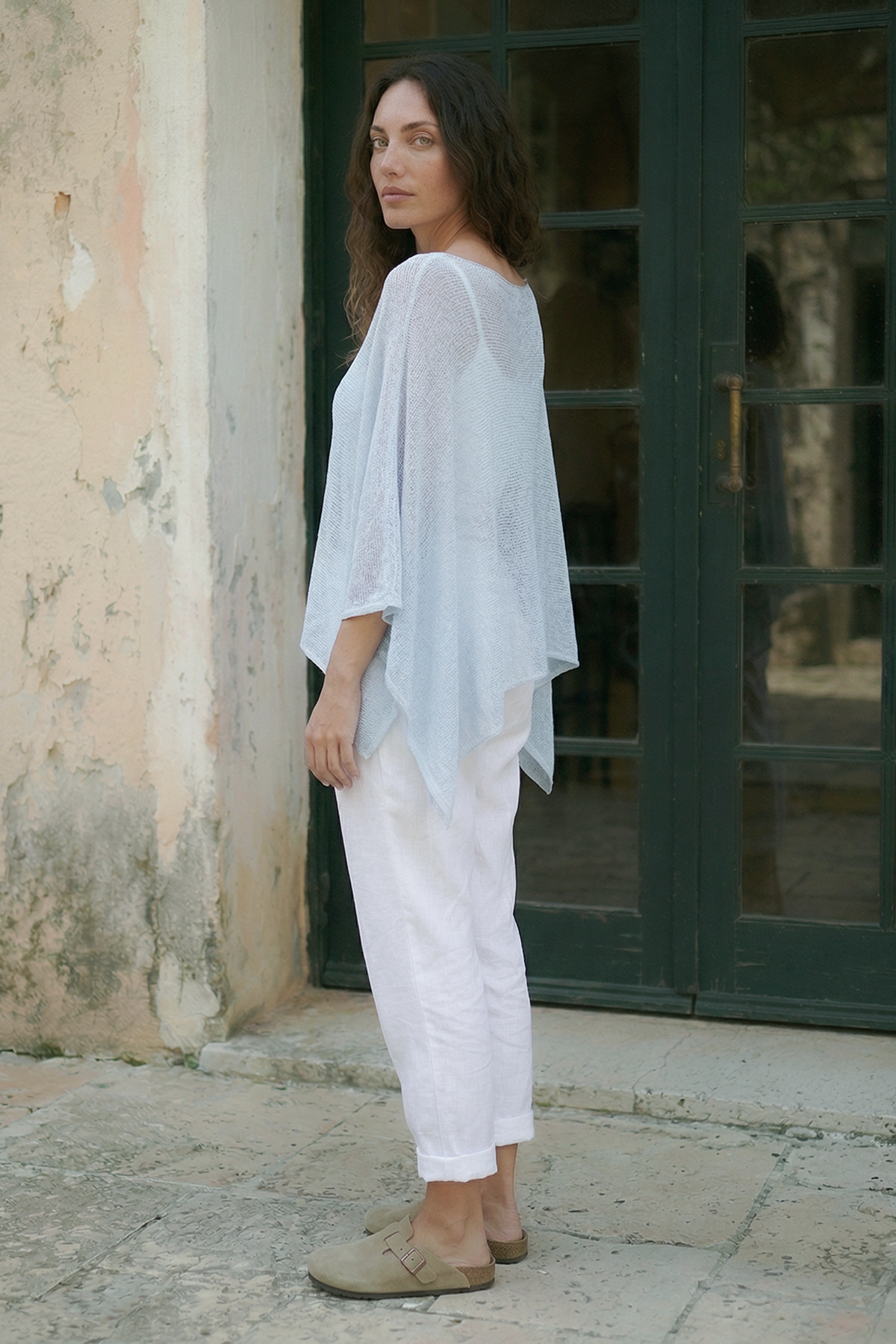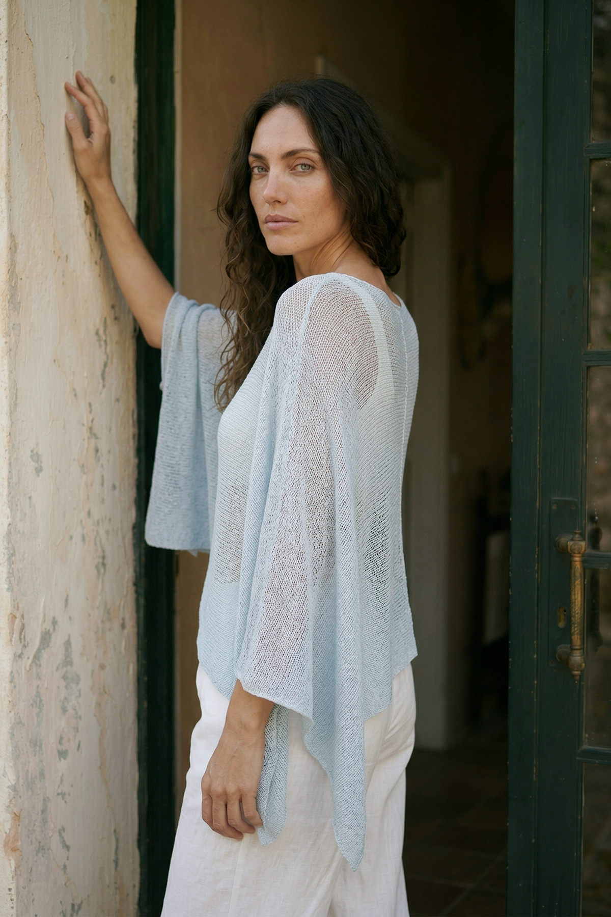 Asymmetrical cut, sleeveless, transparent, knitwear Chuba cape poncho.