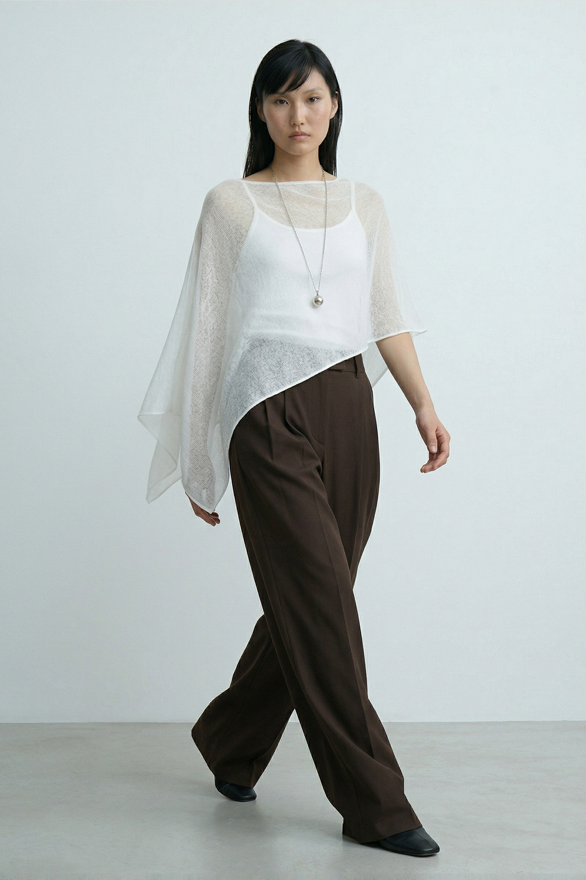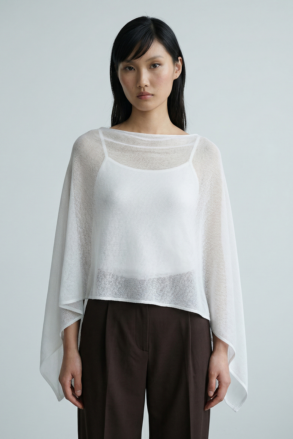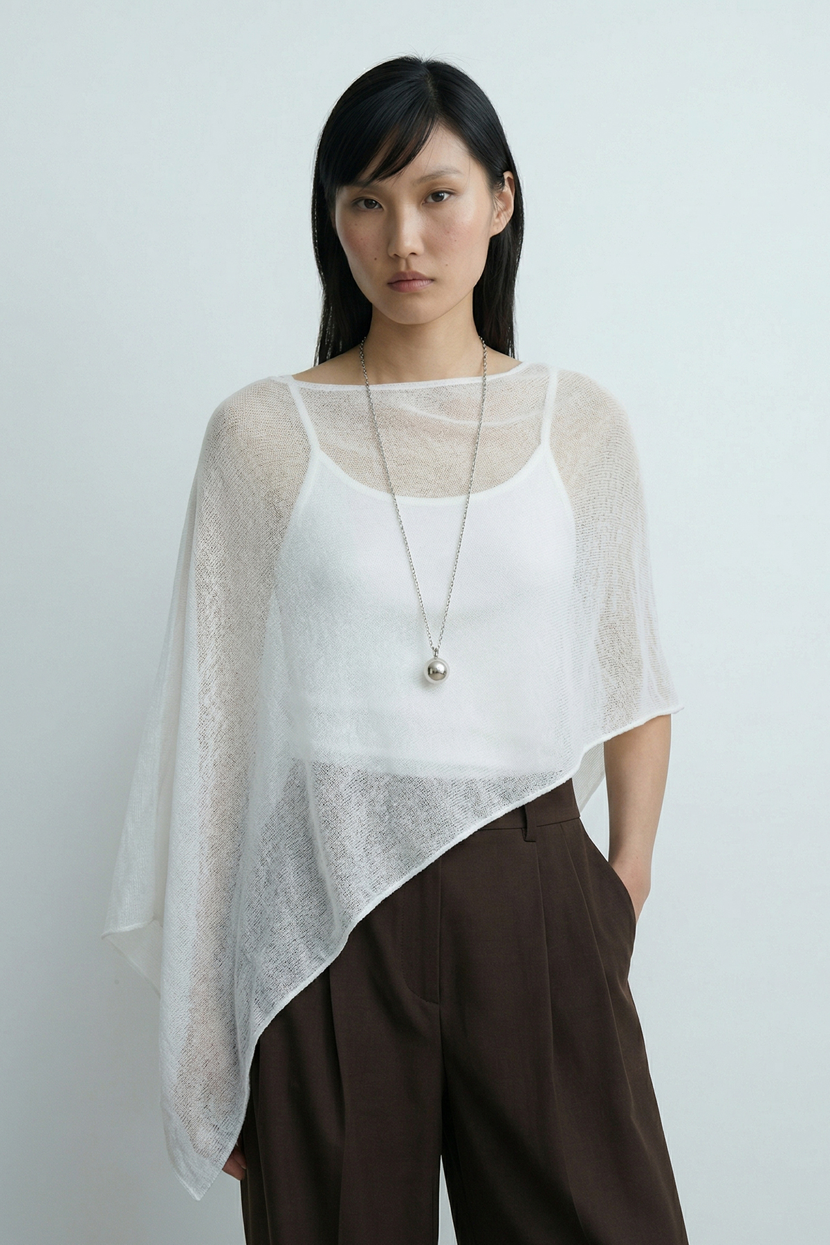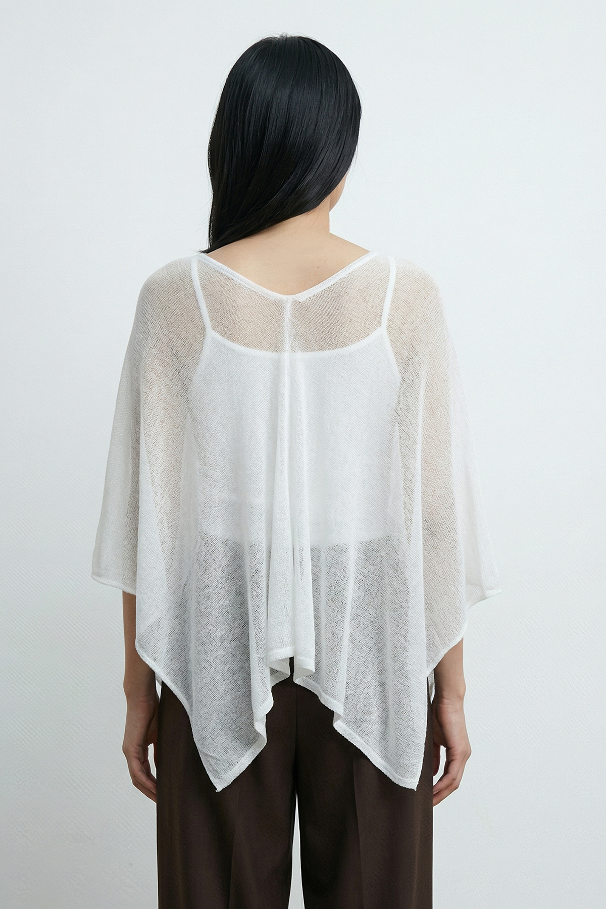 Asymmetrical cut, sleeveless, transparent, knitwear Chuba cape poncho.