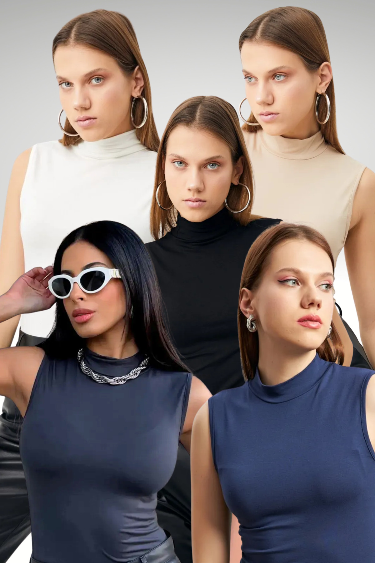 Offered in sets of 5, these sleeveless blouses form an indispensable base in your wardrobe.