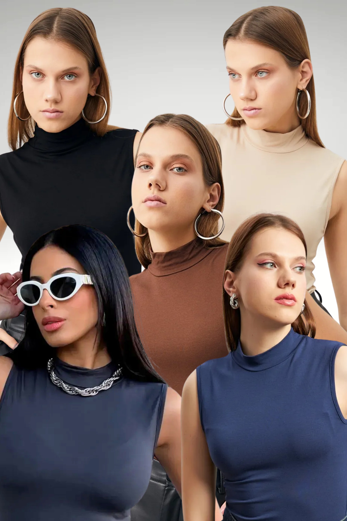 Offered in sets of 5, these sleeveless blouses form an indispensable base in your wardrobe.