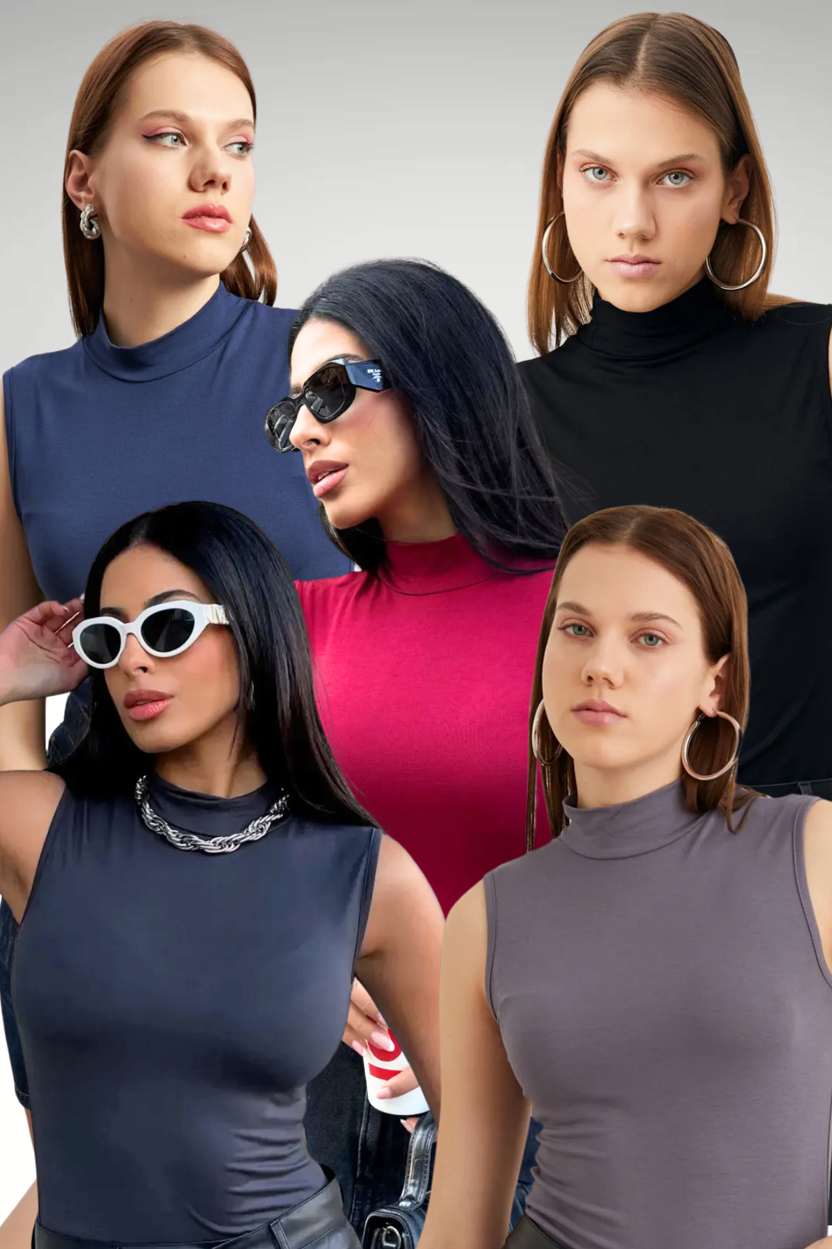 Offered in sets of 5, these sleeveless blouses will be indispensable for your wardrobe.