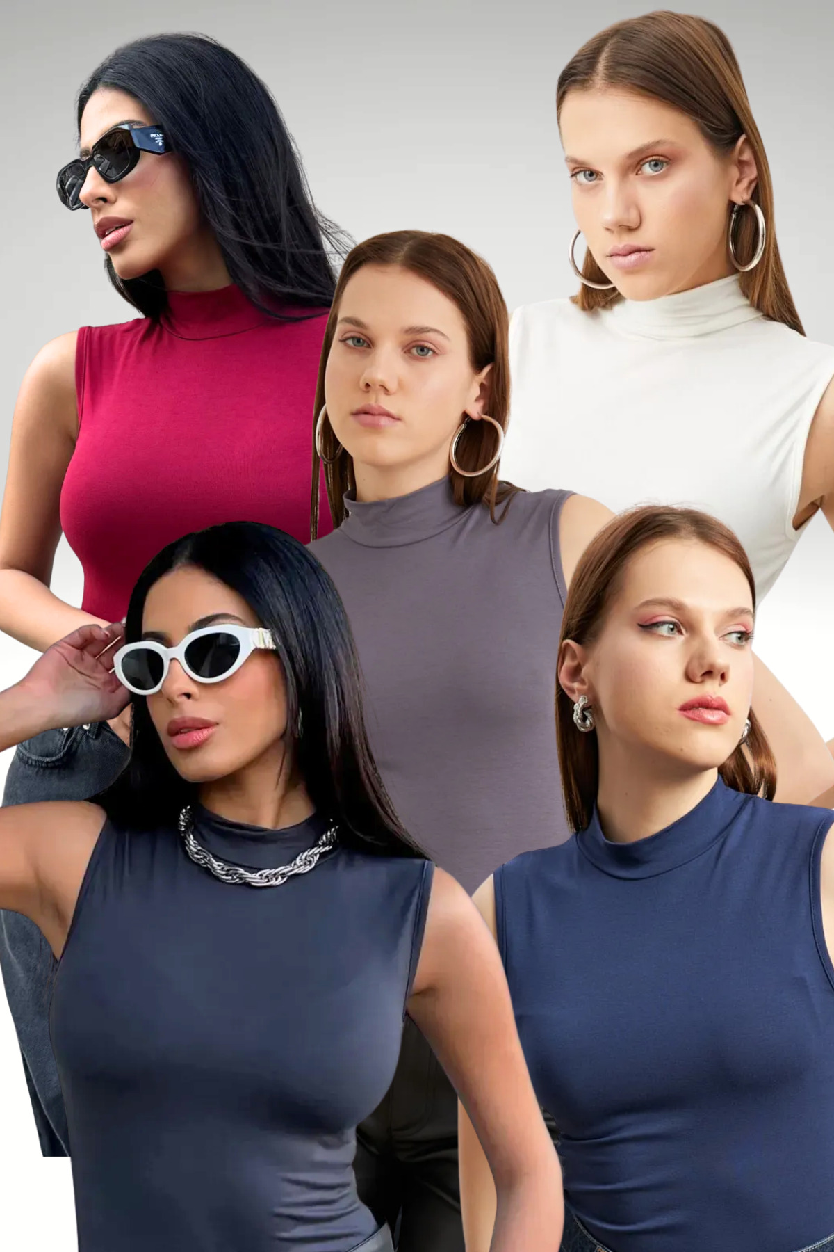 Bipantolon Women's 5-Pack Economic Sleeveless Blouse Set White Gray Anthracite Navy Blue Claret Red | ByTR