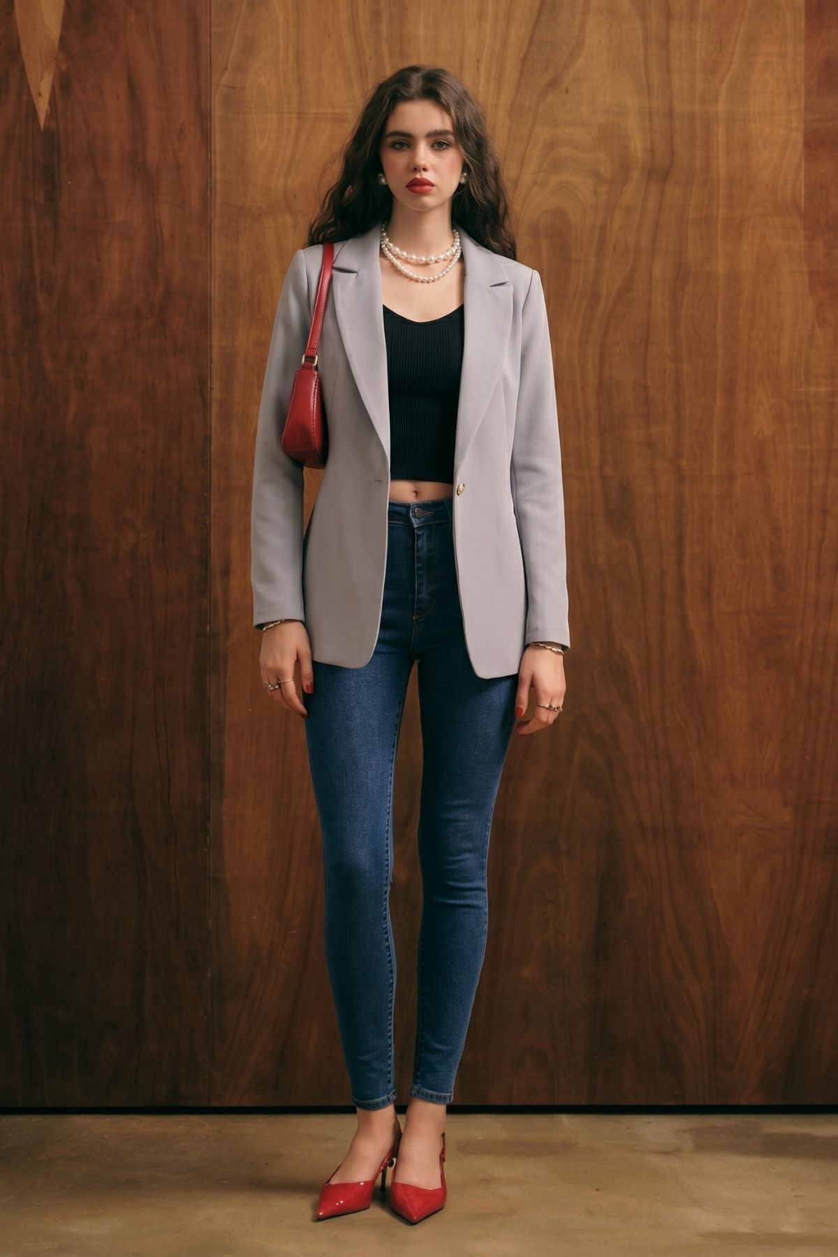 Women's Dark Gray One-Button Jacket ARM-20K001020
