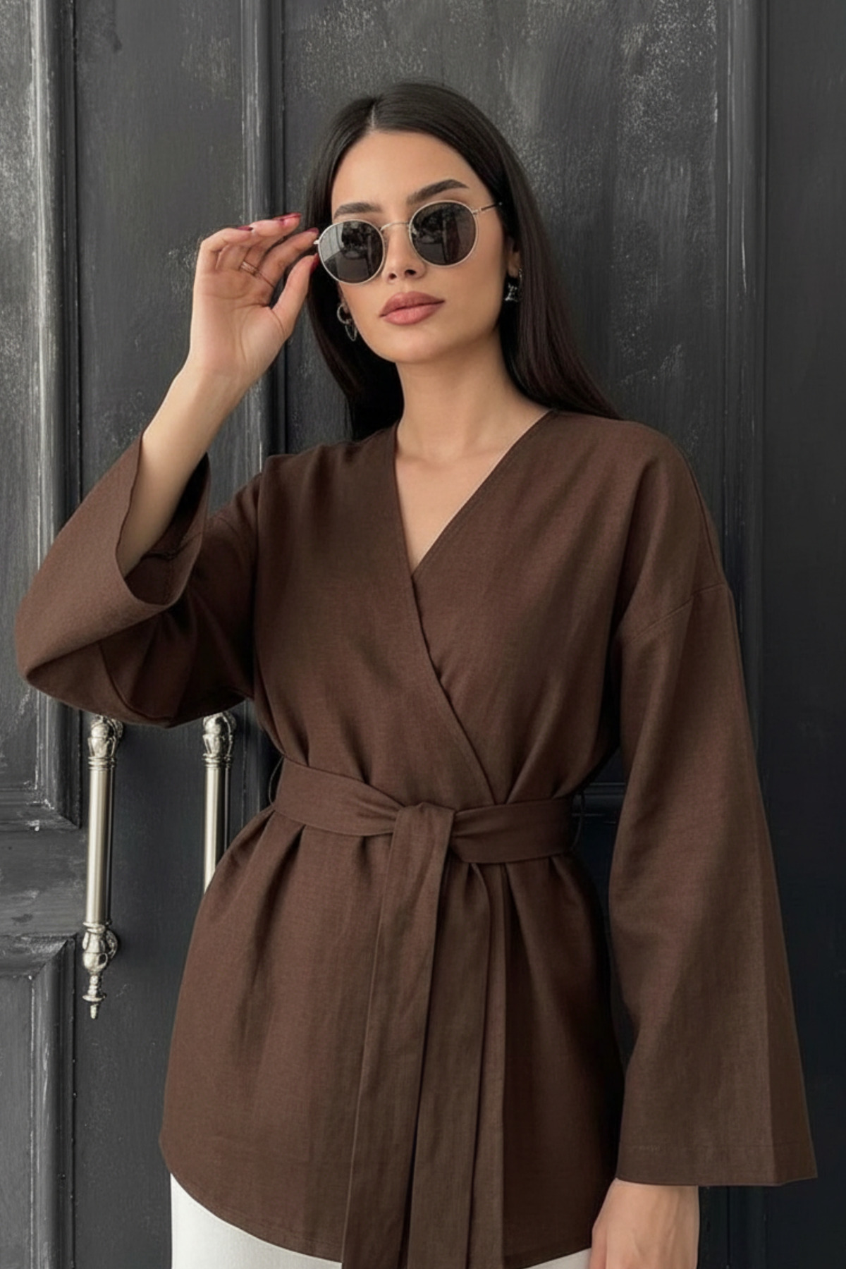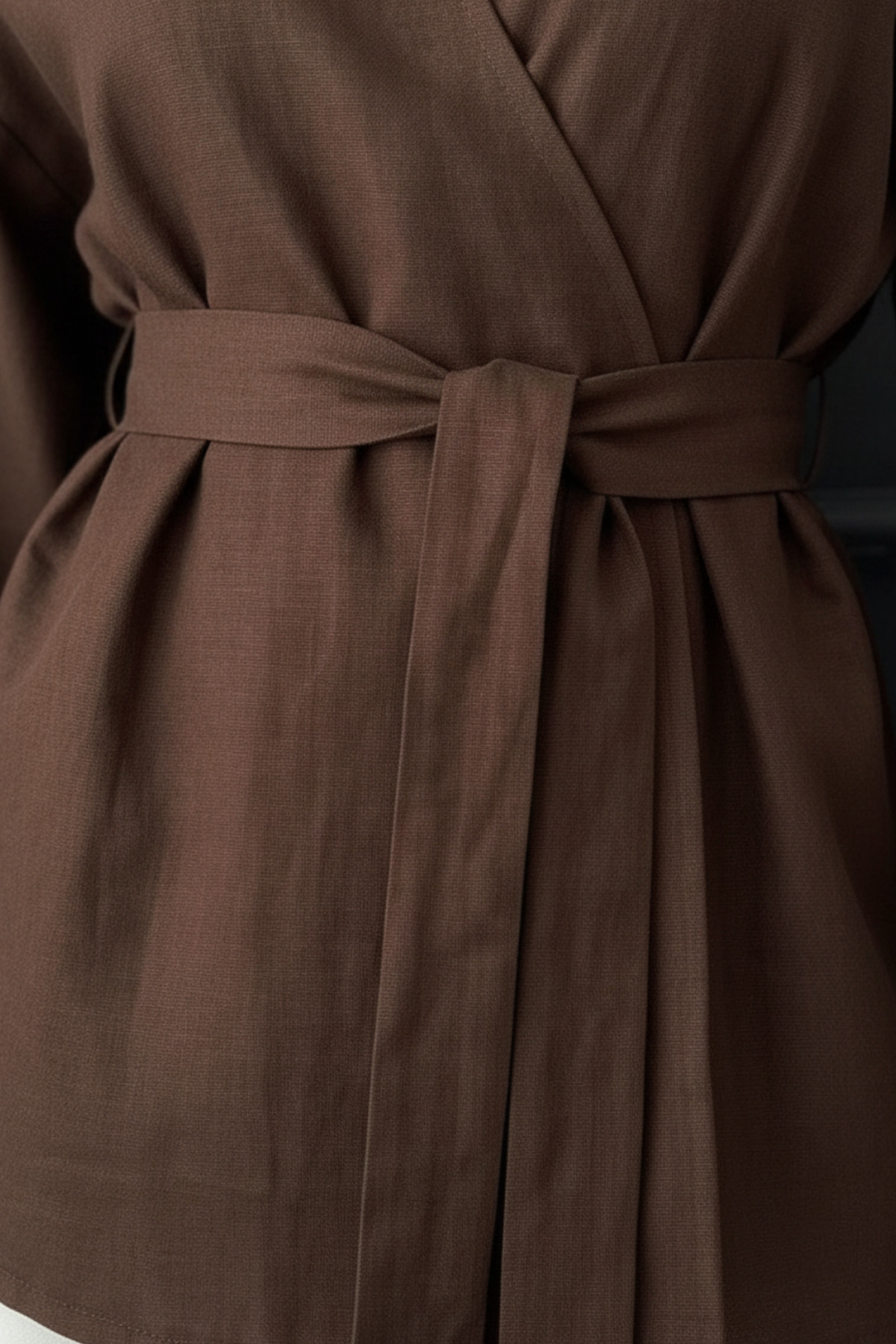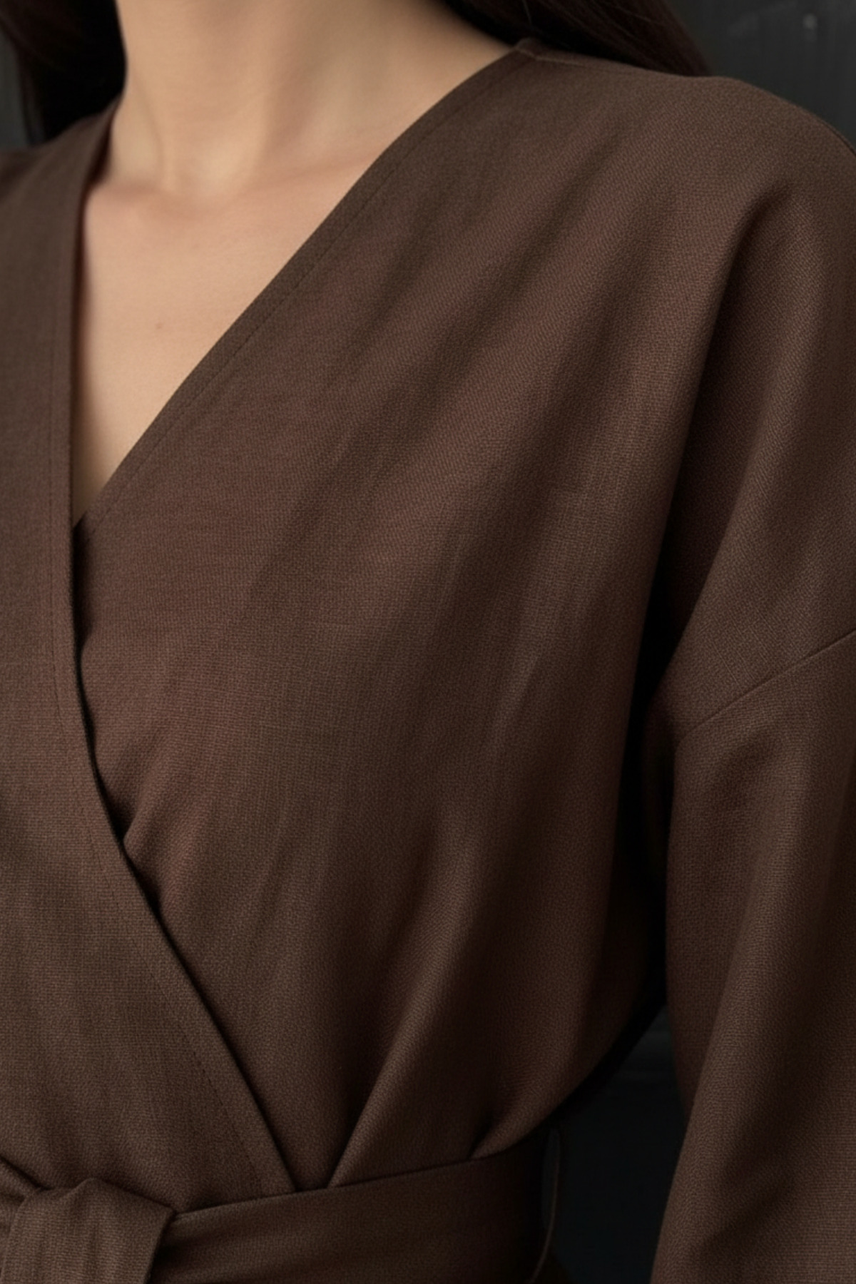 It creates a feminine silhouette by emphasizing your waist with its elegant belt detail.