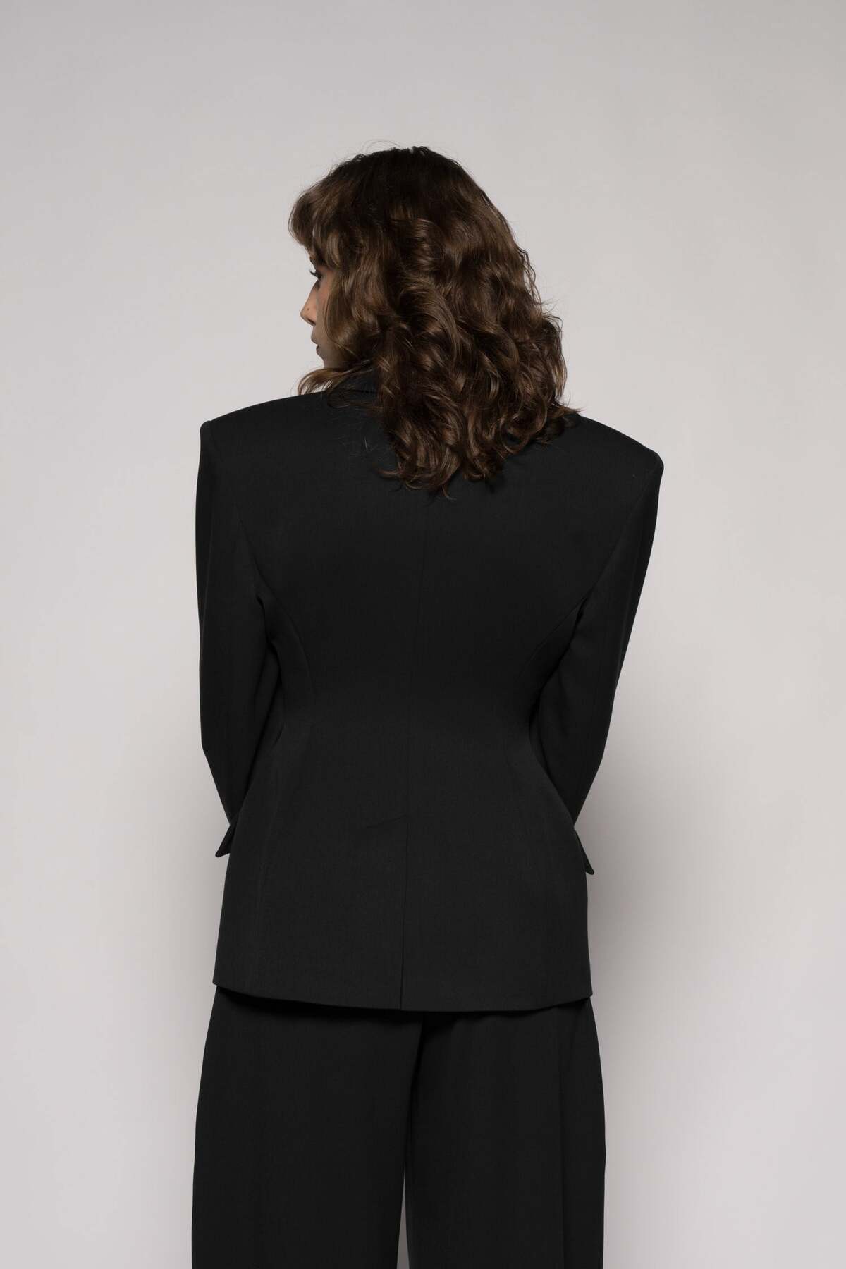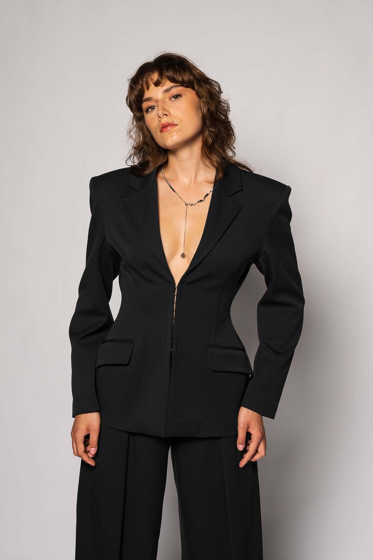Reinterpreted for modern women by Black Staple Waist Sitting Blazer Thalure, this model fits the body perfectly, offering a strong and feminine stance