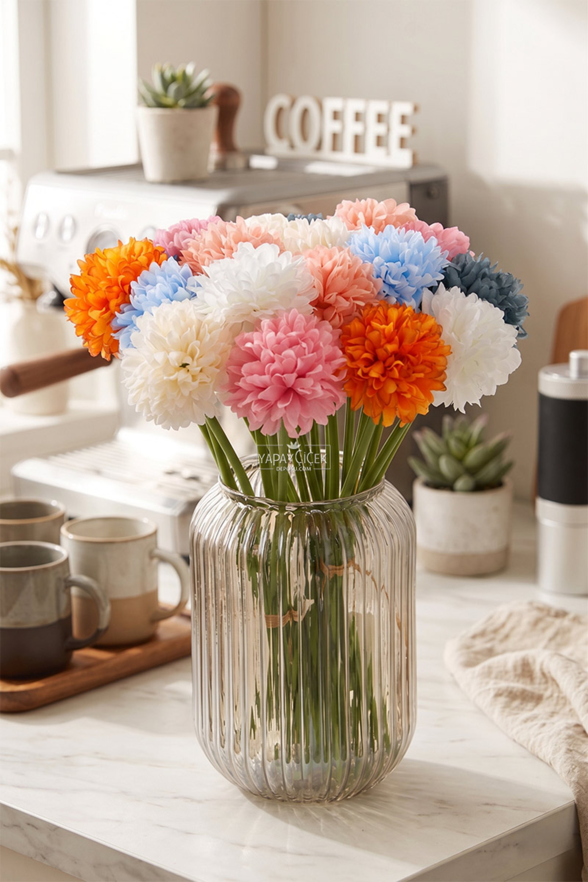 Artificial single branch Chrysanthemum, artificial long branch Chrysanthemum, artificial long Chrysanthemum, long vase Chrysanthemum, Wholesale single branch Chrysanthemum, Long vase flower Artificial Flower 7-Piece Ball Chrysanthemum Bundle 30 cm Features