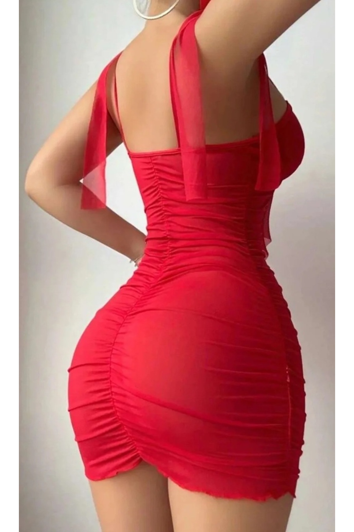 Women's Stylish Shirred Mini Dress Transparent Tulle Dowry Dress - Attracting attention with its stylish and elegant design, the shirred mini dress will dazzle at your special nights.
