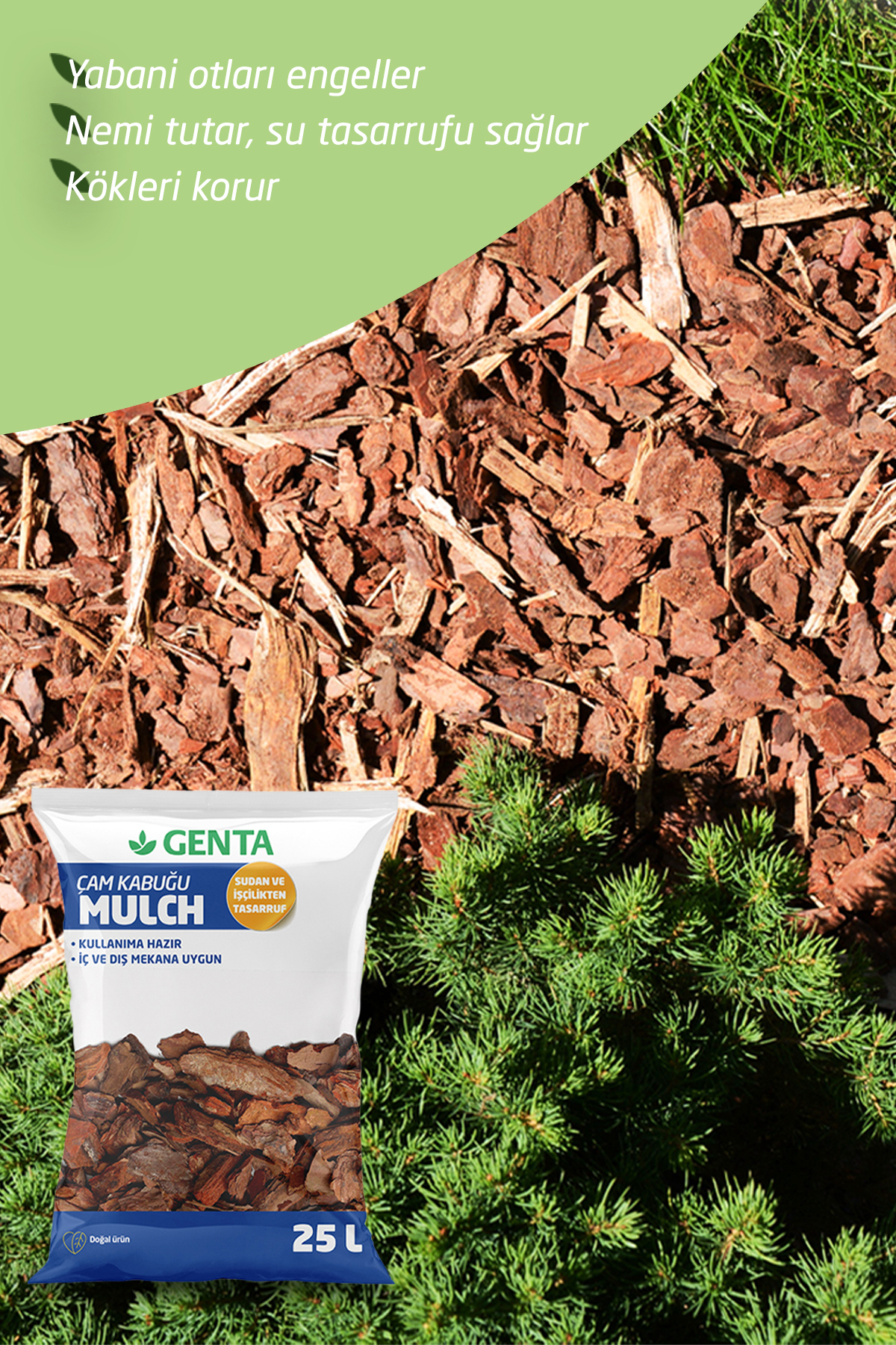 Genta’nın ufak taneli çam kabukları steril, katkısız ve işlem görmüştür.