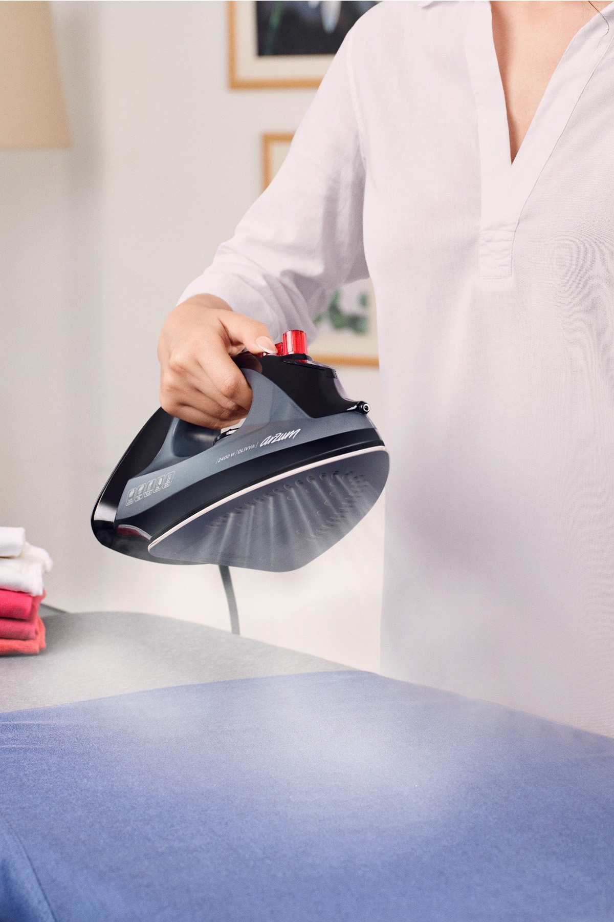 With its 100-200 gr shock steam feature, it effortlessly opens stubborn wrinkles and shortens your ironing time.