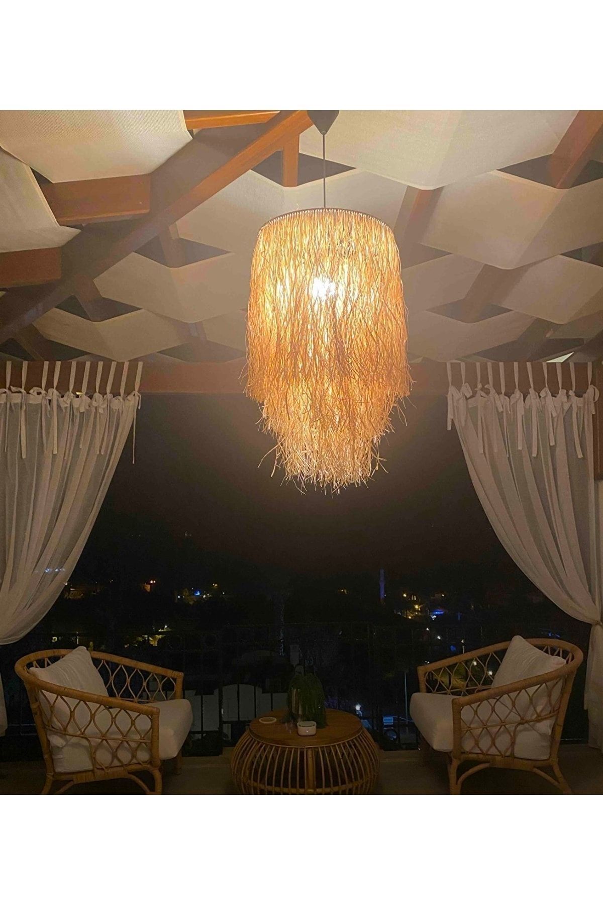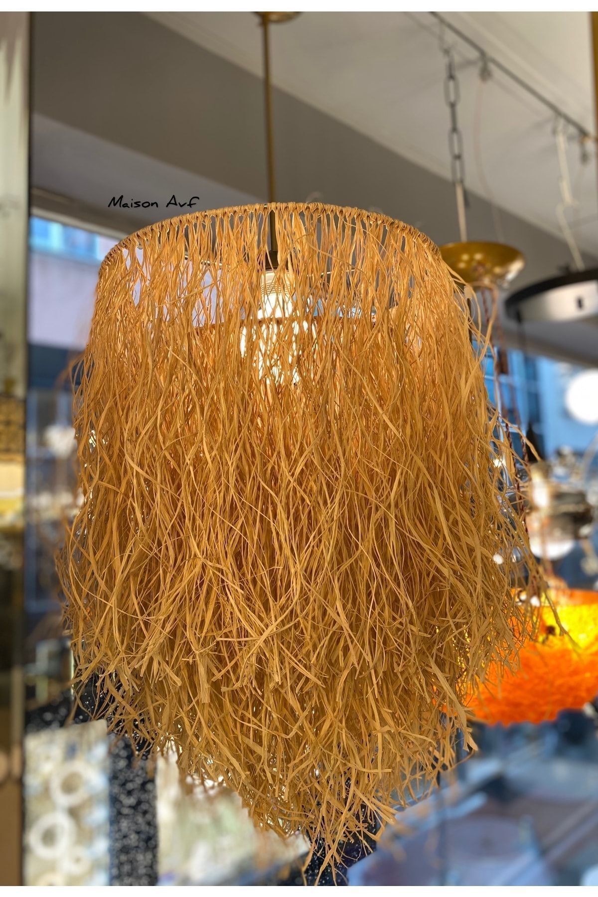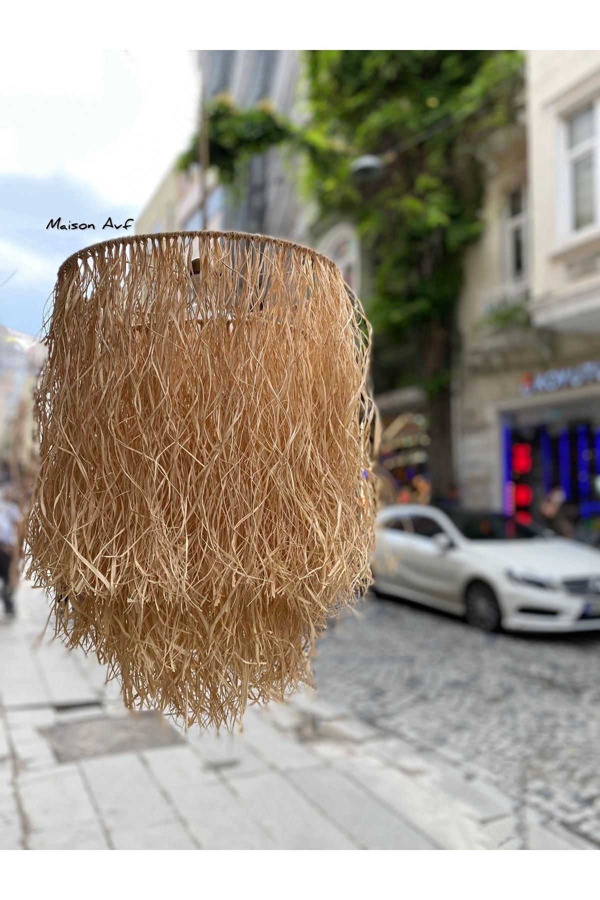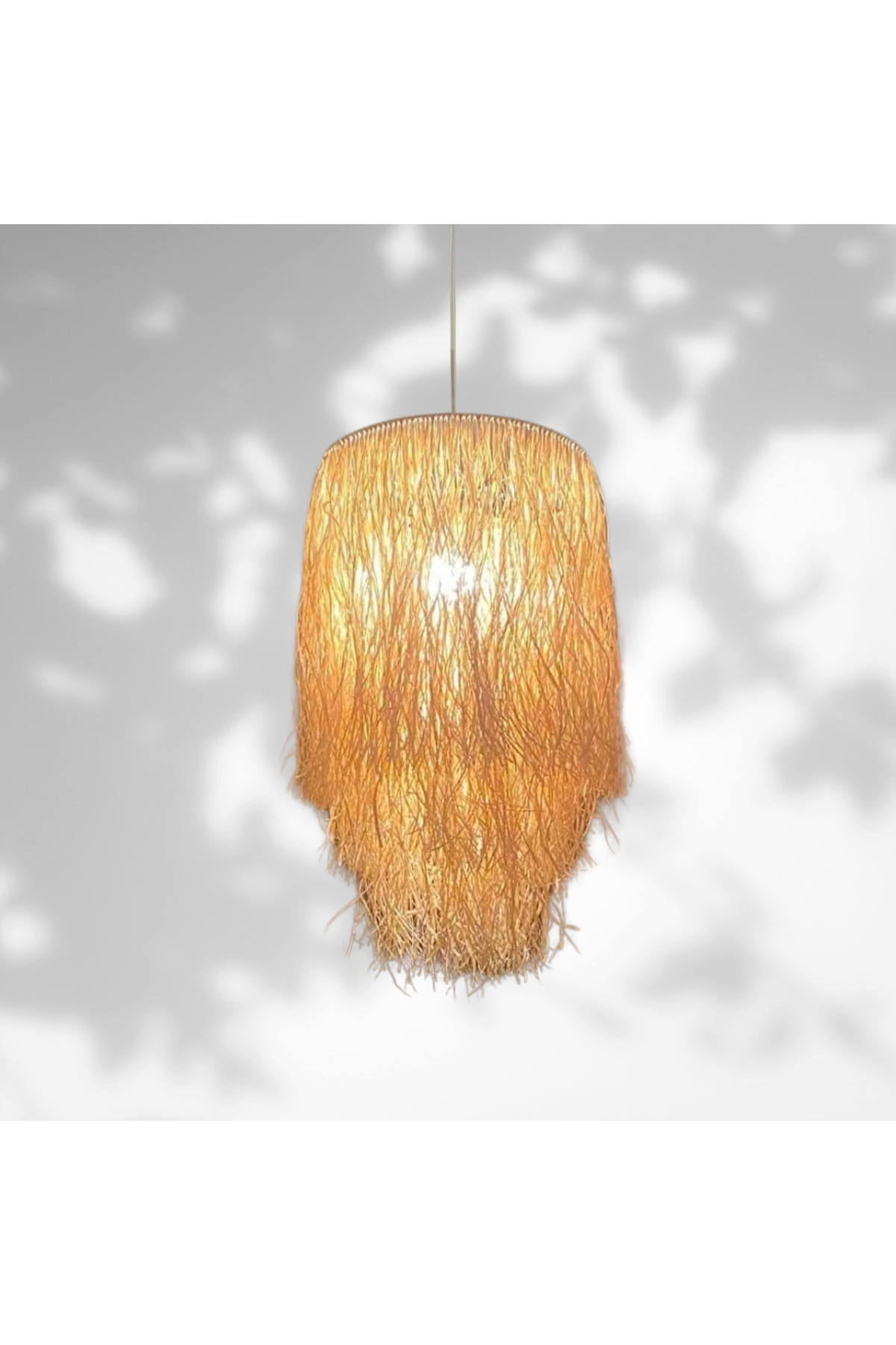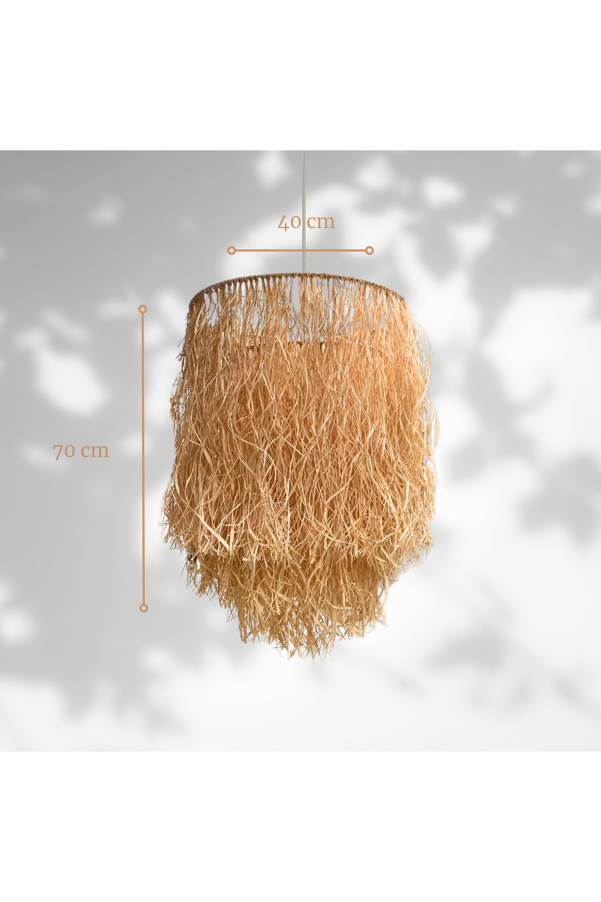 Production: Hand labor, Hand workmanship Material: 100% natural raffia is used. Size: Product top diameter: 40 cm , total height: 70 cm. Handling maintenance: It is a Water Resistant Product. Sensor Type 1*60 watt E27 (standard). No bulbs are shipped in it.