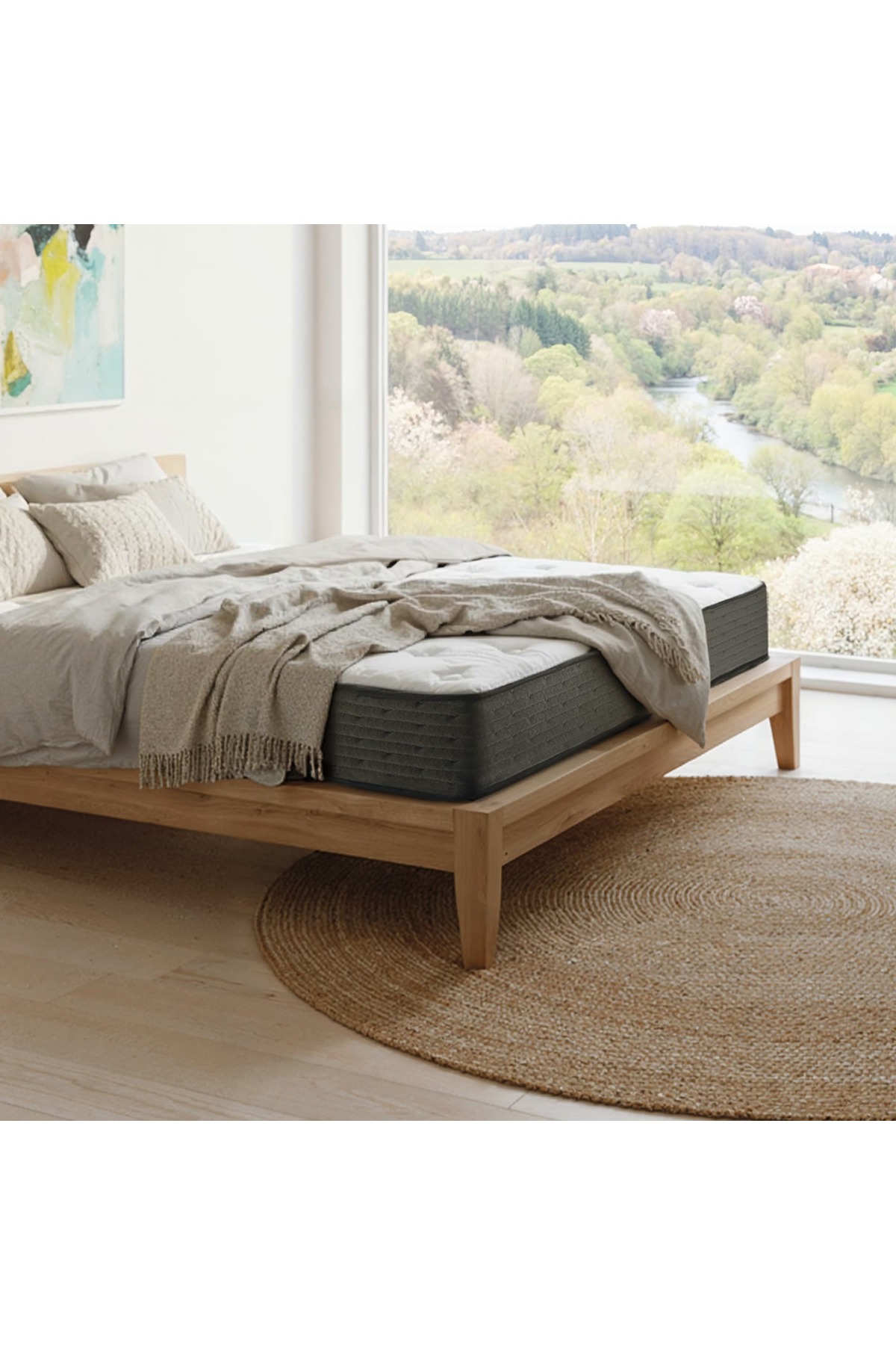 Product Features • Visco comfort layer • Pocket spring support system • Structure that balances pressure points • Cotton layer on top surface • Wool layer on the bottom surface • Double-sided use • Bed type: Visco supported package spring mattress • Hardness degree: Medium Hard • Bed height: 28 cm (±2 cm) • Roll pack packaging