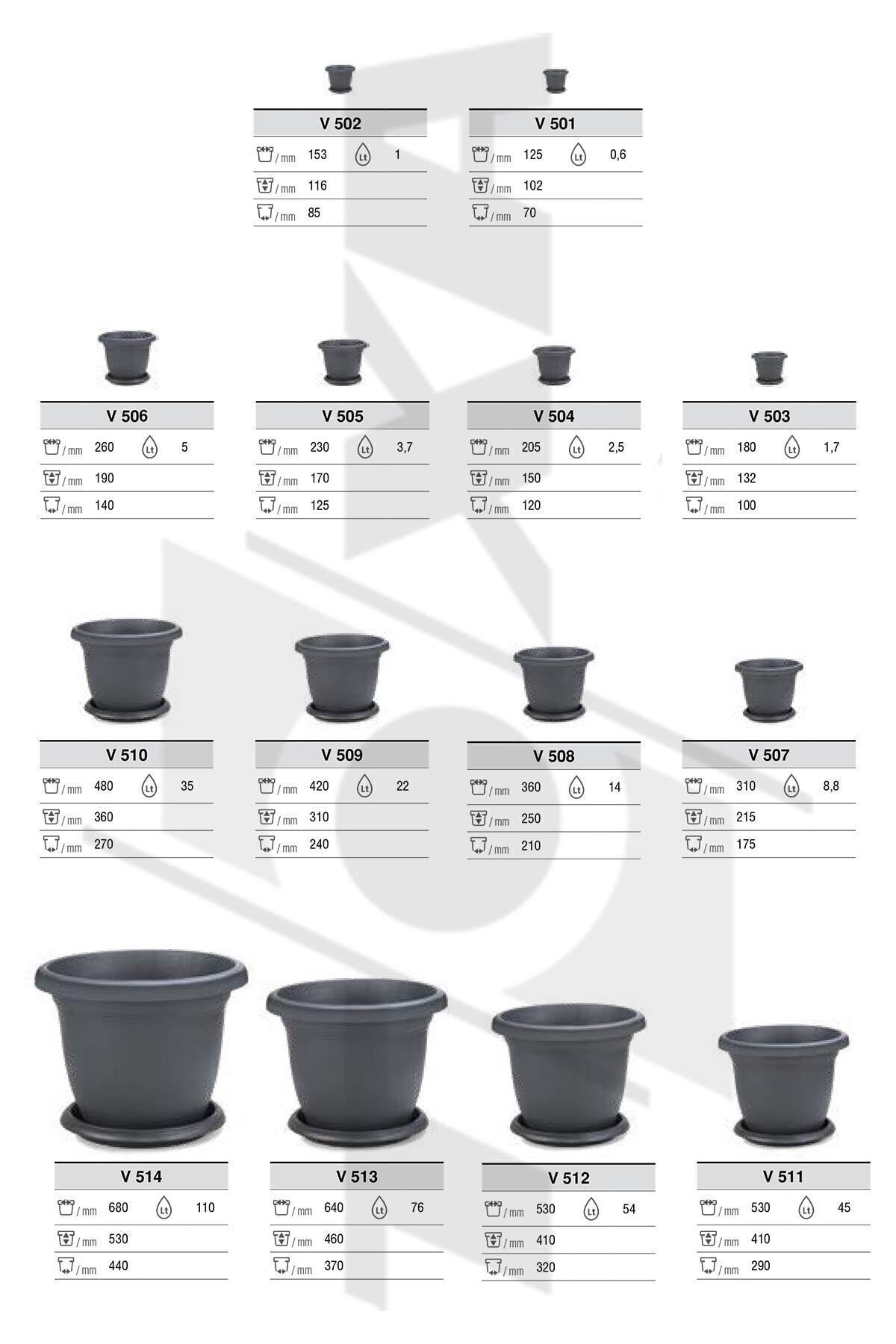 2.5 Liter Ø20.5x15cm Plate Matte Plastic Small Round Flower Pot Villa No4 ANTHRACITE GRAY