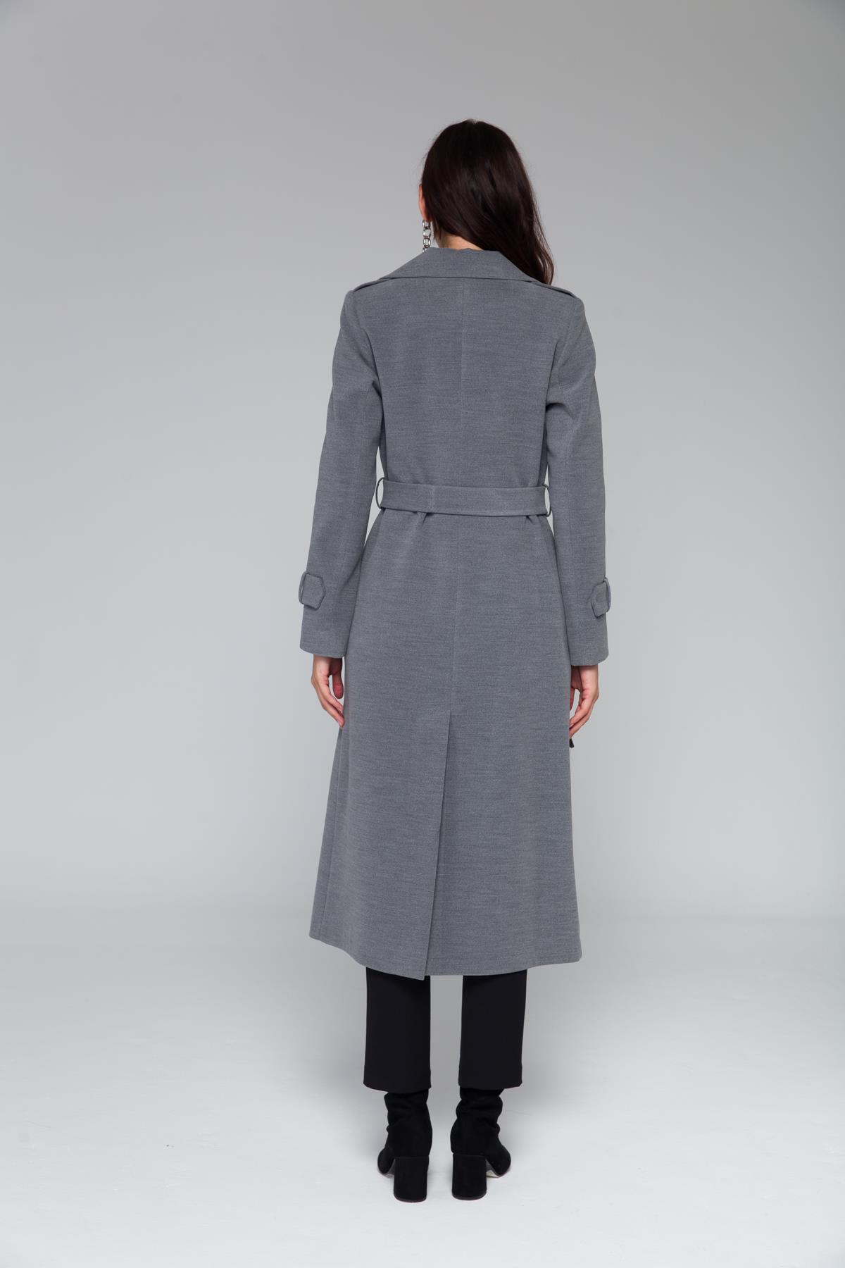brings a modern interpretation to classic lines with long sleeves and jacket collar