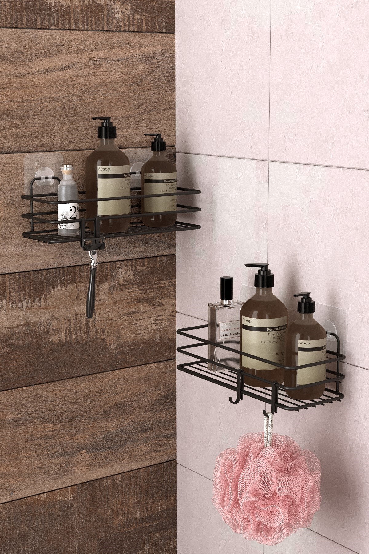 2 BATHROOM SHELVES with TEKNOTEL ADHESIVE HOOKS ST217H DRILL SCREW DRILL NO NEED! Strong adhesives have a load-bearing capacity of 10 kg.
