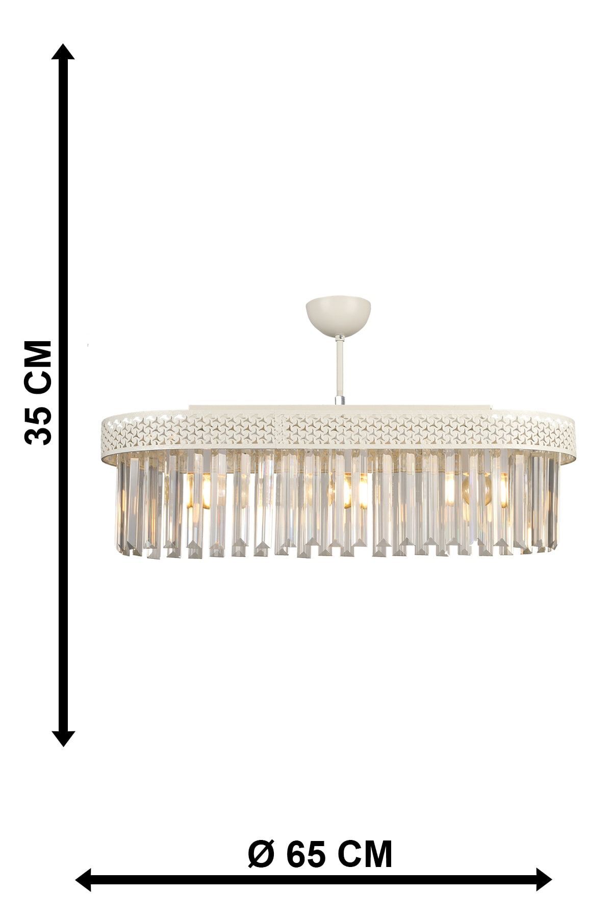 Product Features Product diameter : 65 cm Product length : 35 cm Bulb use and socket definition : E-27 max 60 watts.
