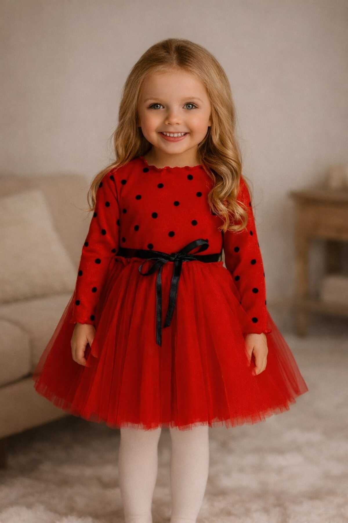Girl princess fluffy tutu dress with polka dot patterns, ideal for stylish and night environments