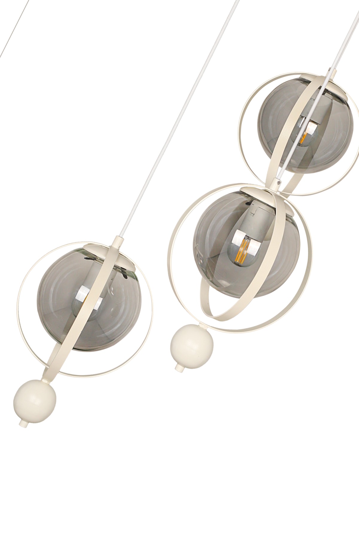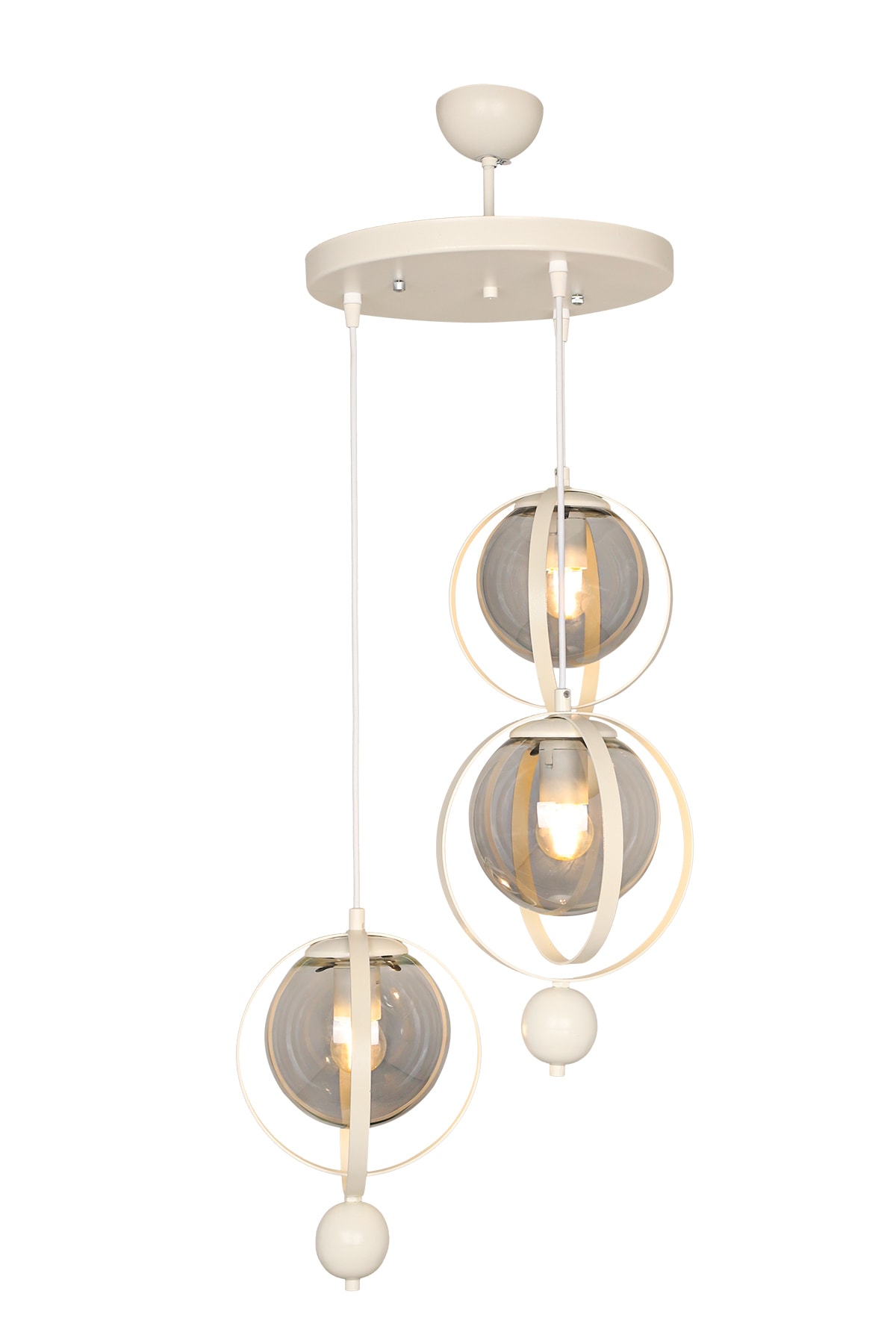 The elegant Jupiter chandelier with its white smoked glass finish adds a touch of sophistication to your space