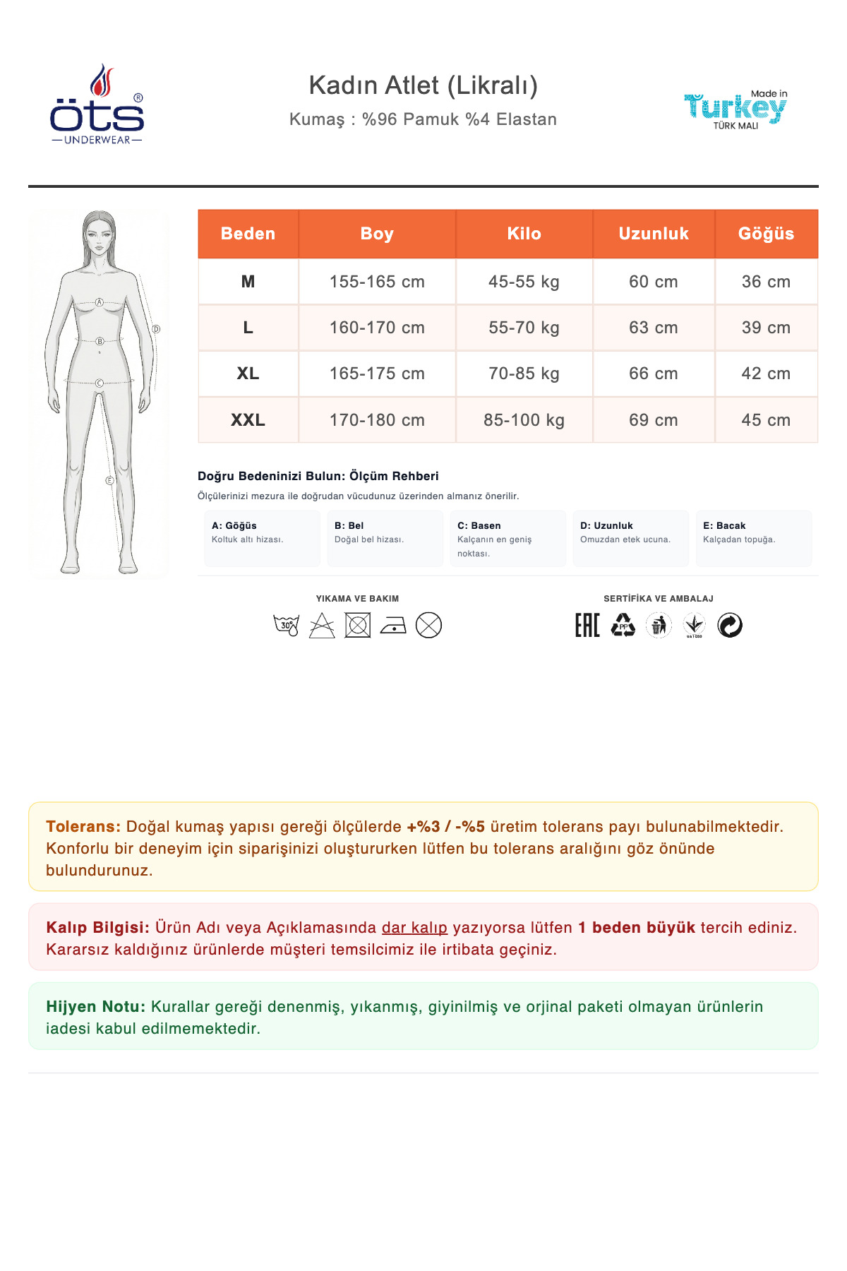 Information on Fabric 96% Cotton Combed Cotton 4% Elastane Lycra It provides ease of movement with its structure surrounding the body.