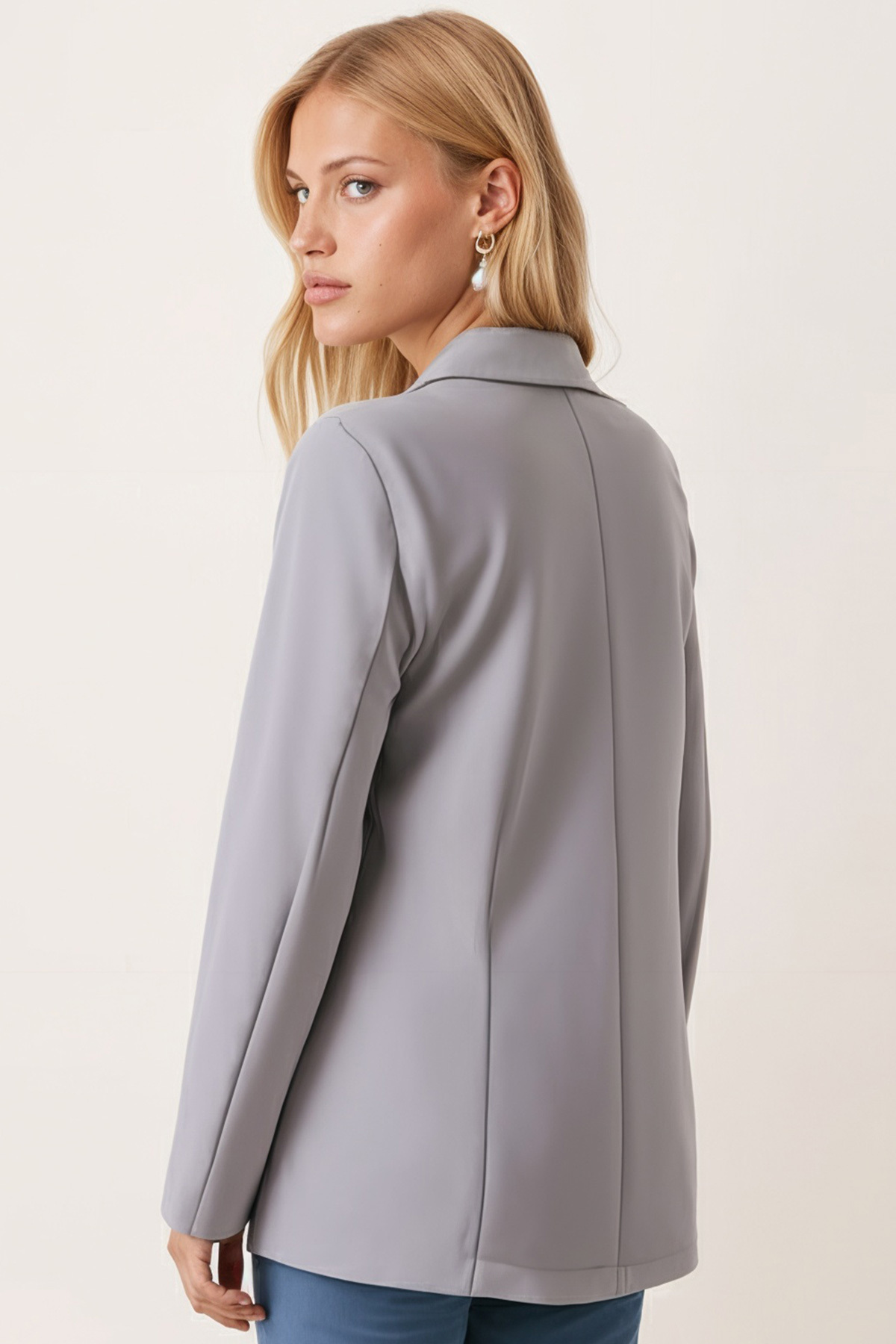 The plain gray blazer jacket, which adapts to any environment with its classic and timeless design, completes your elegance