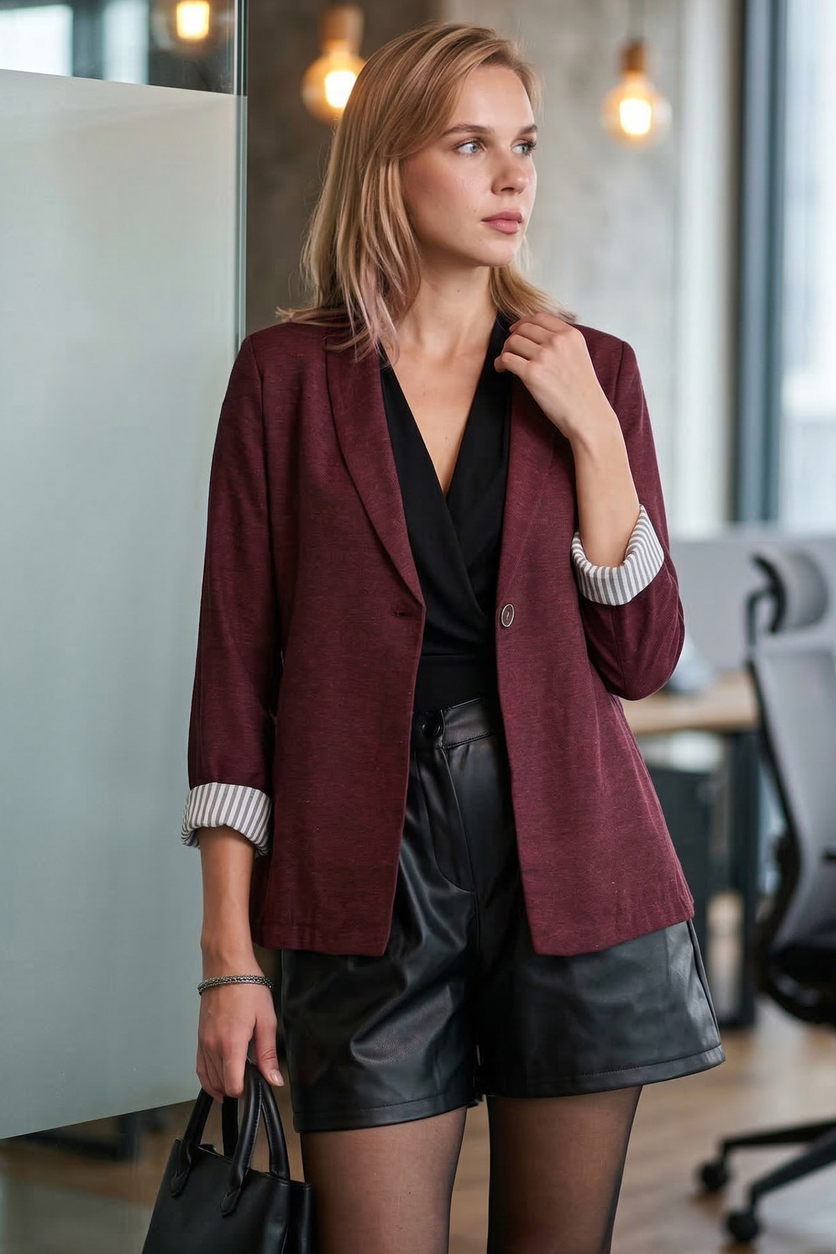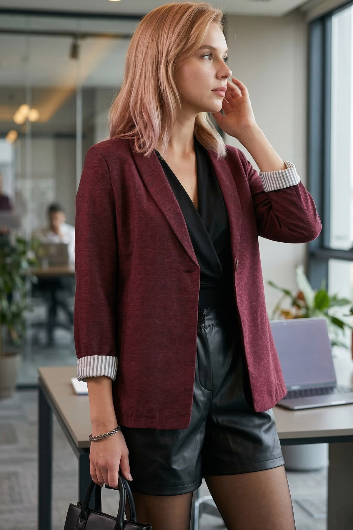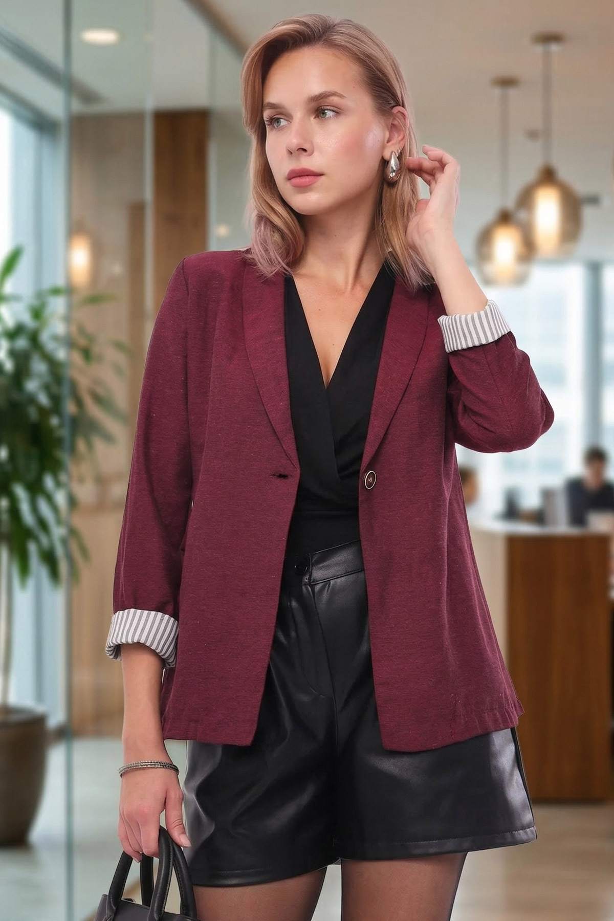 This blazer jacket in burgundy color, suitable for daily use, adds an elegant touch to your casual elegance.